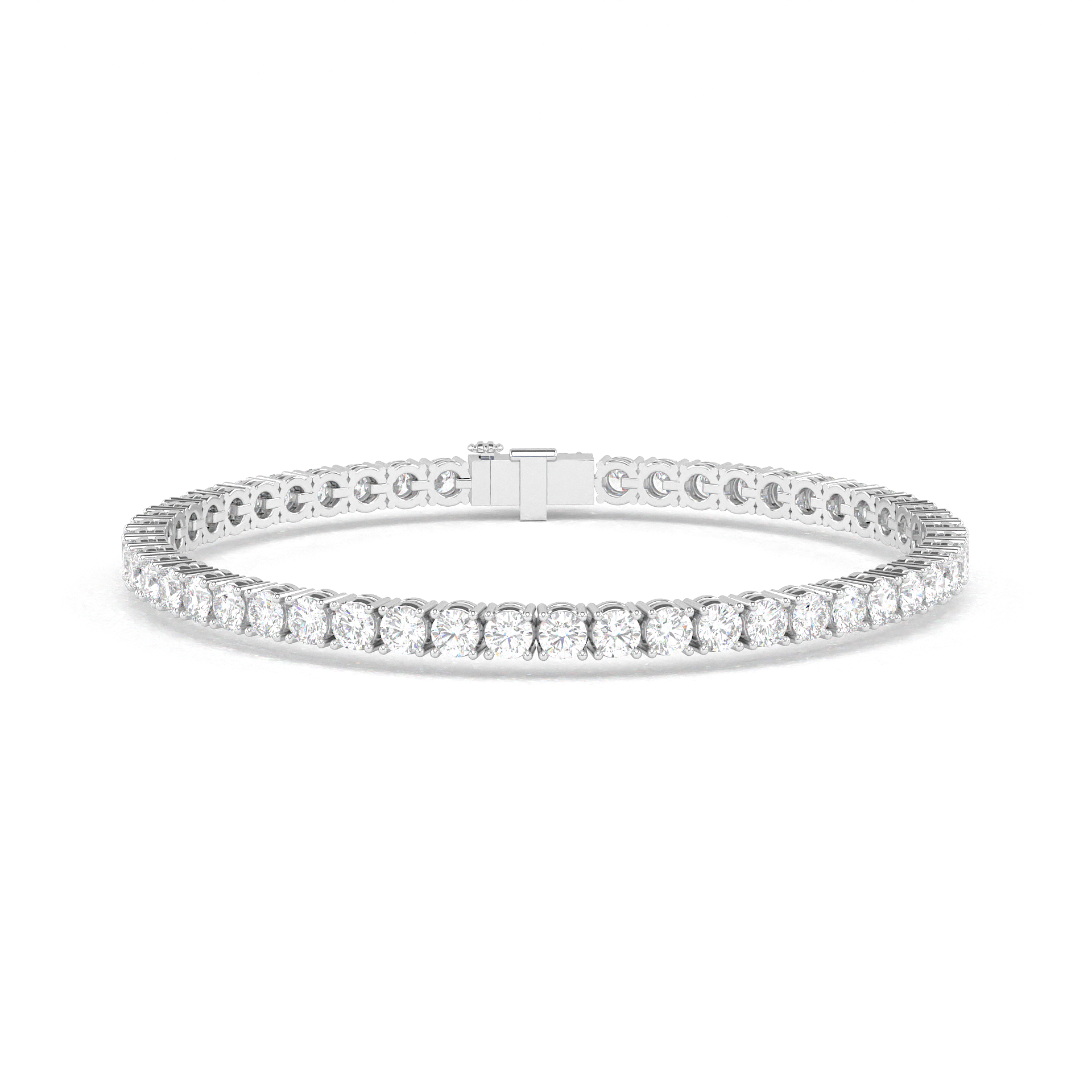 Add instant glamour with this stunning 5 CT tennis bracelet! Featuring lab-grown diamonds set in a classic line design, it delivers the perfect blend of sparkle and sustainability. The secure clasp ensures this elegant piece stays put while you shine. Perfect for special occasions or adding everyday luxury to your look.