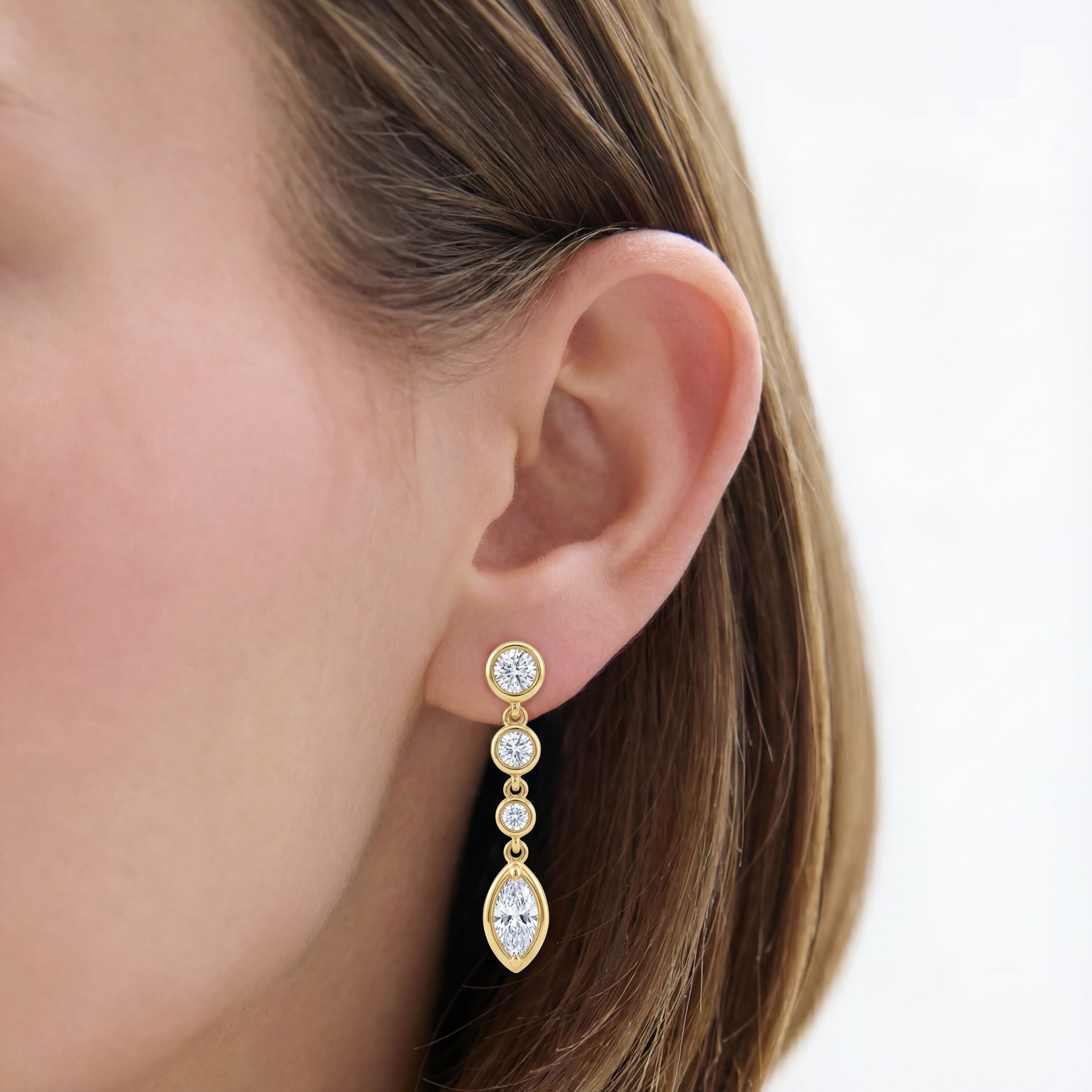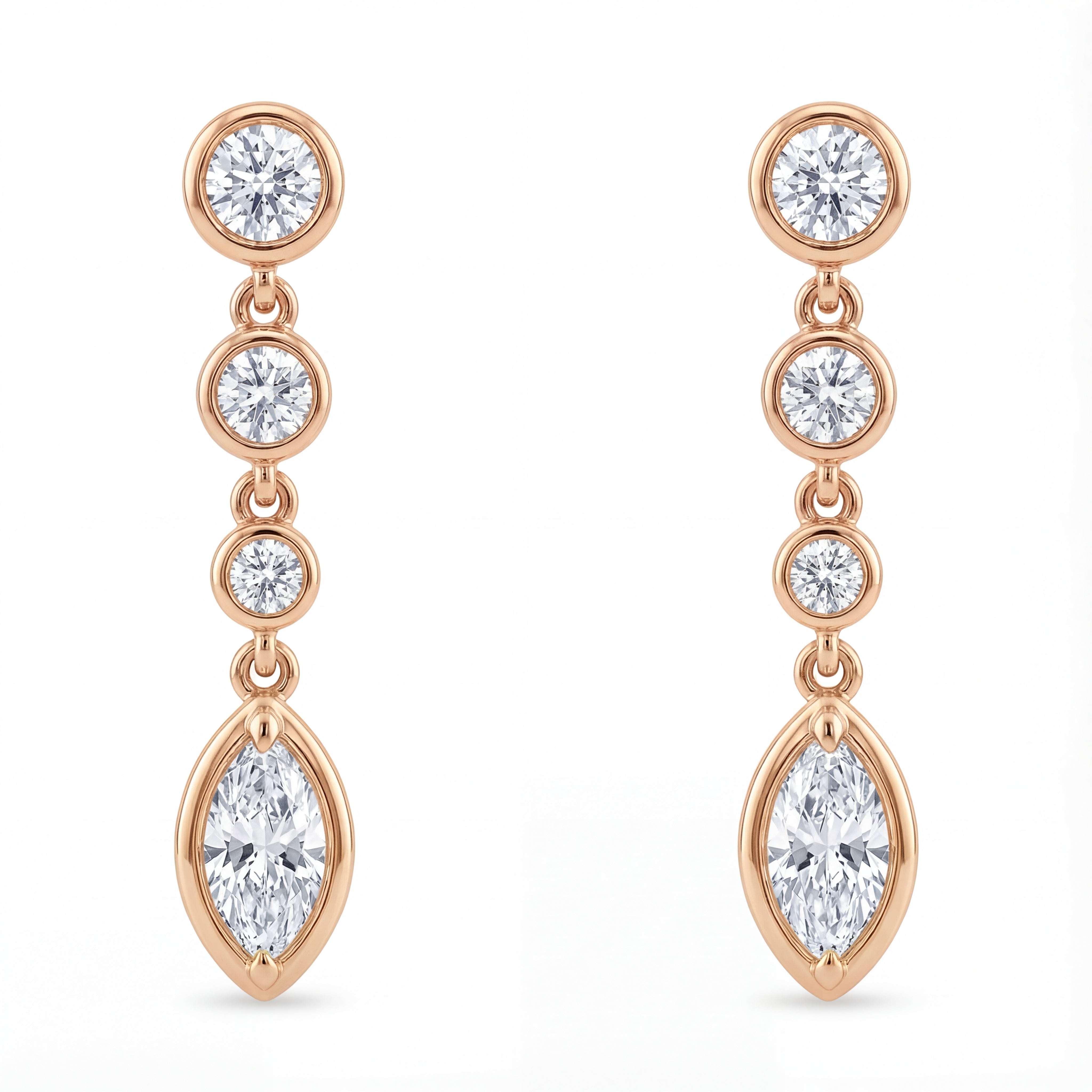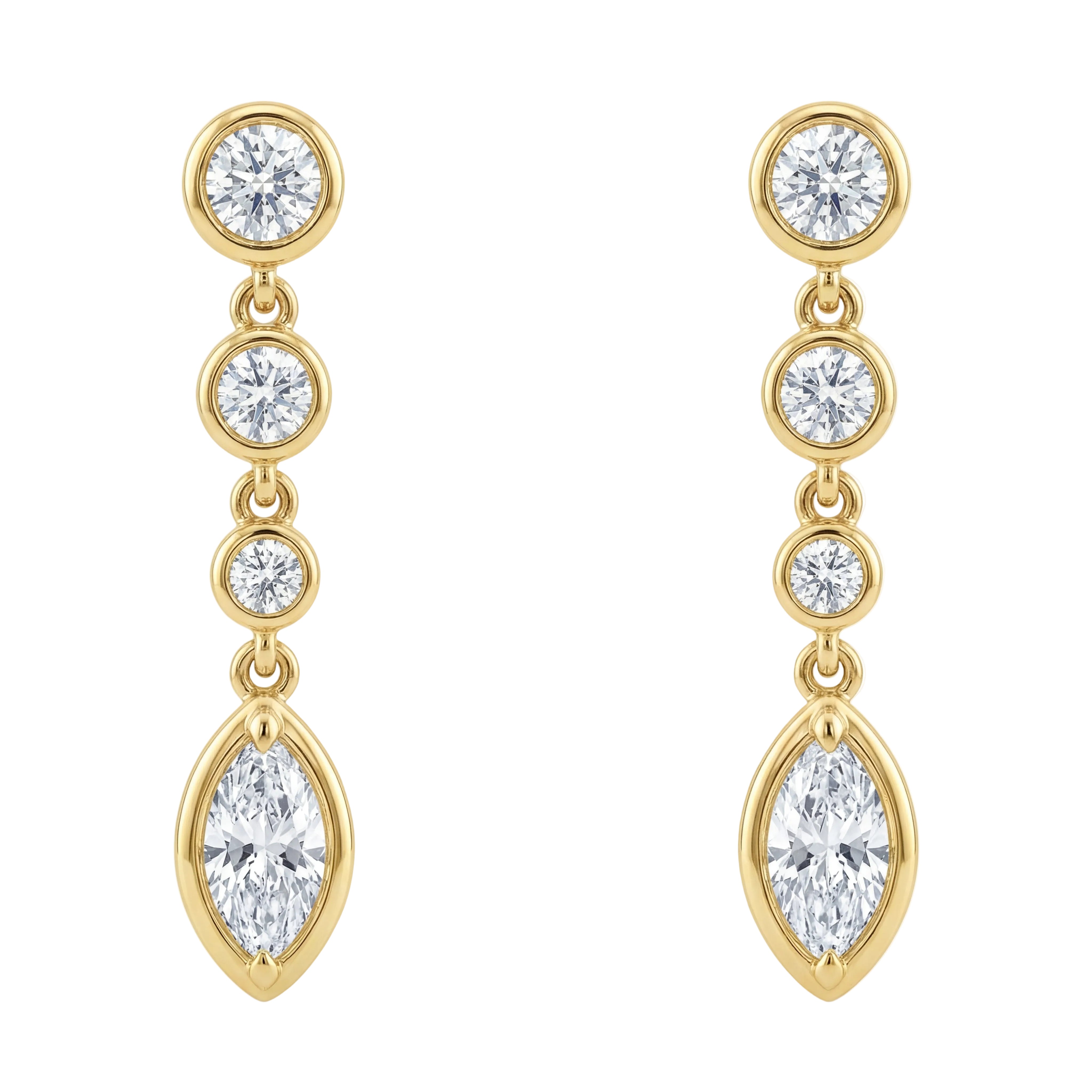 0.5 CTW Round And Marquise Diamond Drop Earrings
