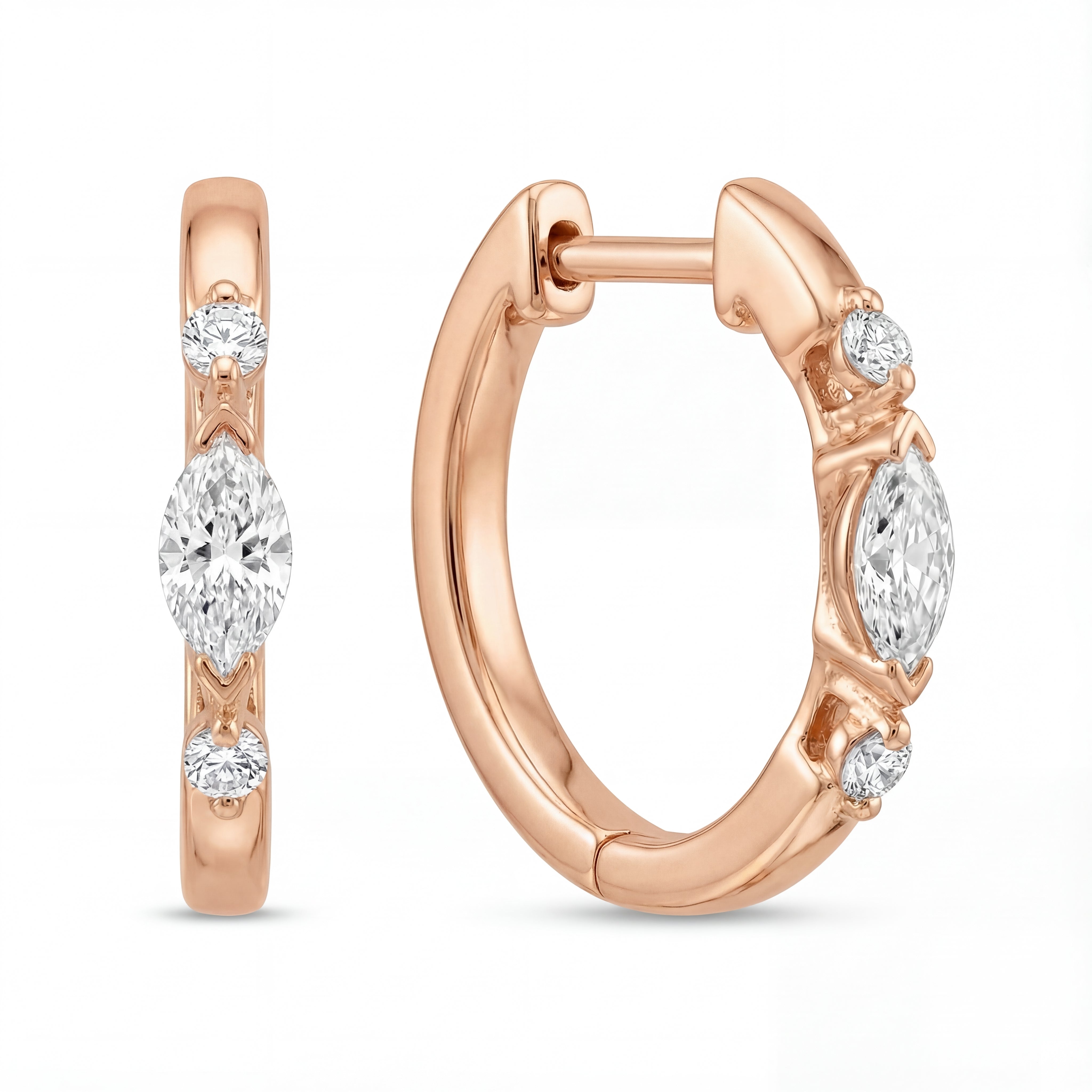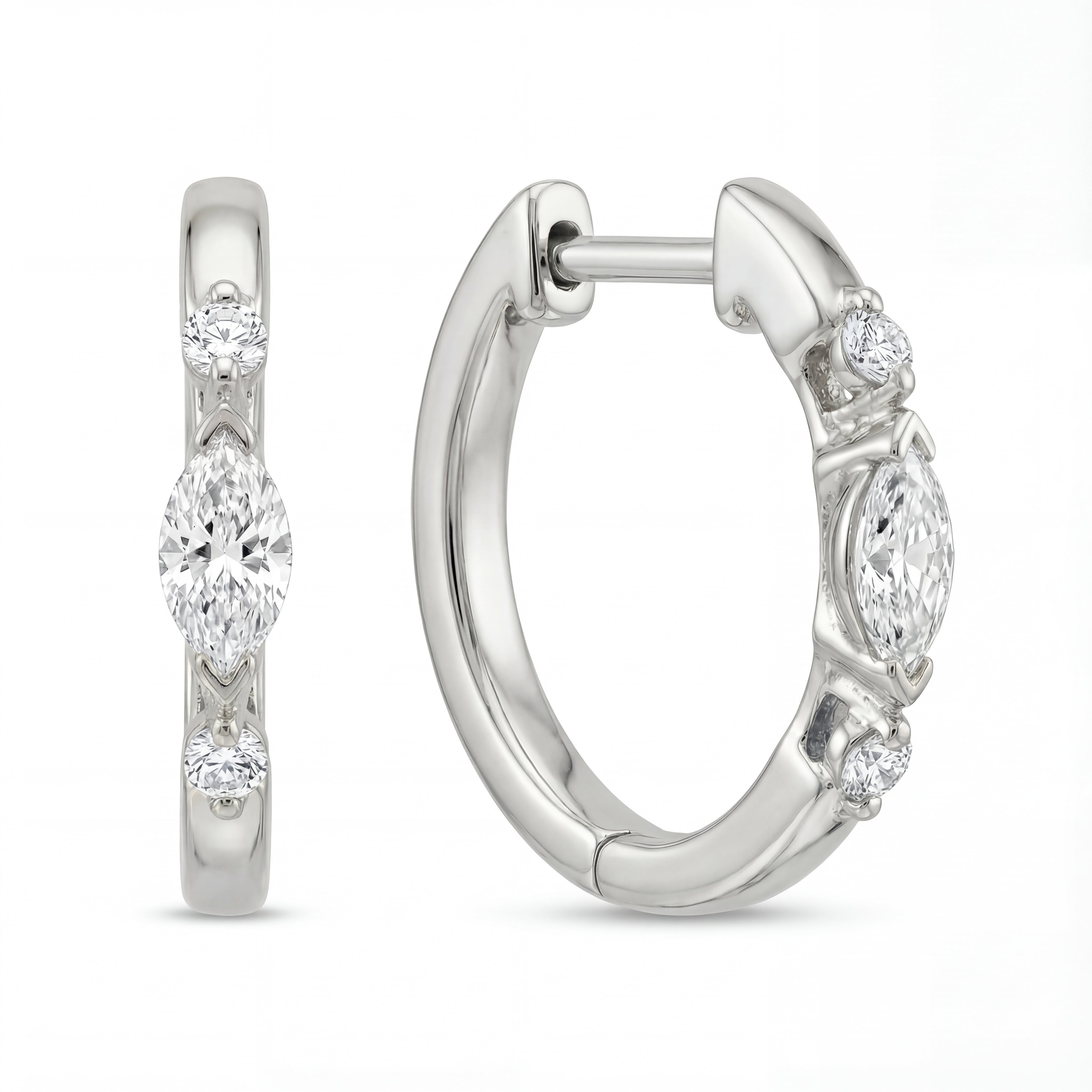 Alternating Marquise and Round Diamond Hoop Earrings 1CTW