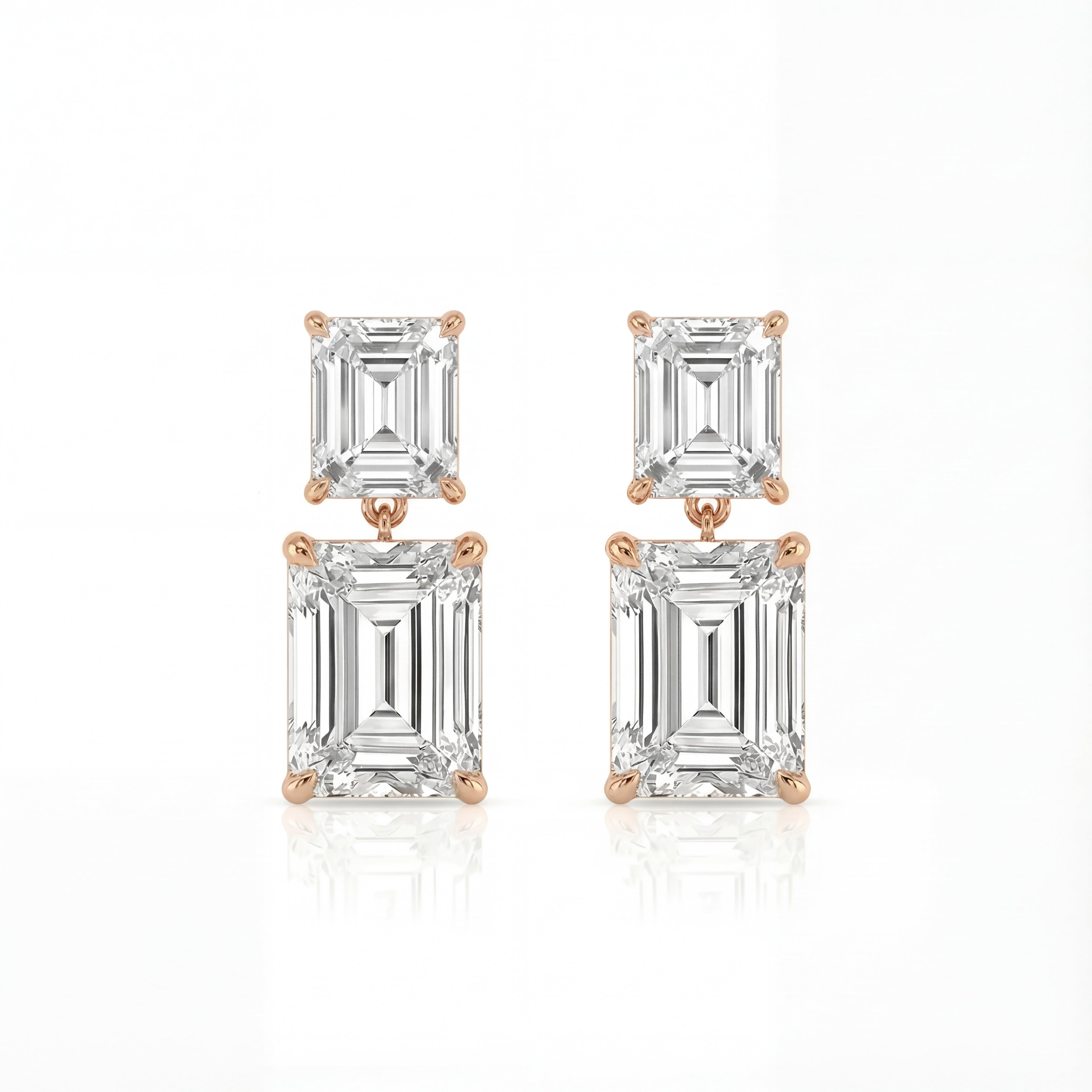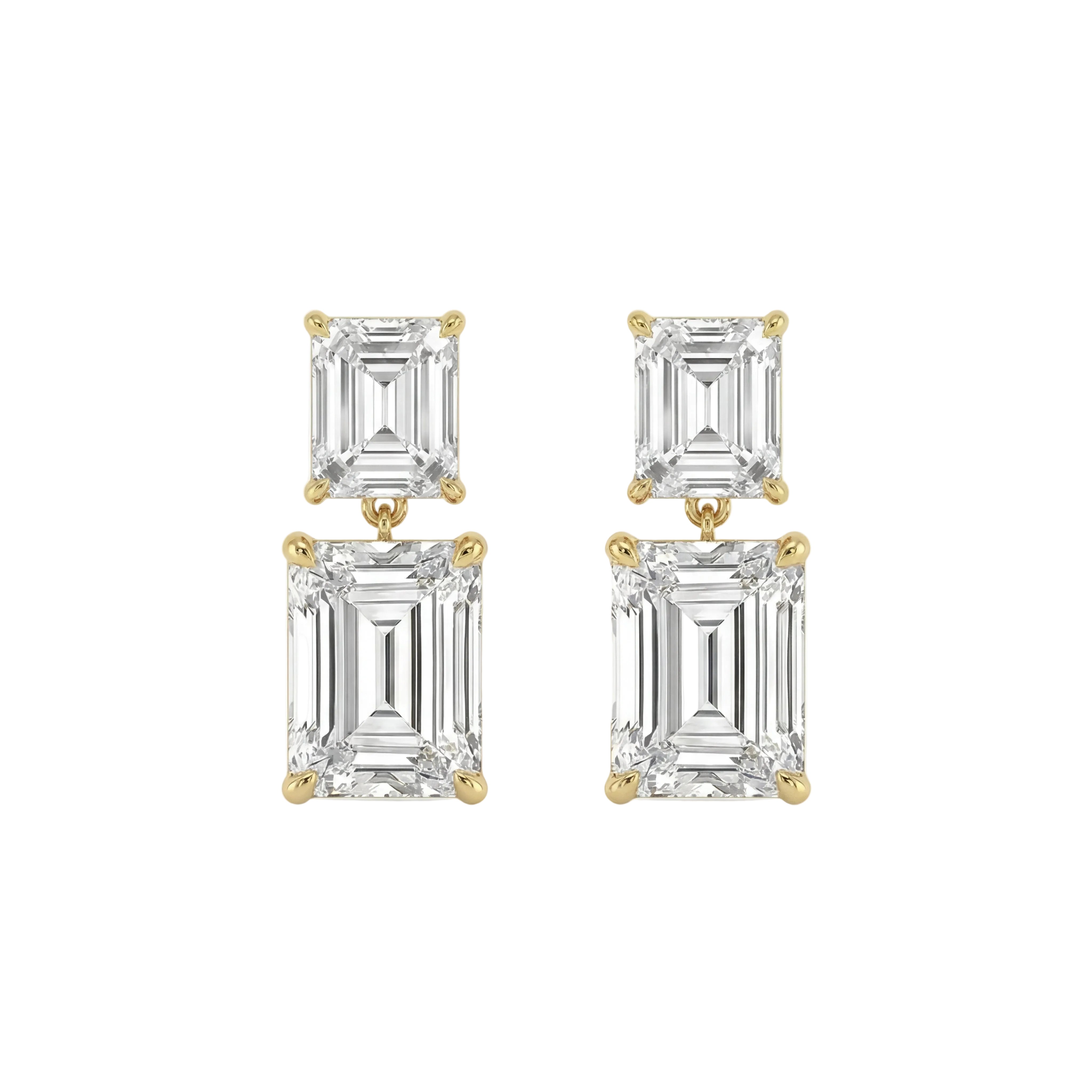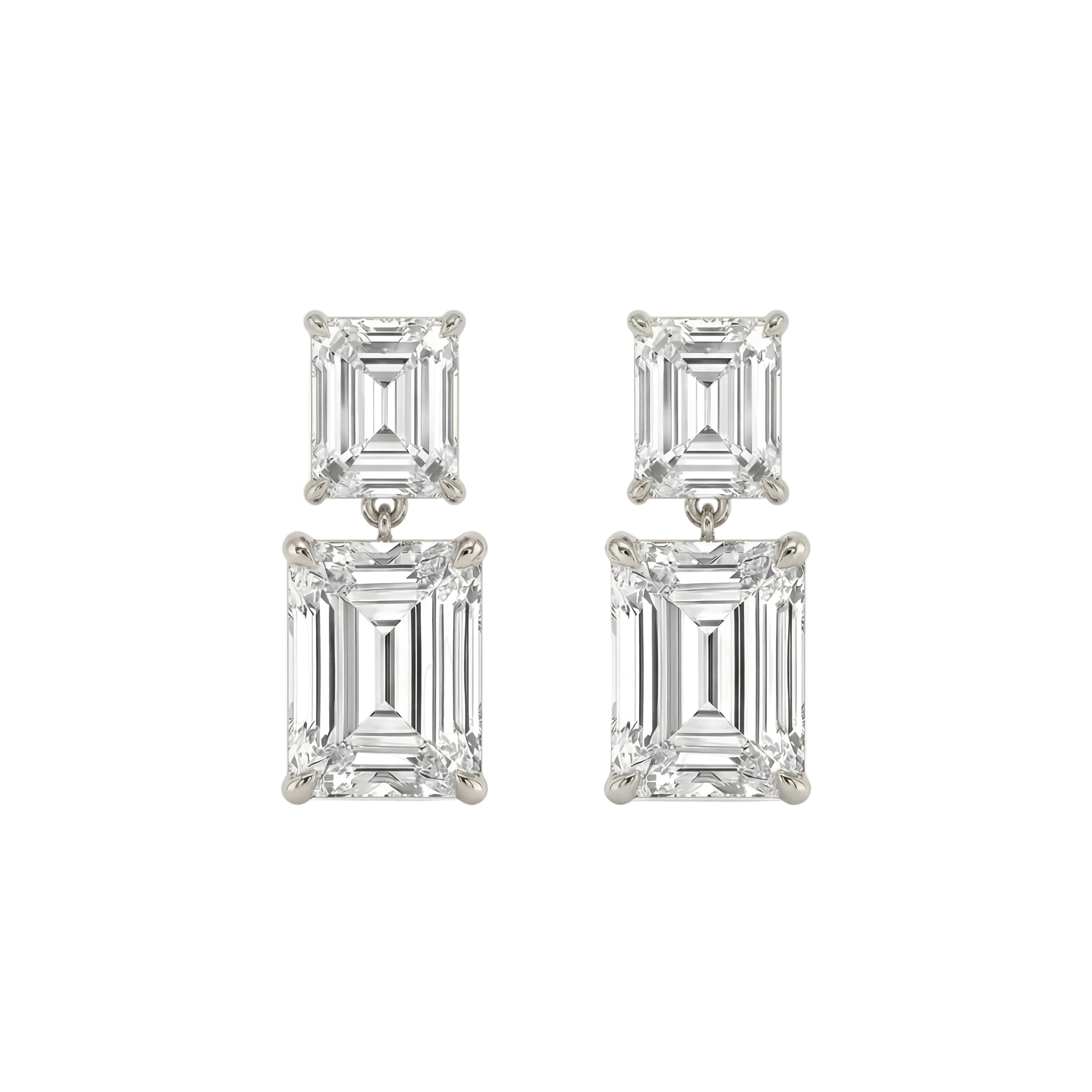 Asscher and Emerald Cut Diamond Drop Stud Earrings