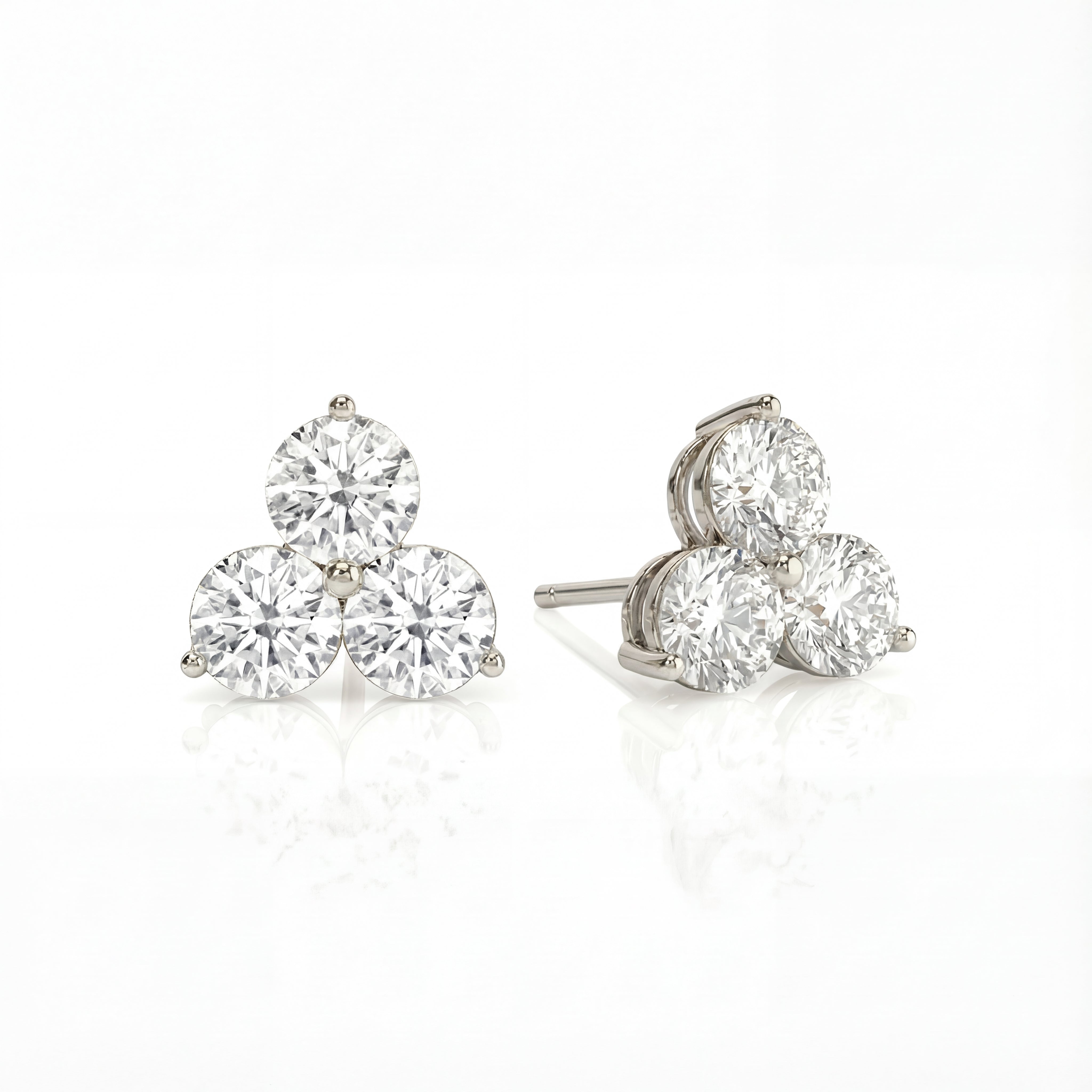 Three-Stone Cluster Diamond Stud Earrings 0.6CTW