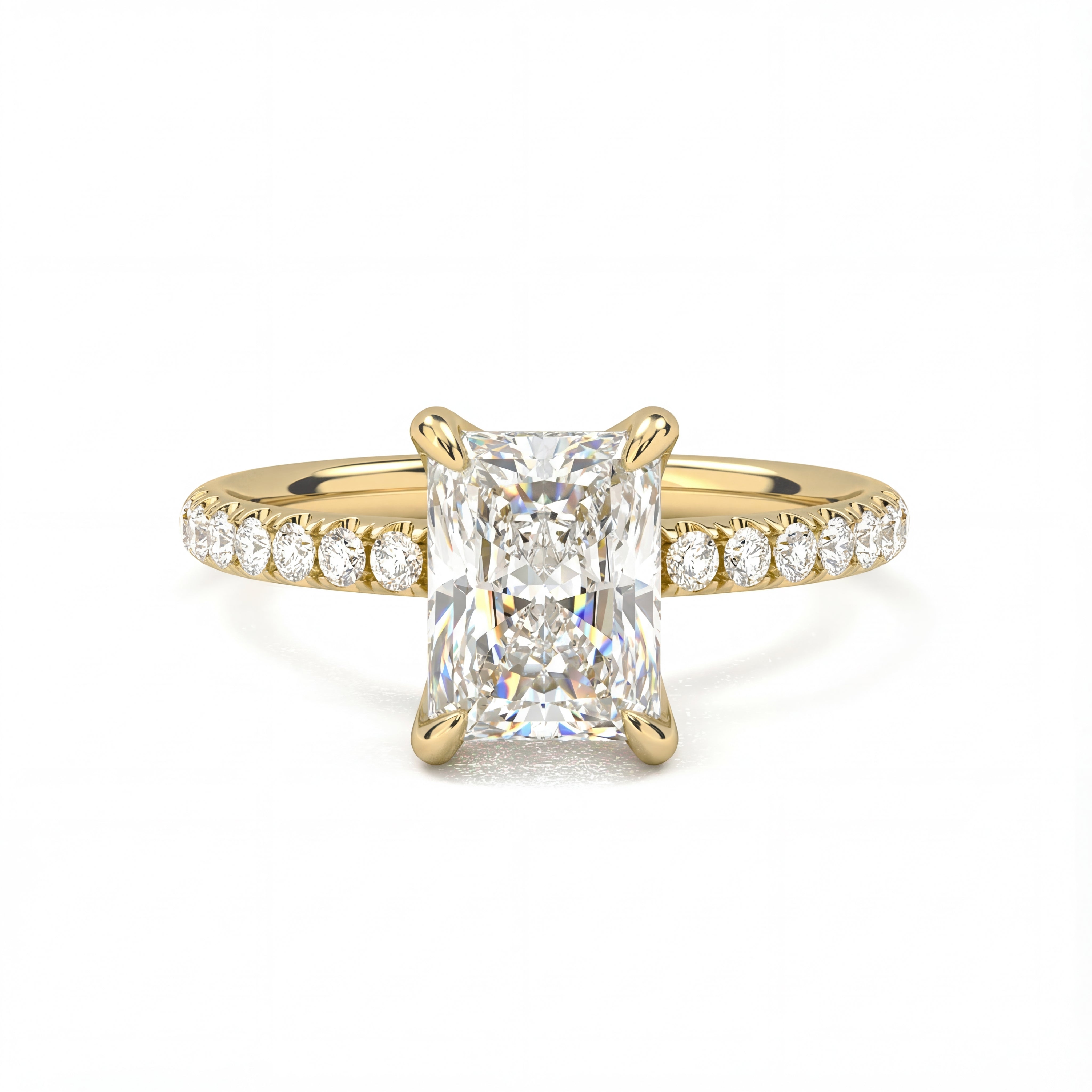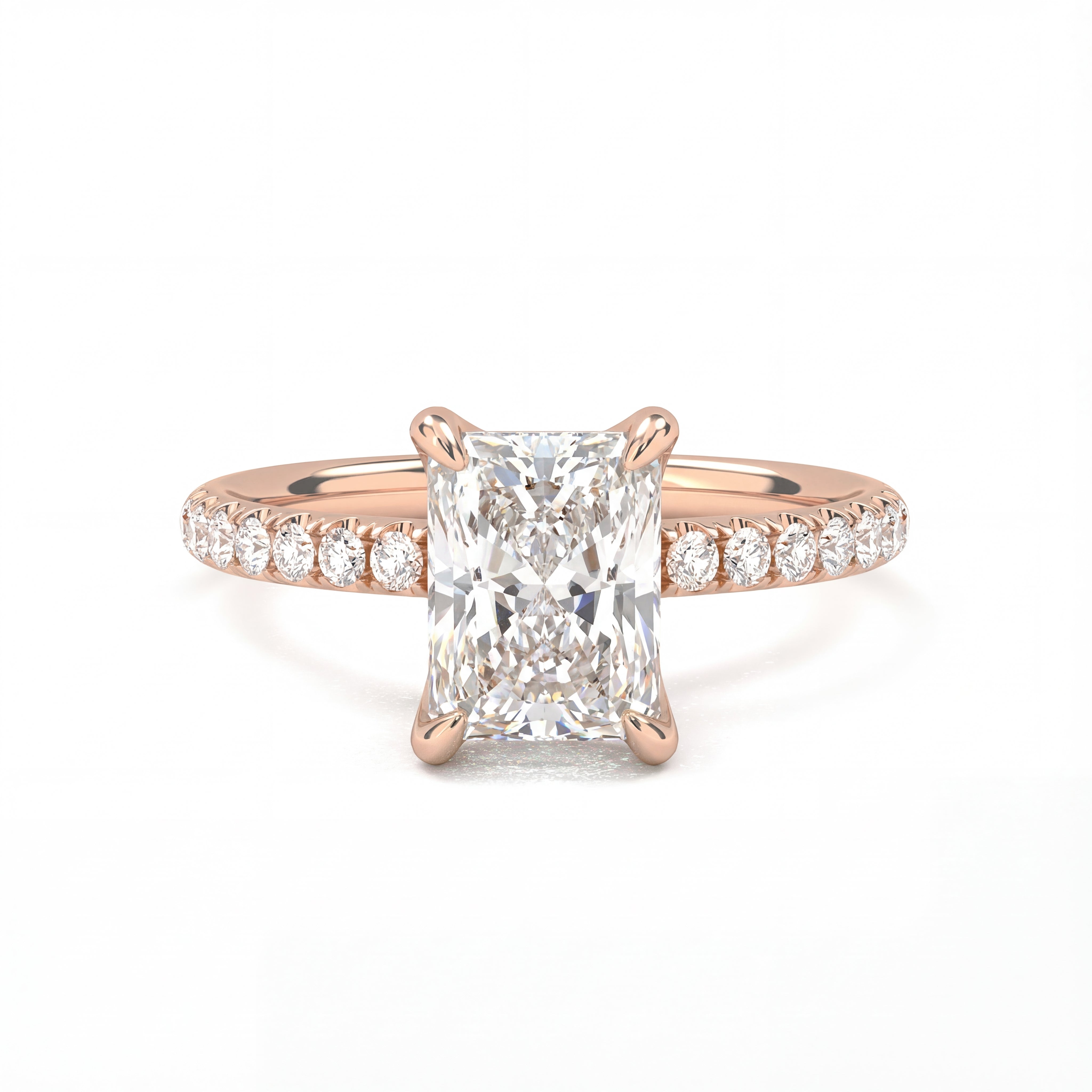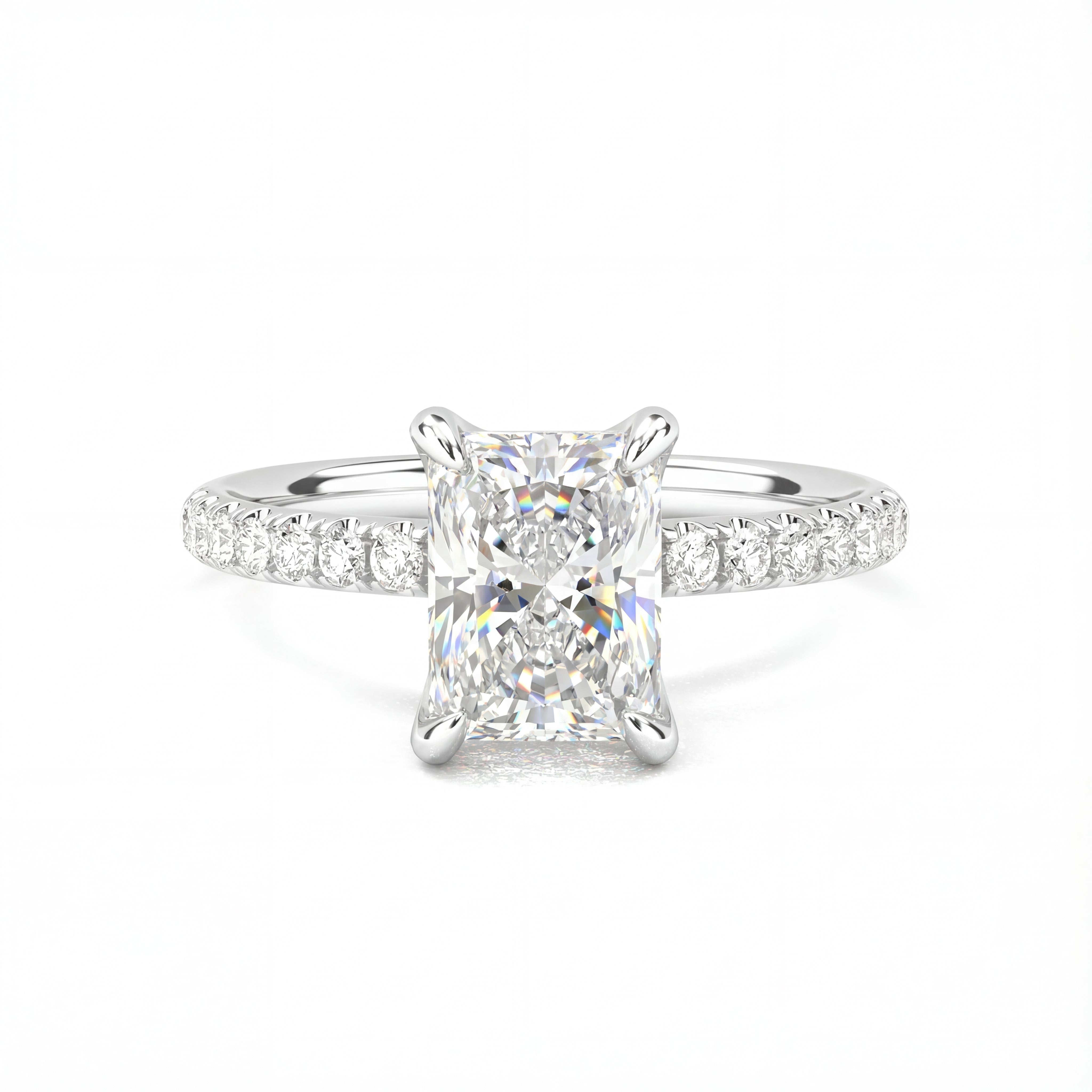 Prong Pavé Solitaire Radiant Cut Diamond Ring