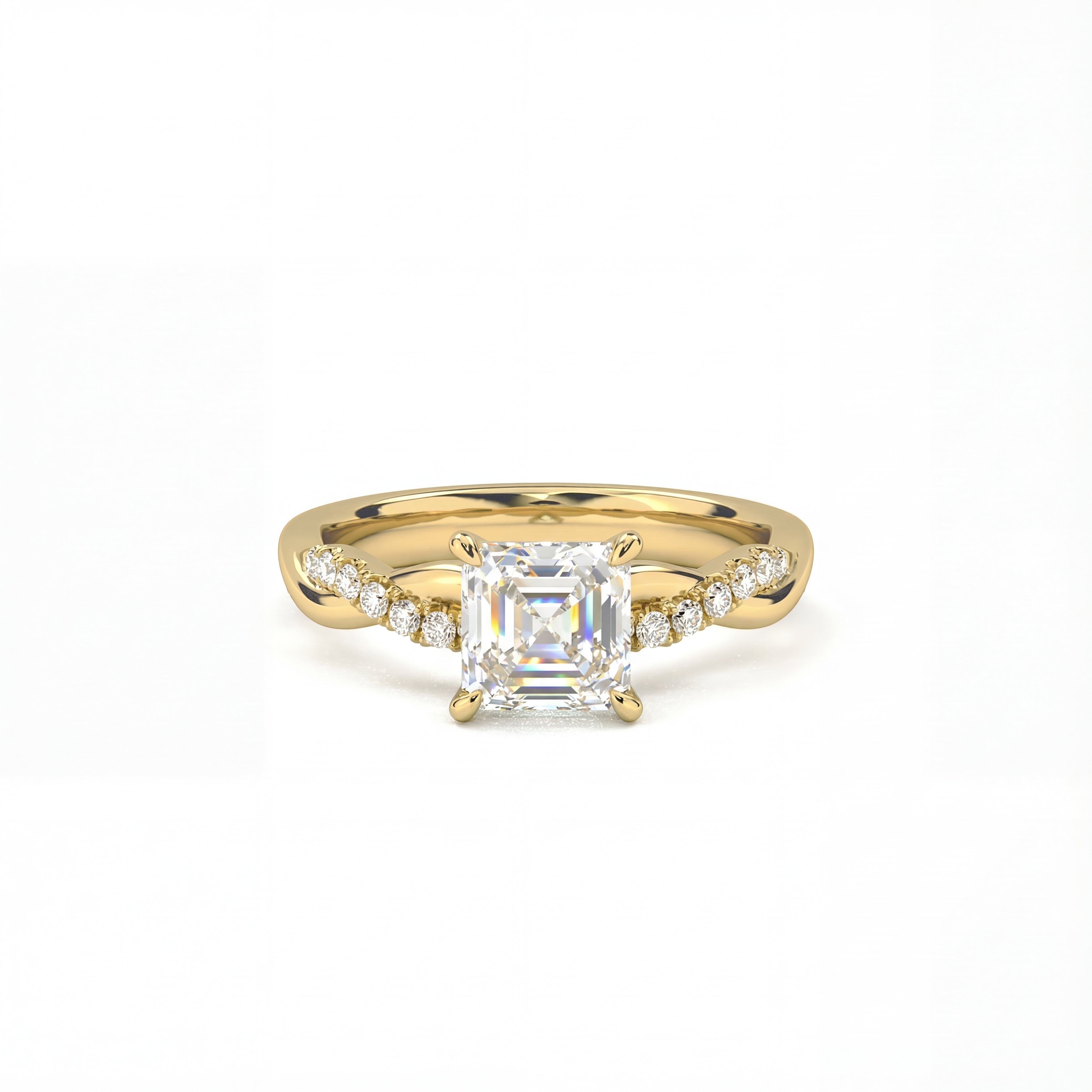 Twisted Side Stone Solitaire Asscher Cut Diamond Ring