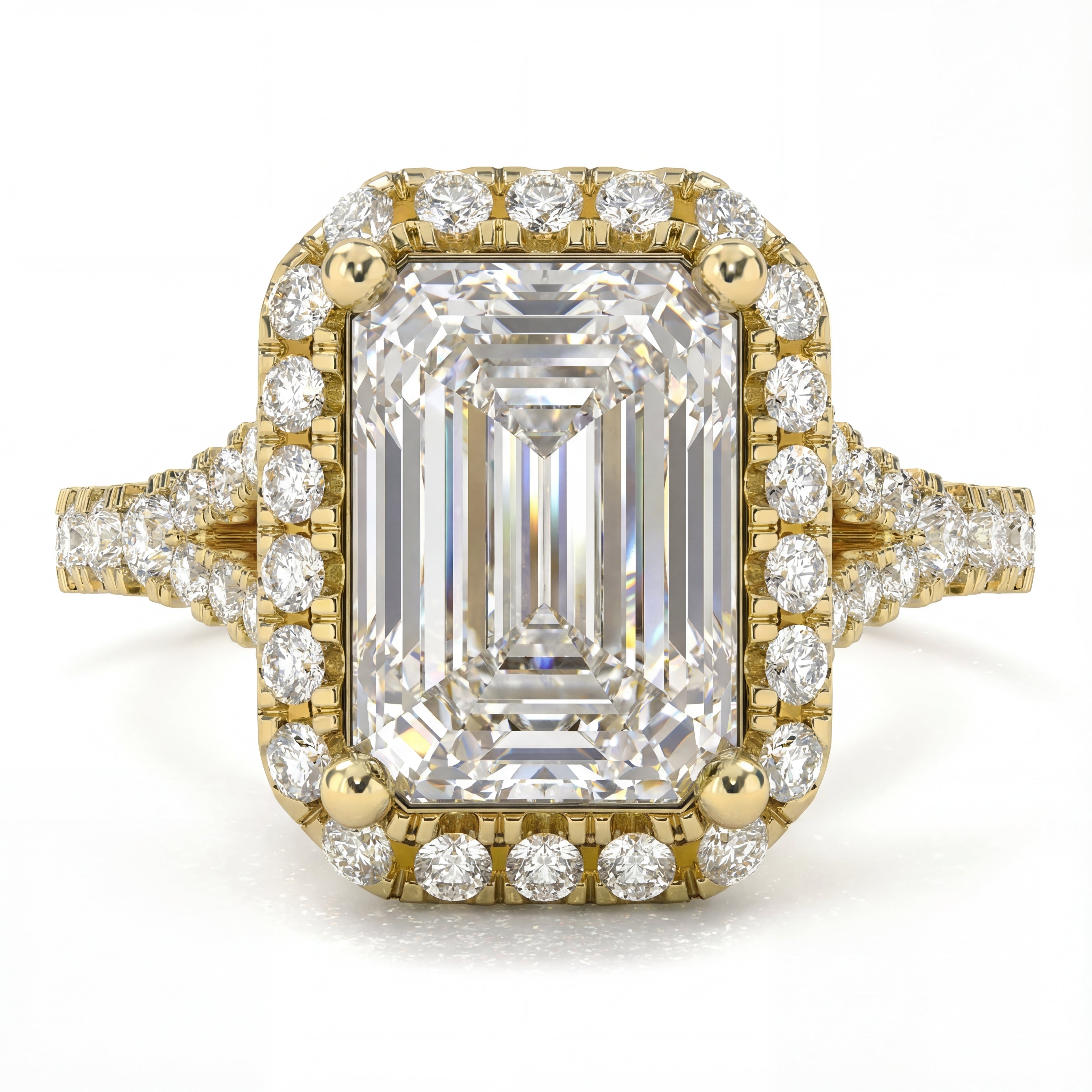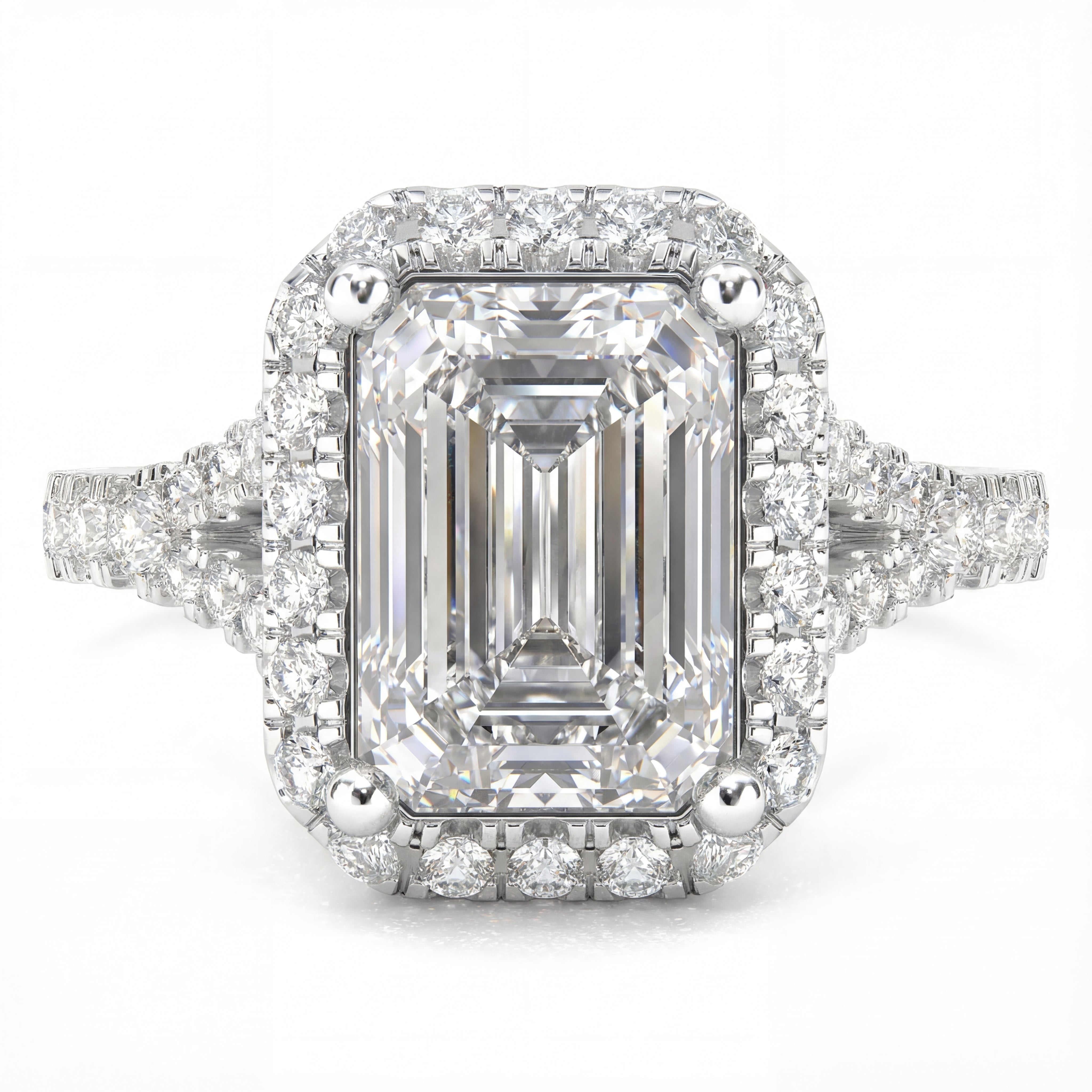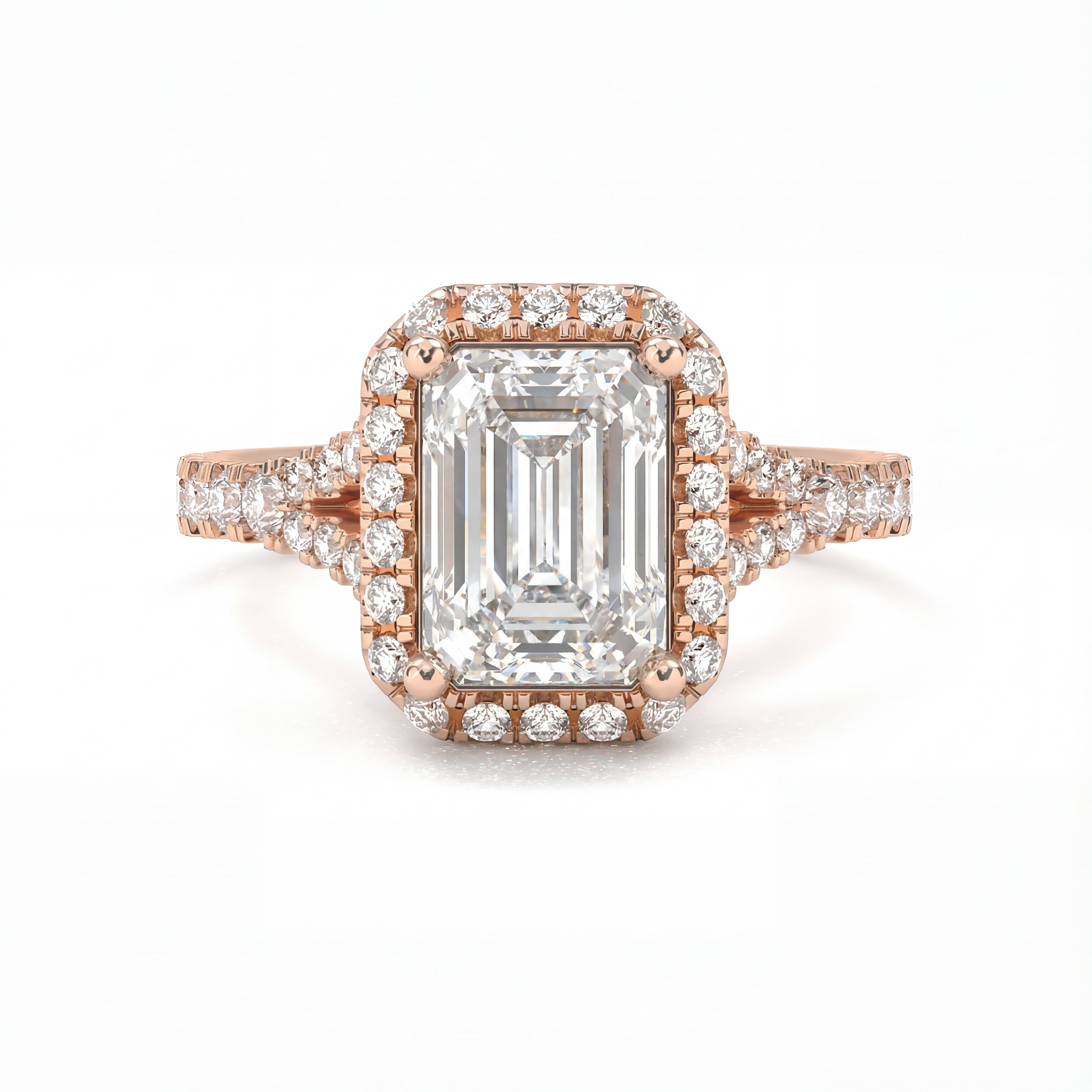 Vintage Halo Pavé Emerald Cut Diamond Ring