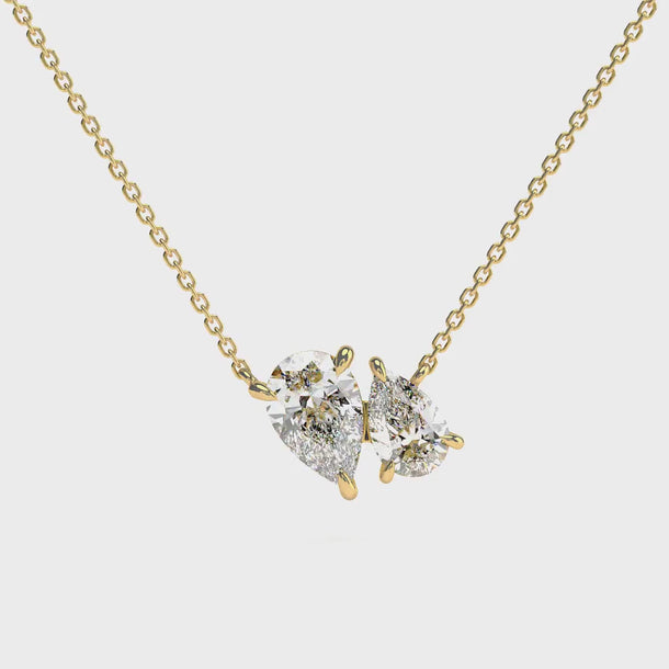 1.5 CTW Toi Et Moi Pear Cut Diamond Necklace