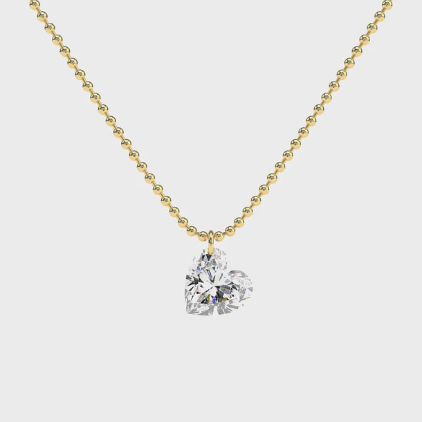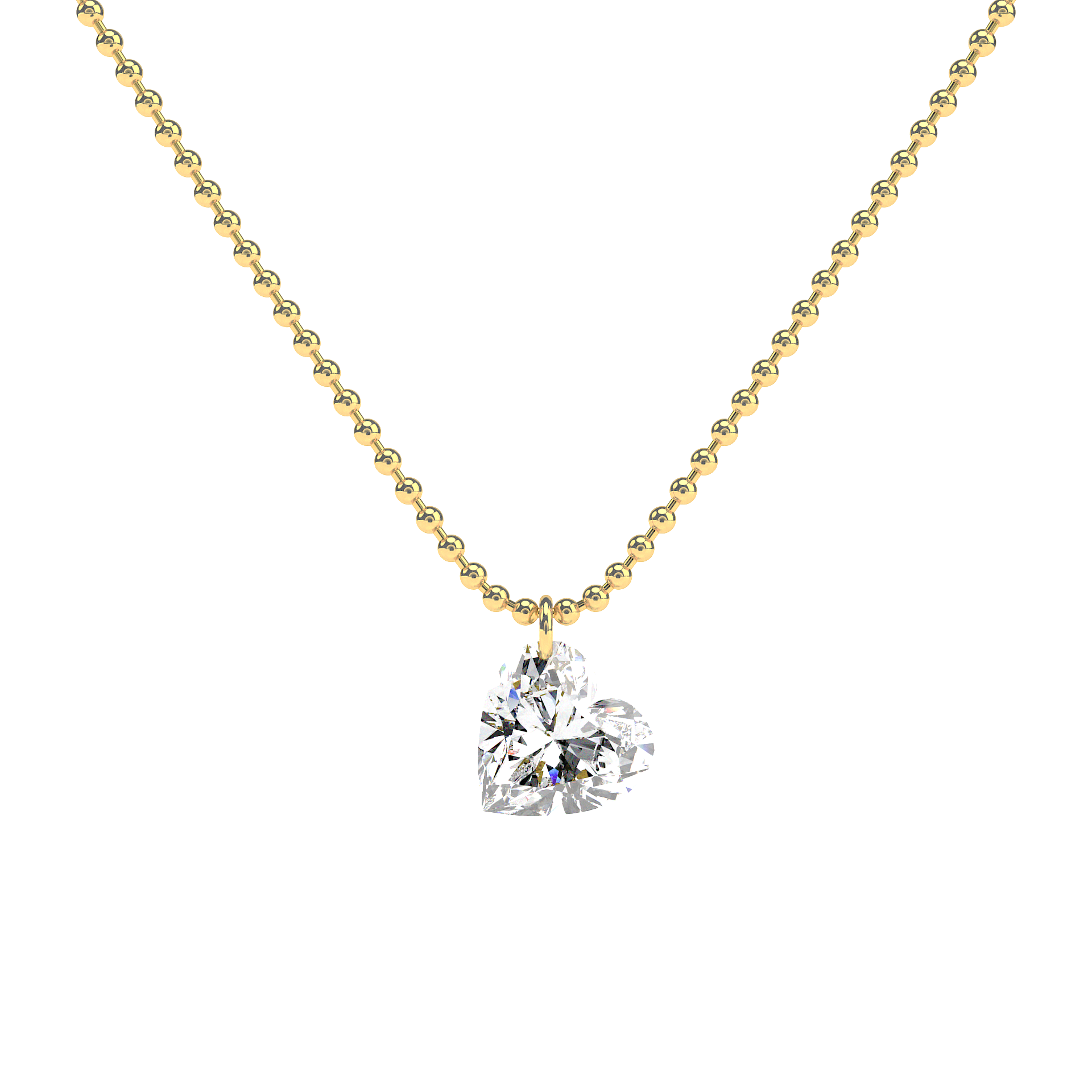 Sweet, modern, and full of sparkle. This necklace features a heart-shaped diamond with a tiny drilled opening, allowing it to hang directly on a delicate 14K yellow gold bead chain. The unique floating design means there’s no bulky setting—just pure, radiant brilliance that seems to dance effortlessly against your skin. Perfect for adding a touch of romance to your everyday style or gifting to someone you love.