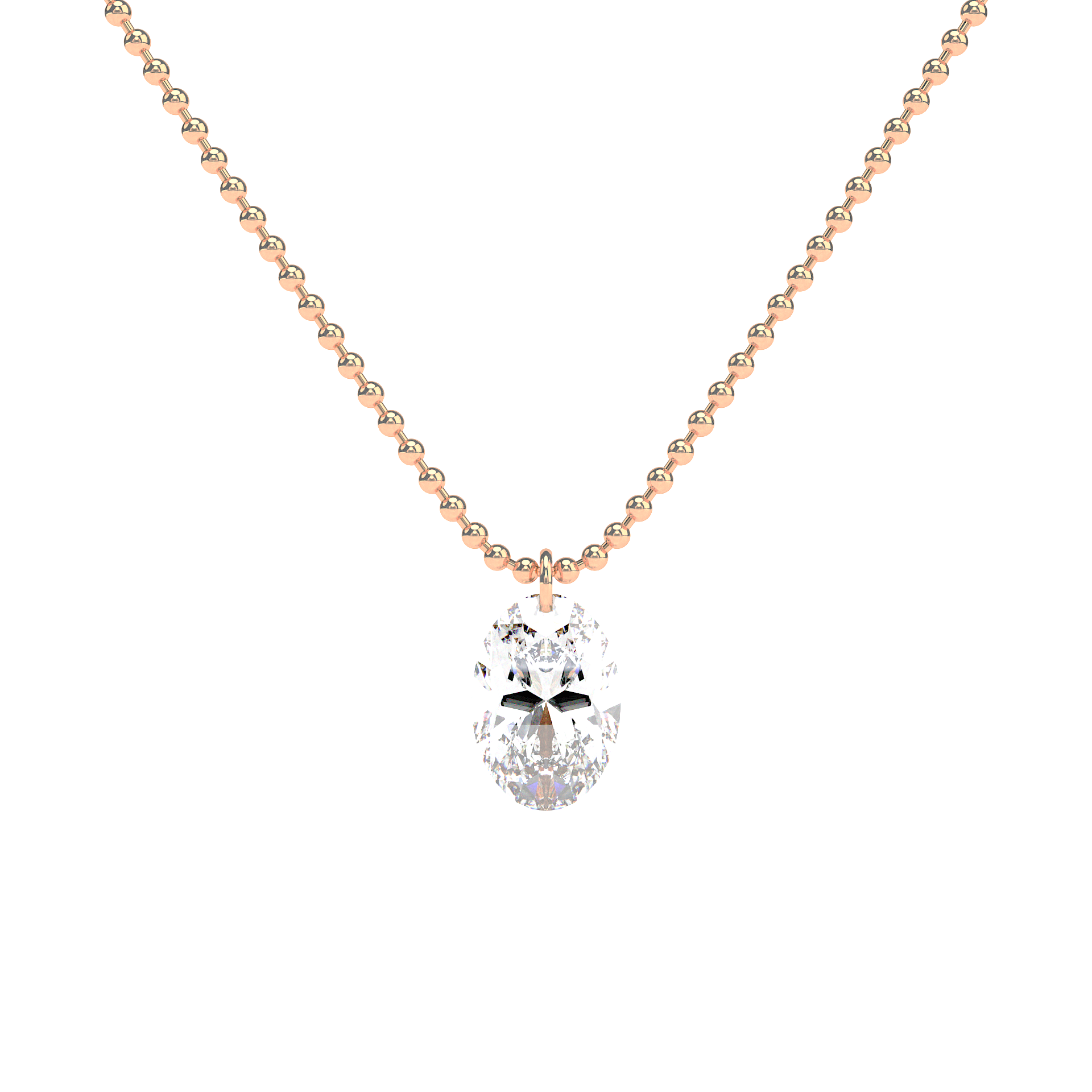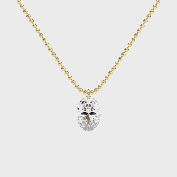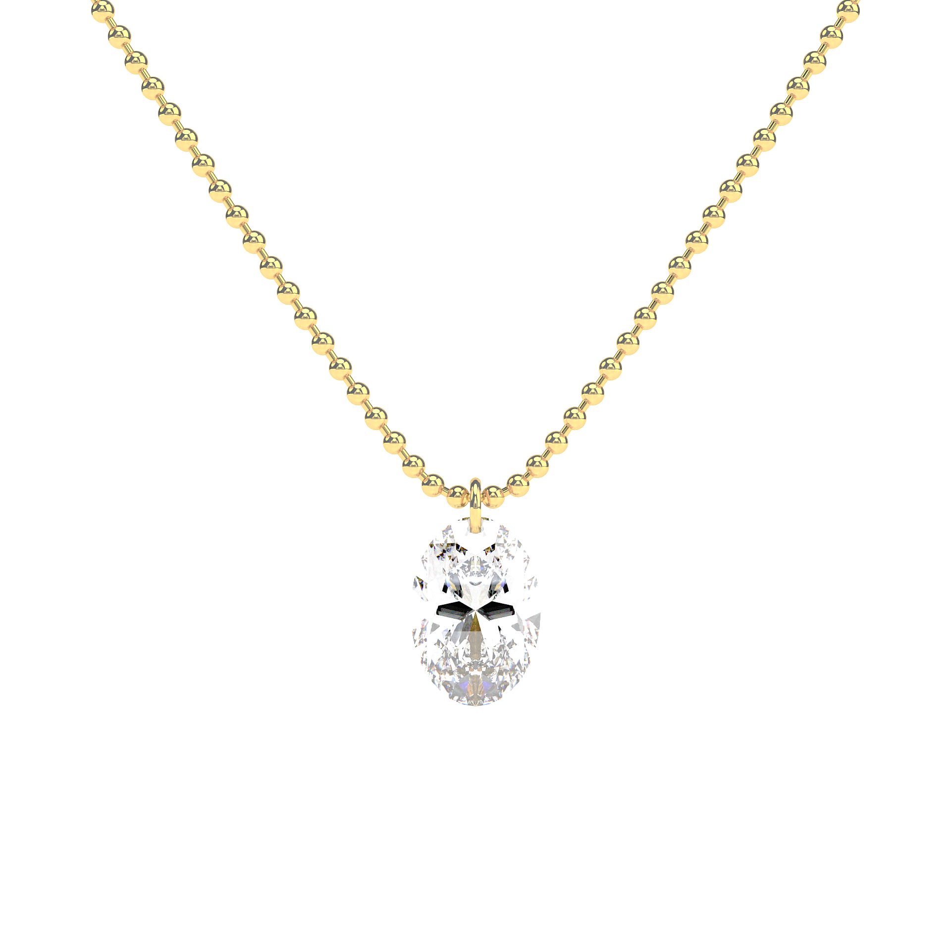 Elegant and endlessly versatile. This necklace features a dazzling oval-cut diamond with a subtle drilled opening, letting it float freely on a 14K yellow gold bead chain. The floating design keeps the focus on the stone’s graceful elongated shape and brilliant sparkle, giving you a piece that feels both modern and timeless. A perfect go-to for layering or wearing solo as your everyday signature.