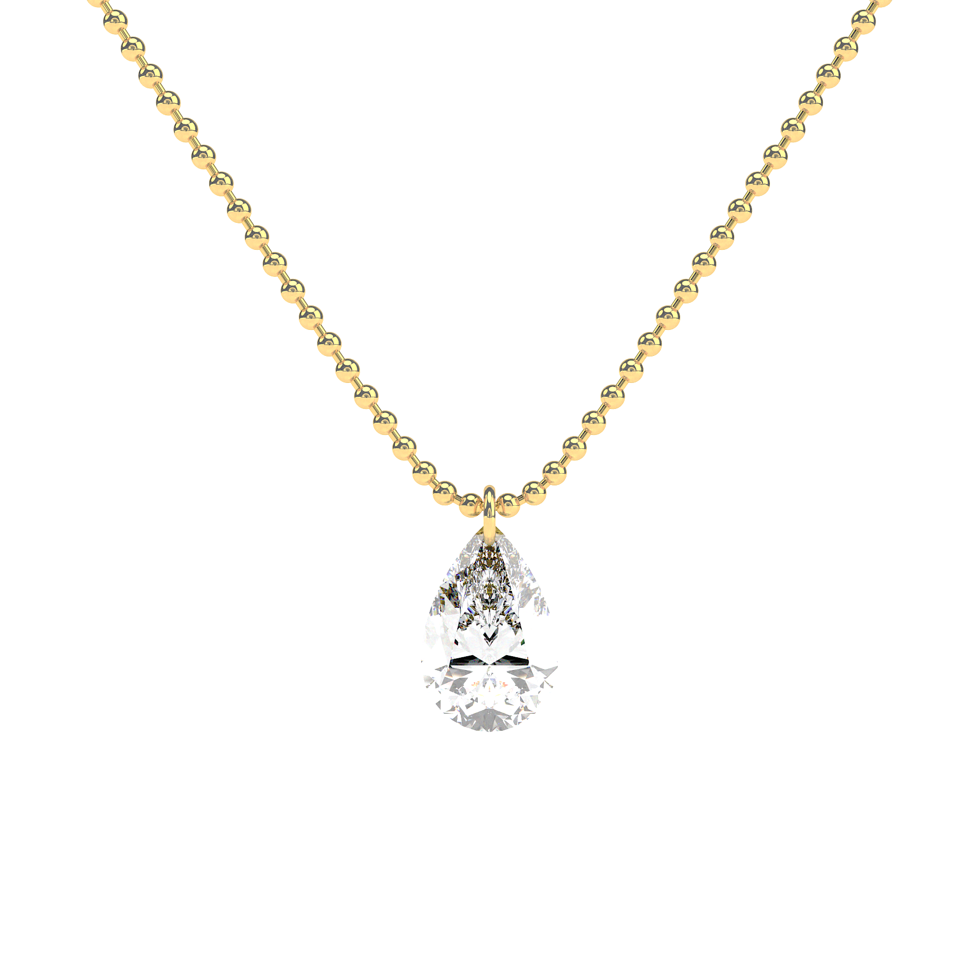 Graceful, sparkling, and effortlessly chic. This necklace features a pear-shaped diamond with a small drilled opening, allowing it to float directly on a 14K yellow gold bead chain. With no heavy setting, the diamond’s teardrop silhouette shines beautifully, creating a soft yet striking look. A versatile piece that feels just as perfect for everyday wear as it does for a special occasion.