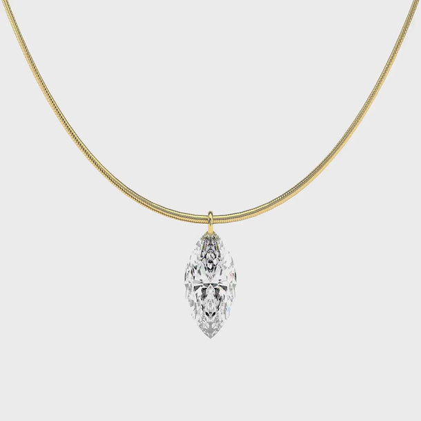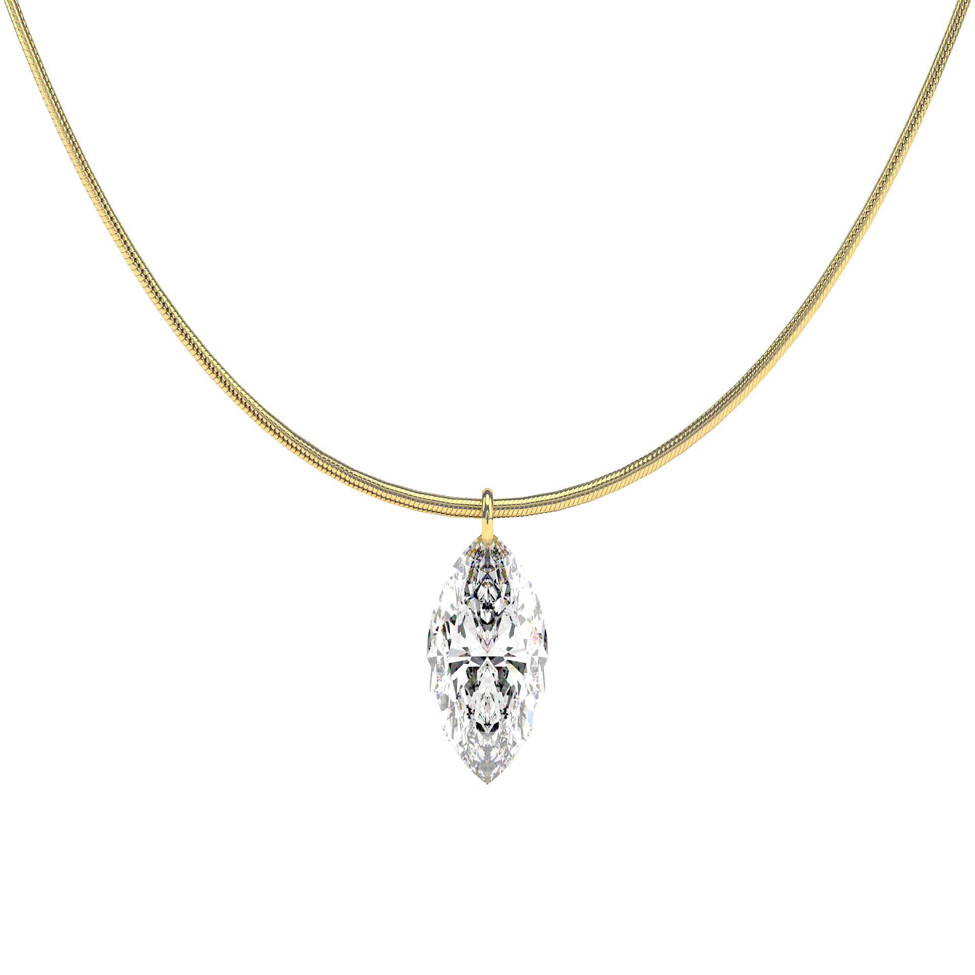 Unique and eye-catching. This necklace features a marquise-cut diamond, loved for its elegant, elongated shape that makes the stone look even more brilliant. Suspended on a sleek 14K yellow gold snake chain, the pendant has just the right mix of bold sparkle and refined style. It’s a versatile piece that works perfectly for layering or as a stand-alone statement.