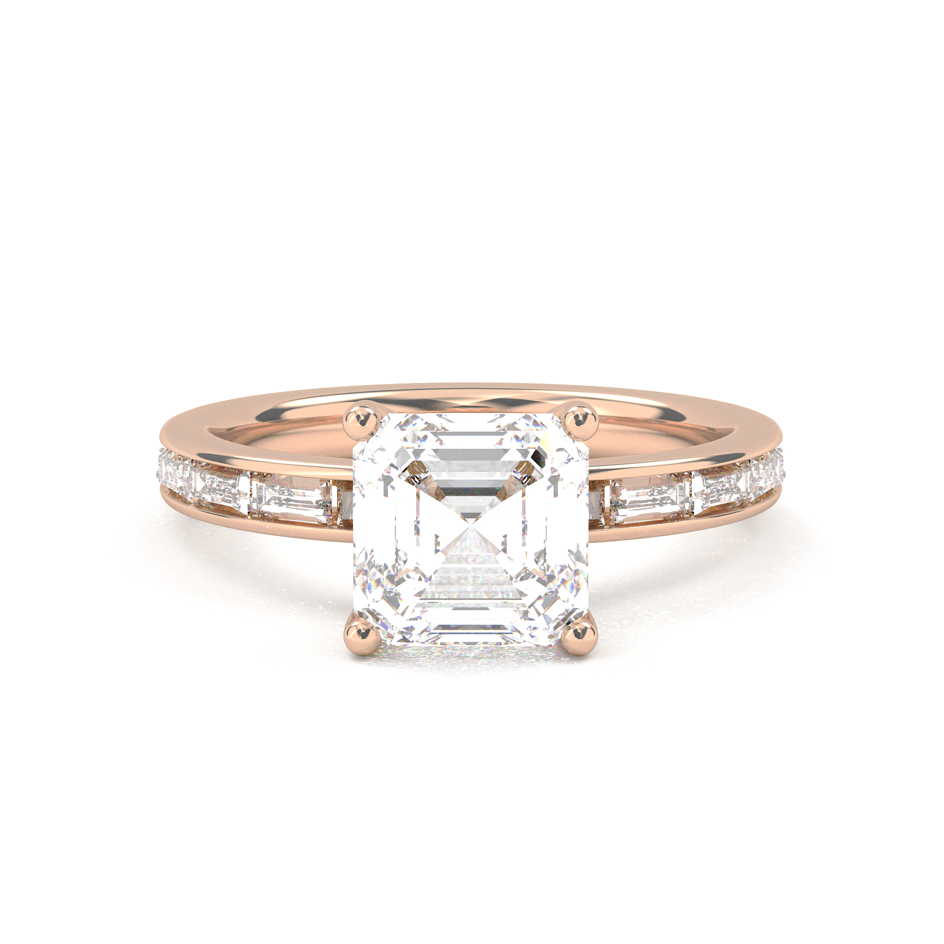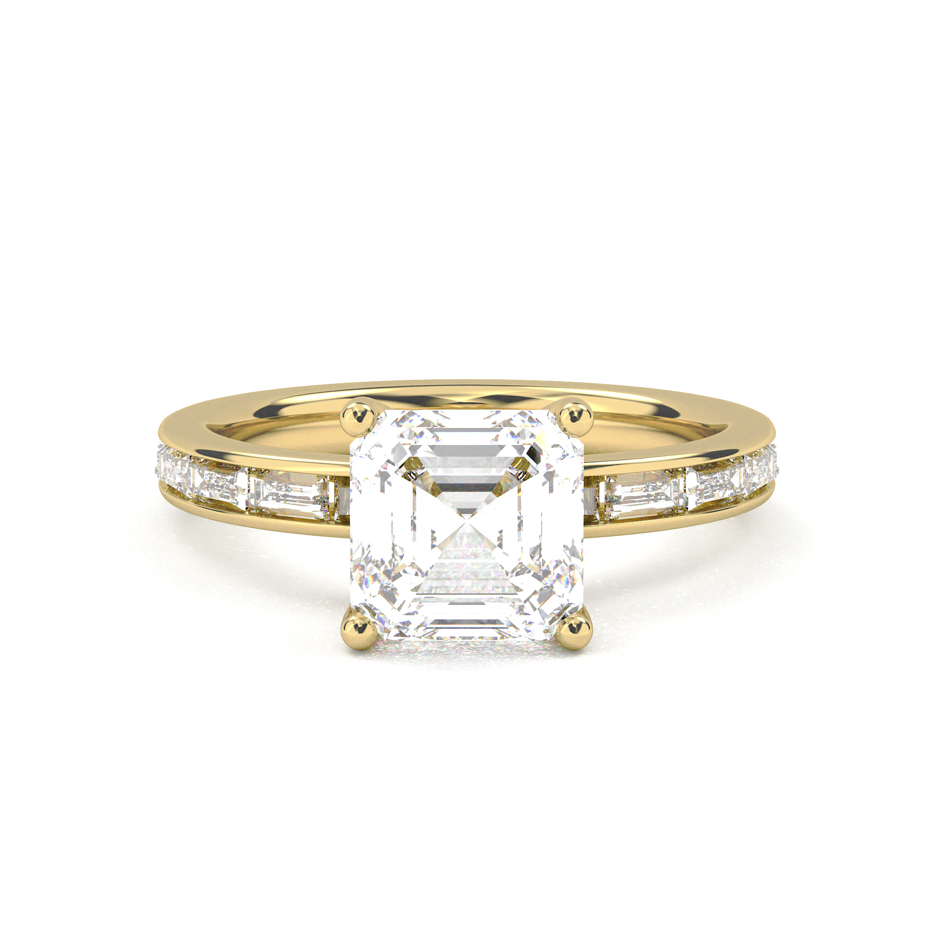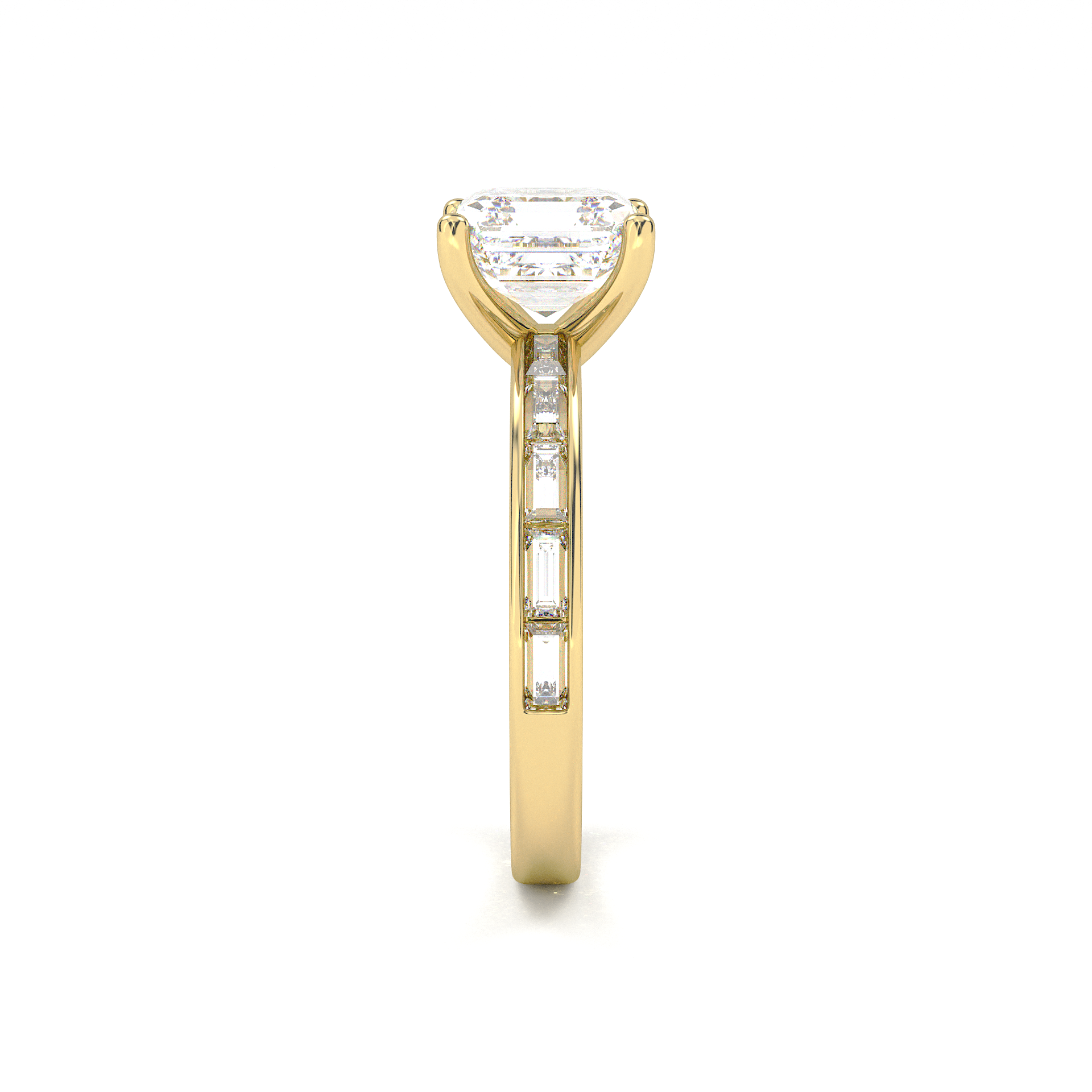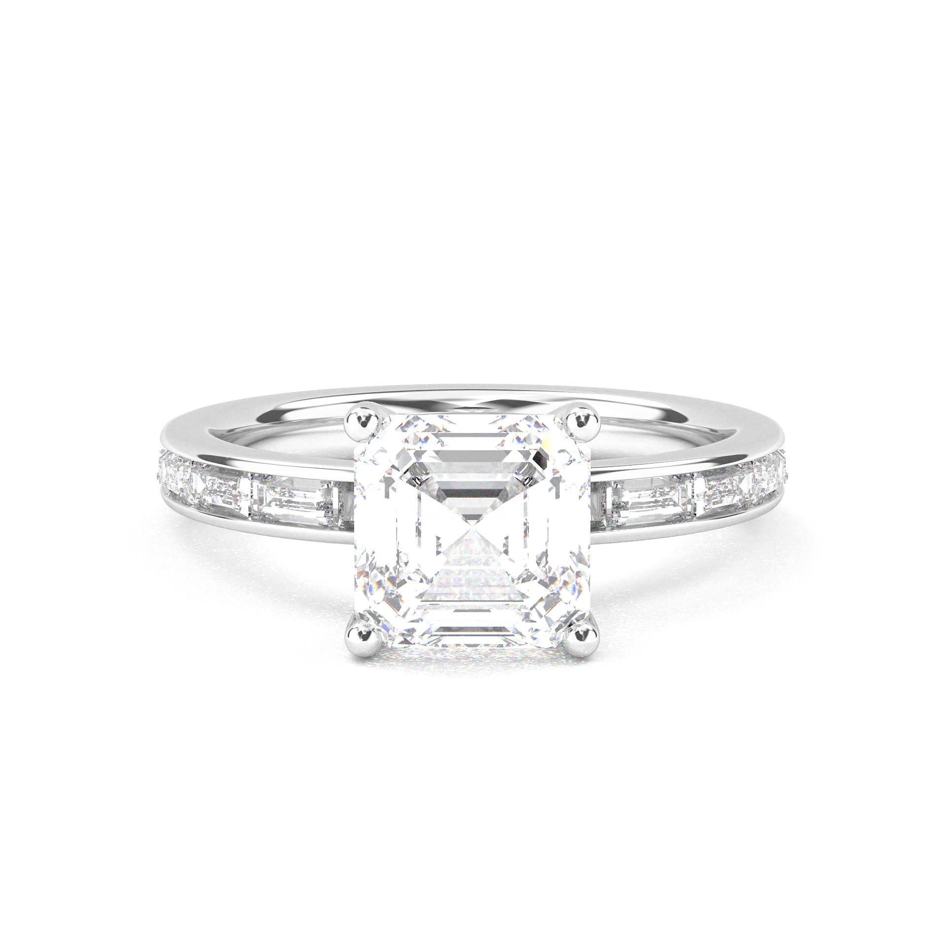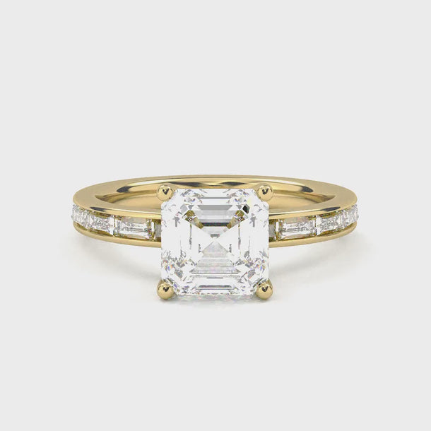 Channel Setting Baguette Pavé Engagement Ring - Asscher Cut