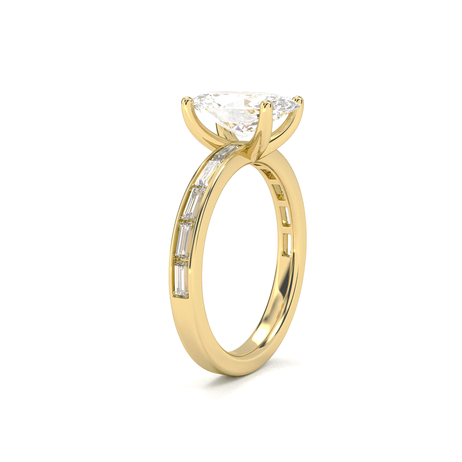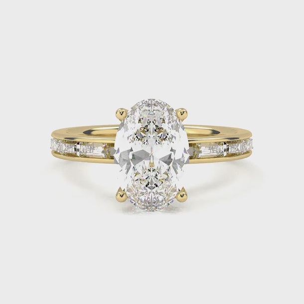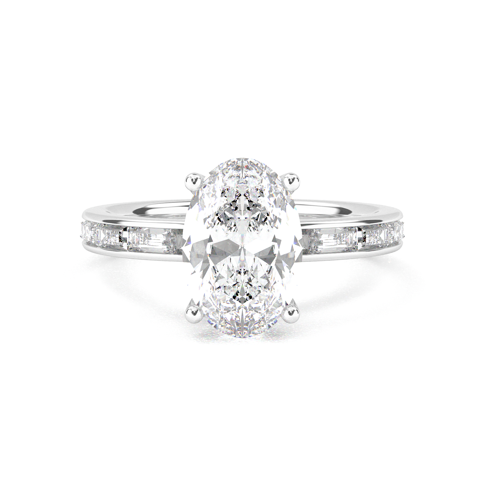Channel Setting Baguette Pavé Engagement Ring - Oval Cut