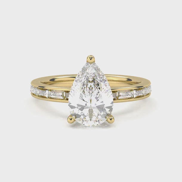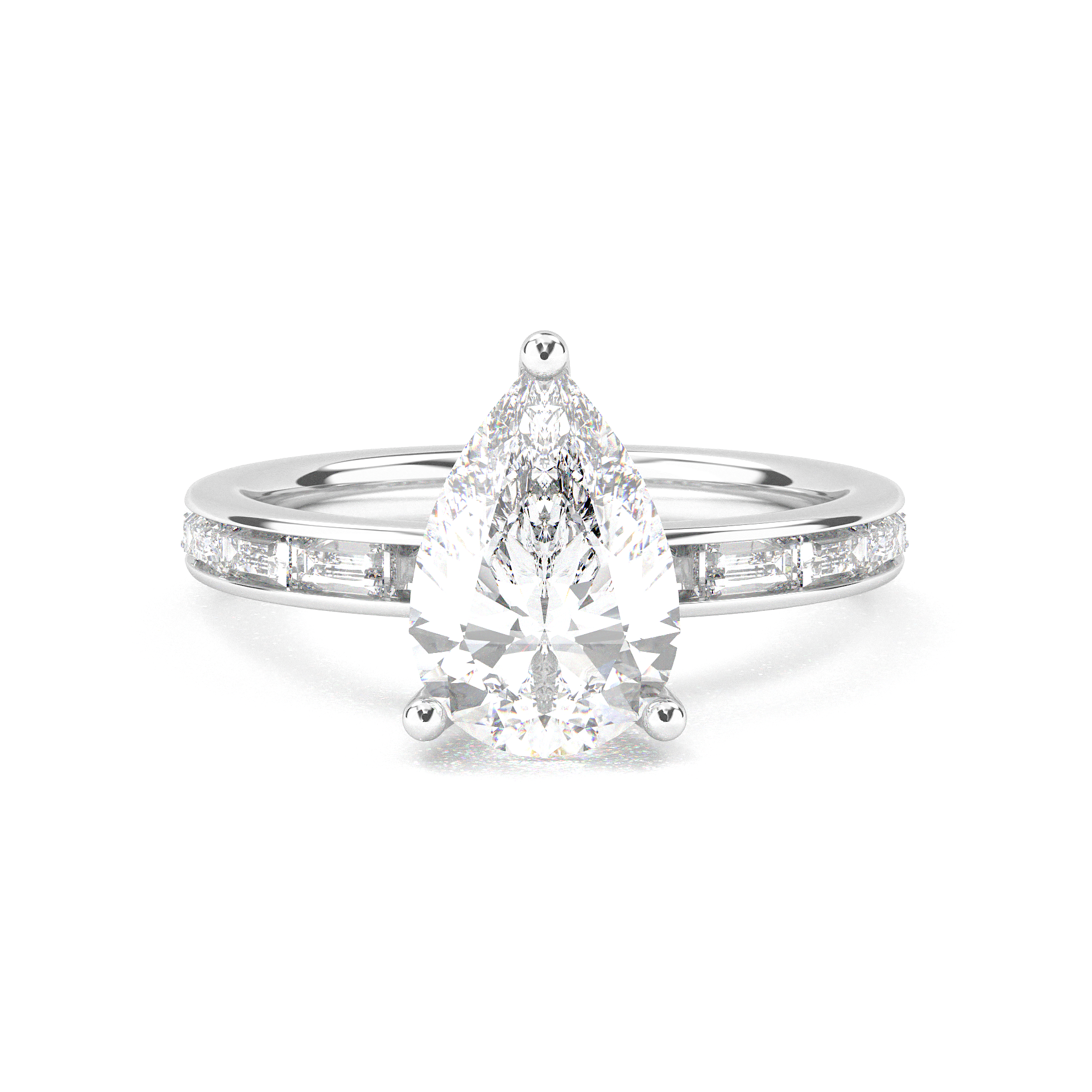 Channel Setting Baguette Pavé Engagement Ring - Pear Cut