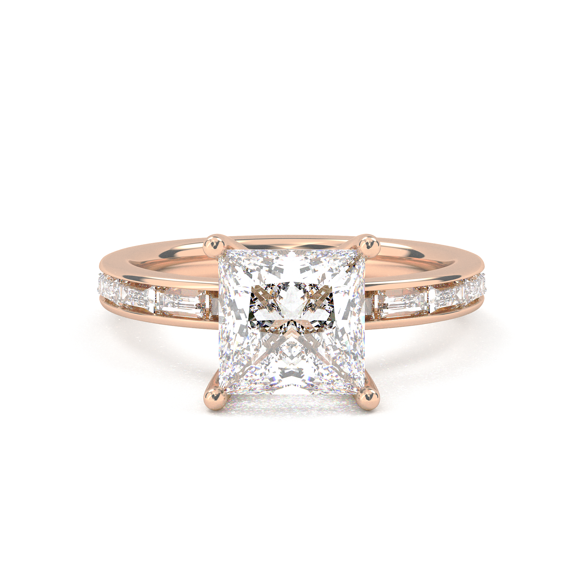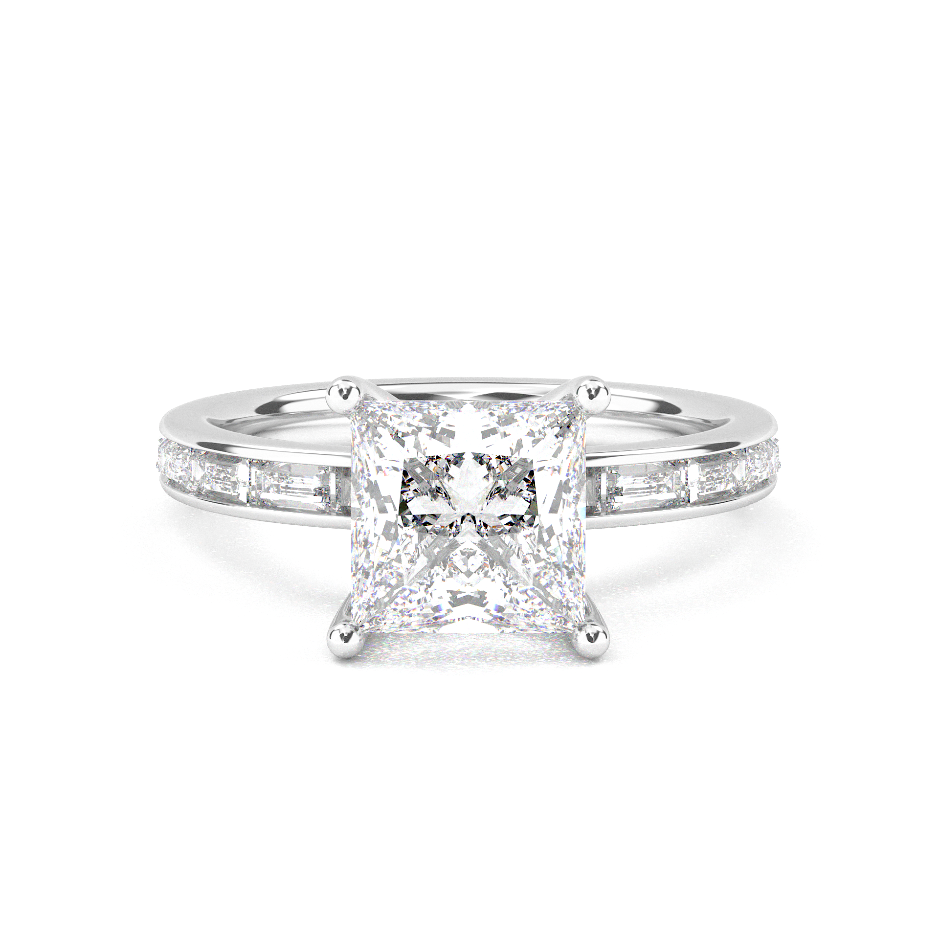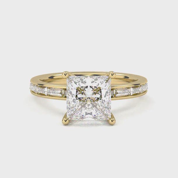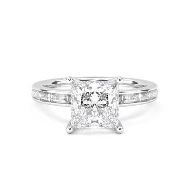Channel Setting Baguette Pavé Engagement Ring - Princess Cut