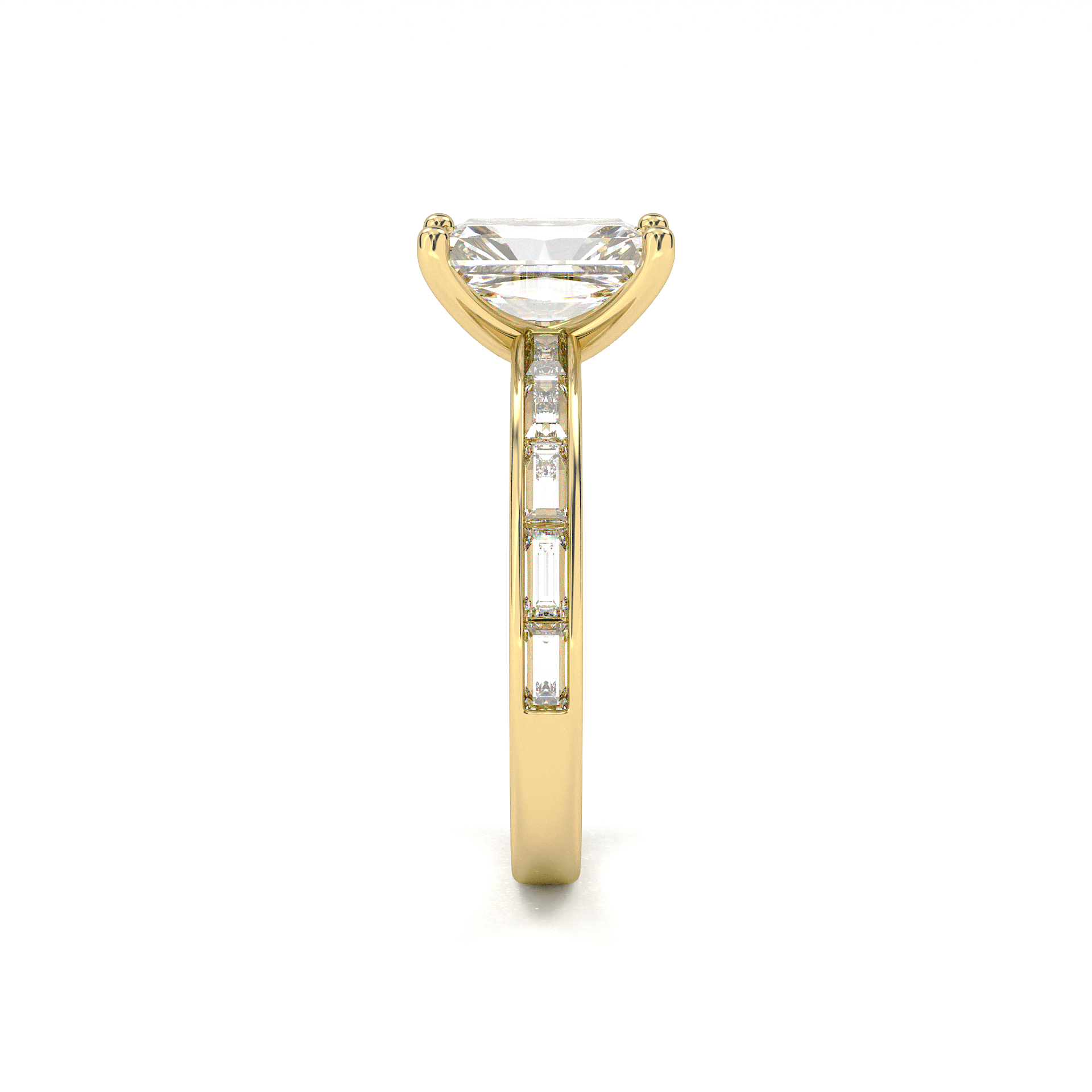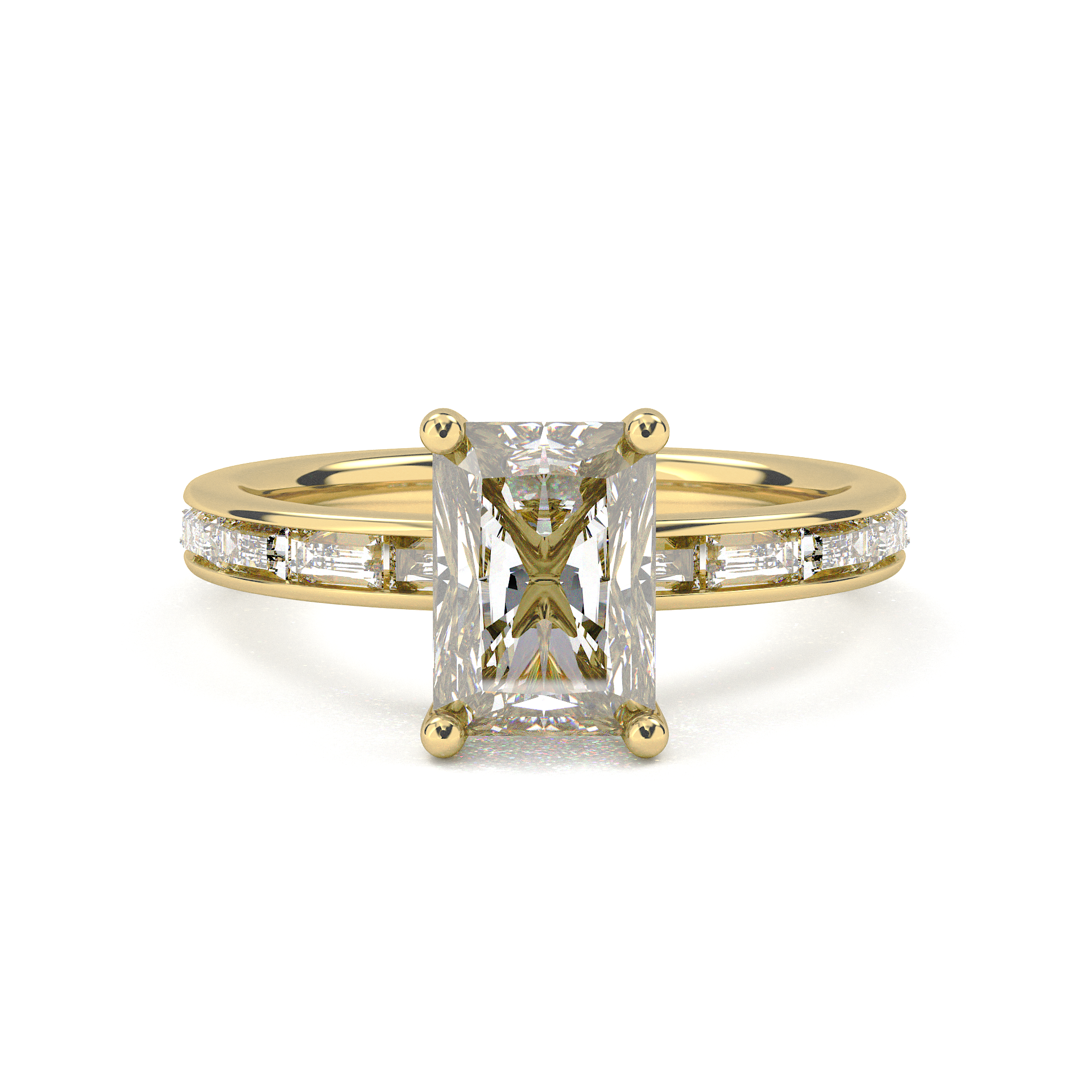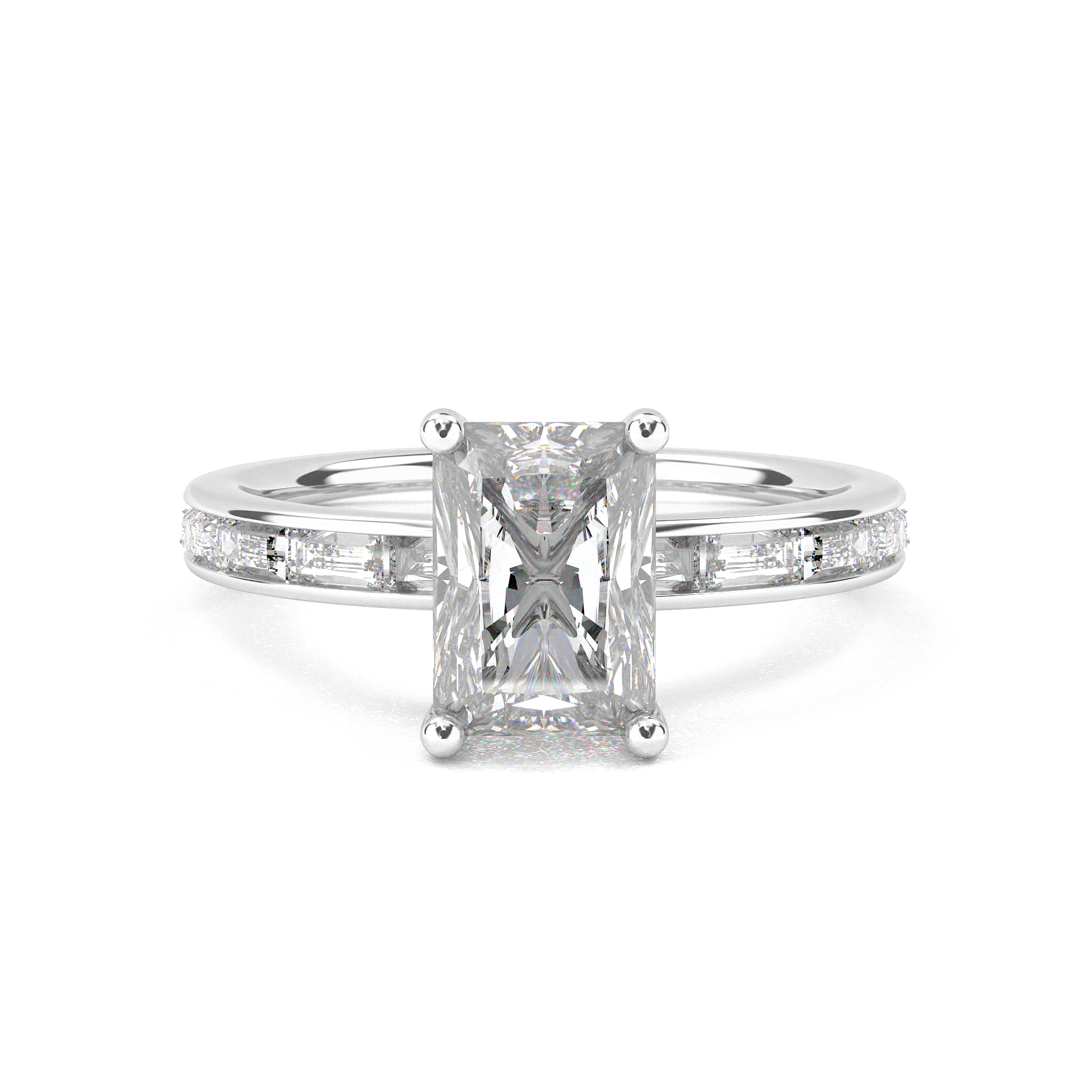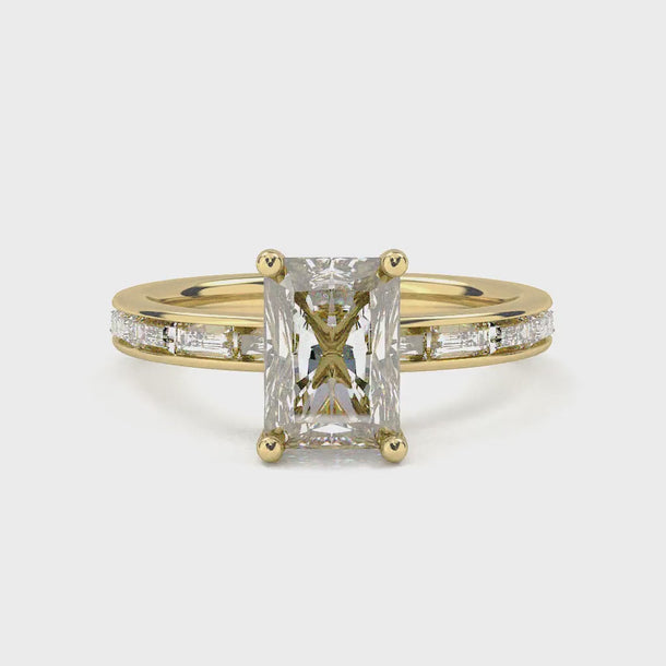 Channel Setting Baguette Pavé Engagement Ring - Radiant Cut