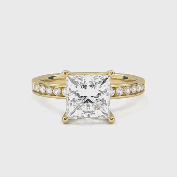 Channel Setting Pavé Engagement Ring - Princess Cut