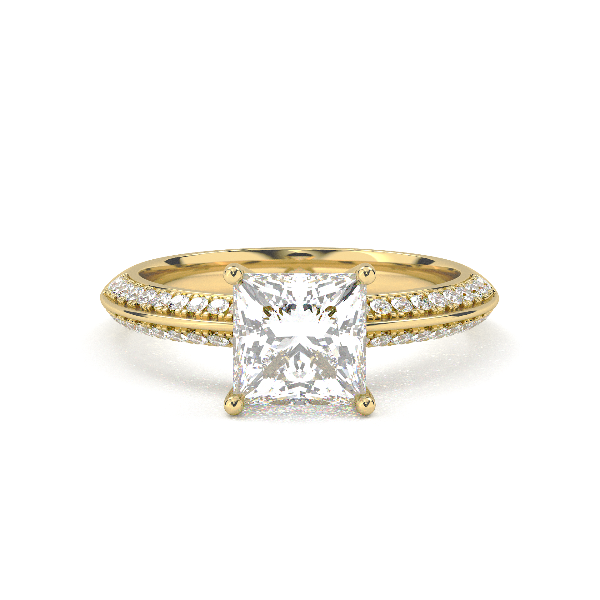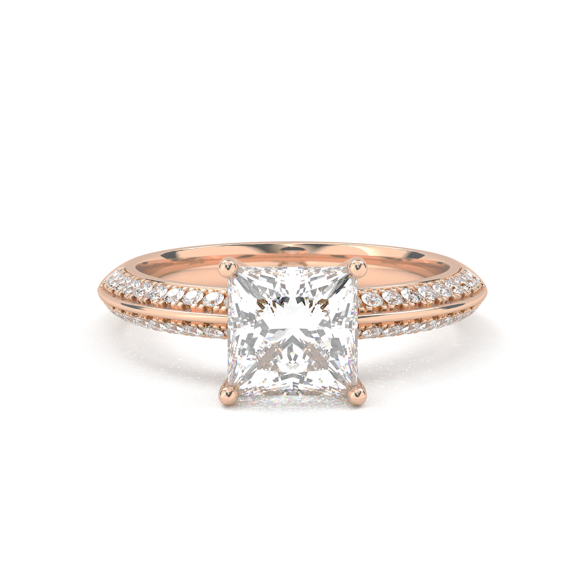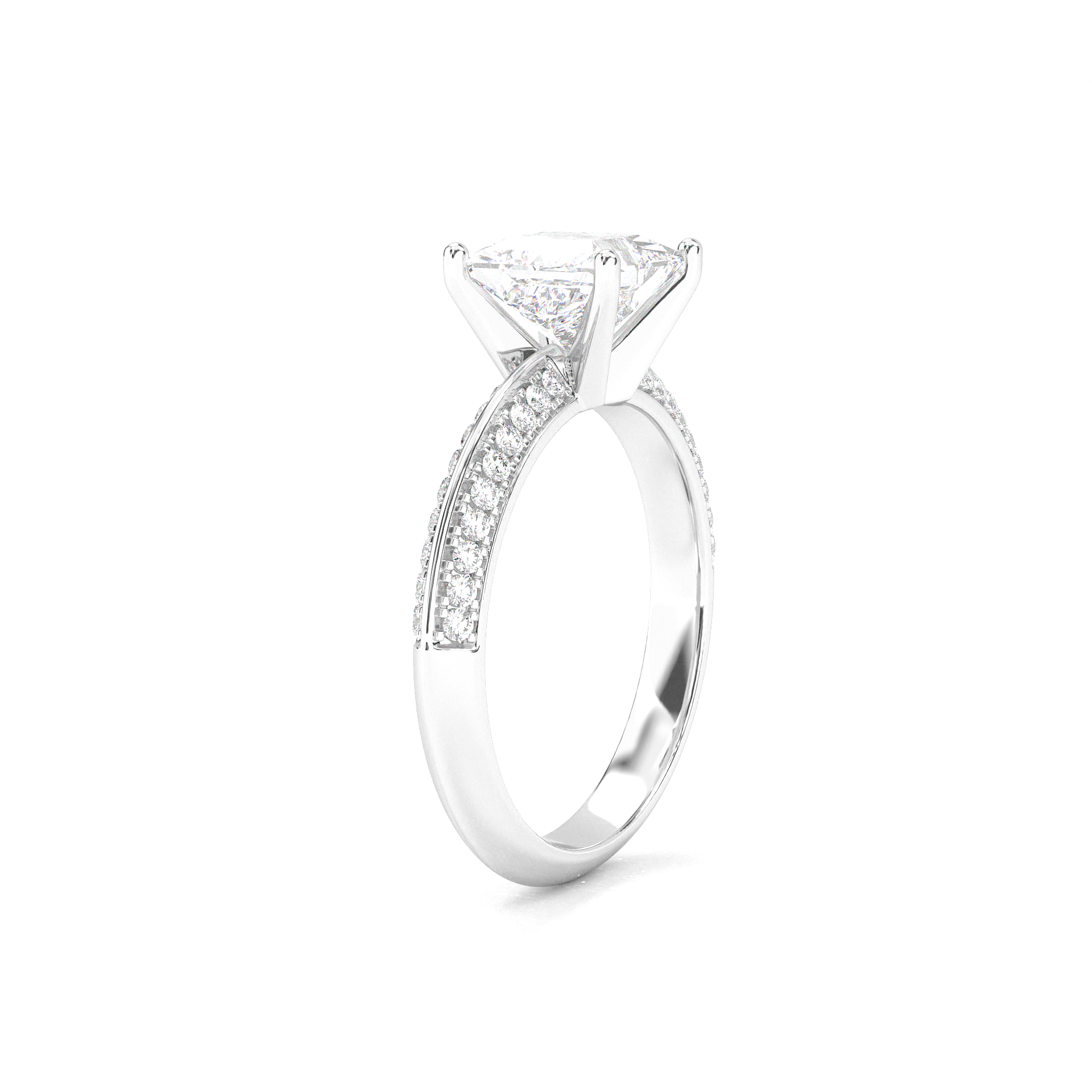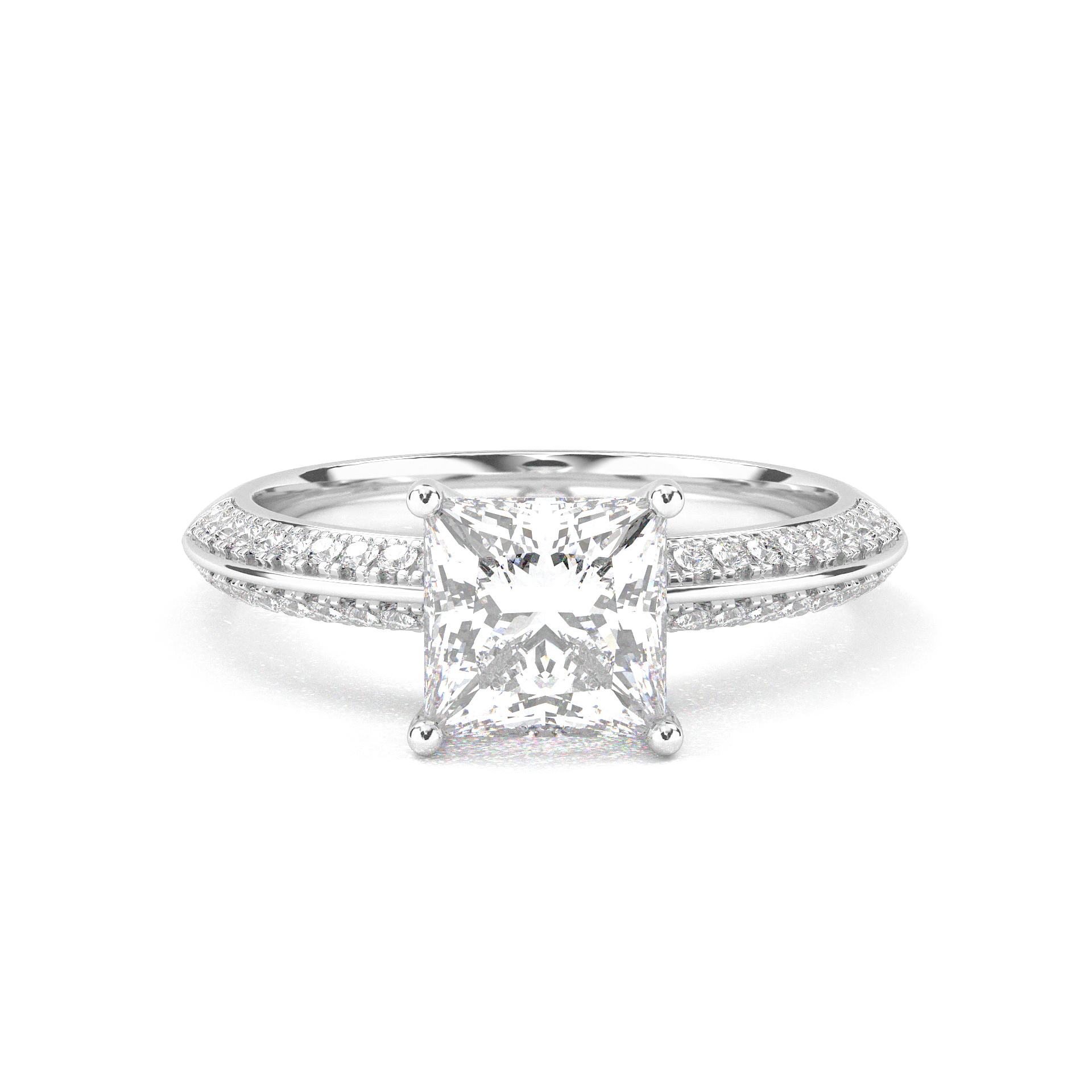 Double Row Pavé Engagement Ring - Princess Cut