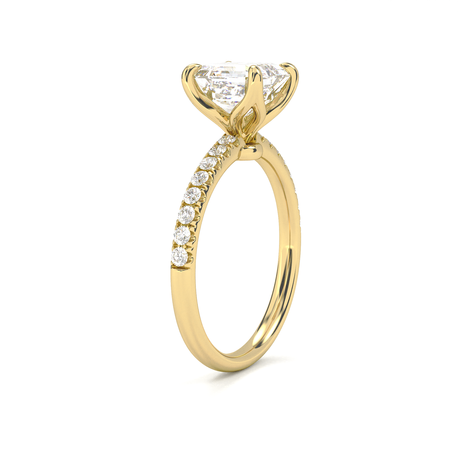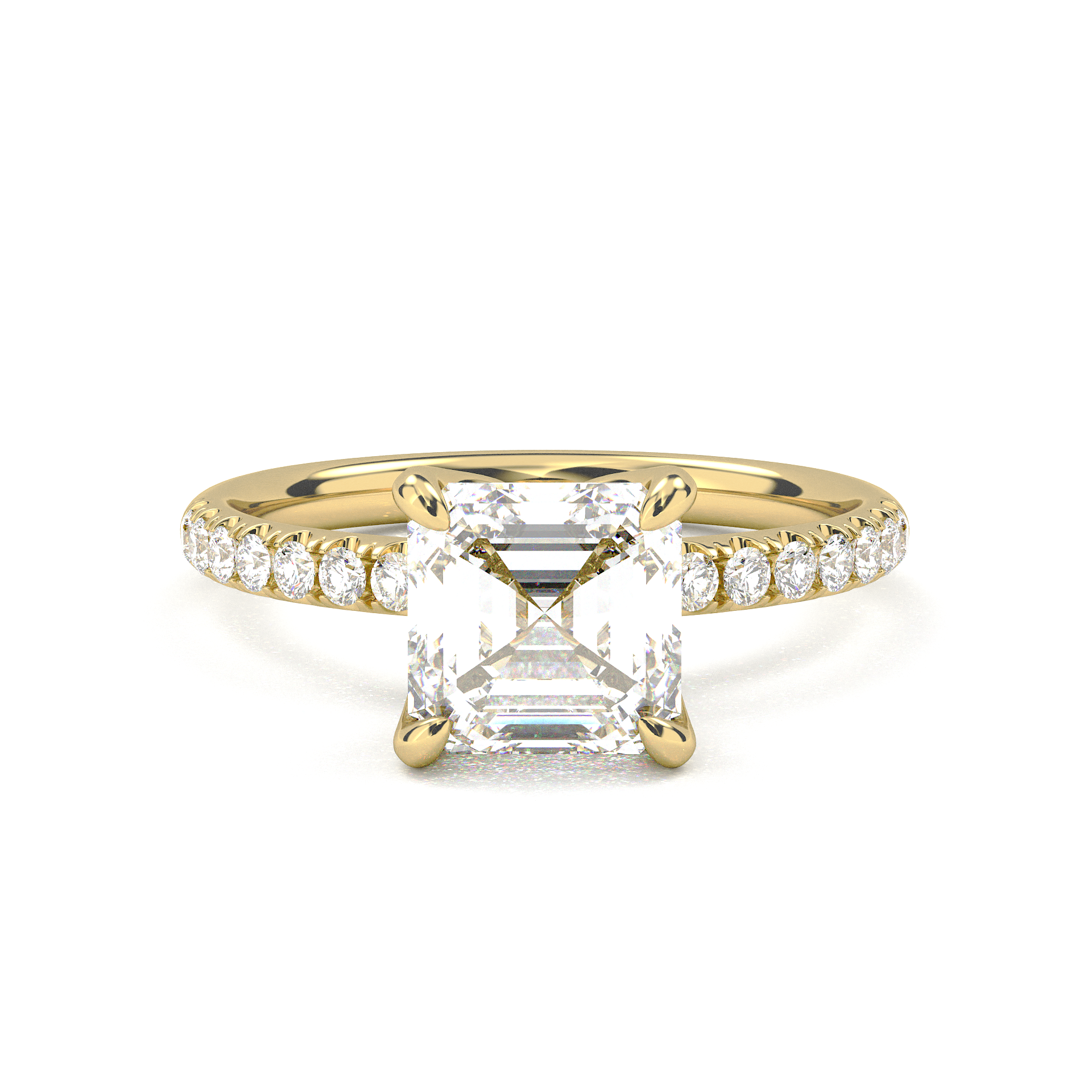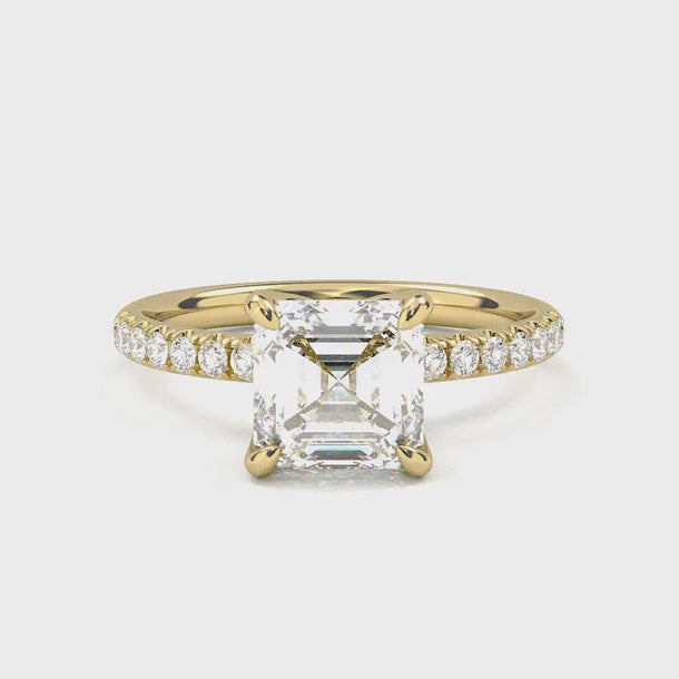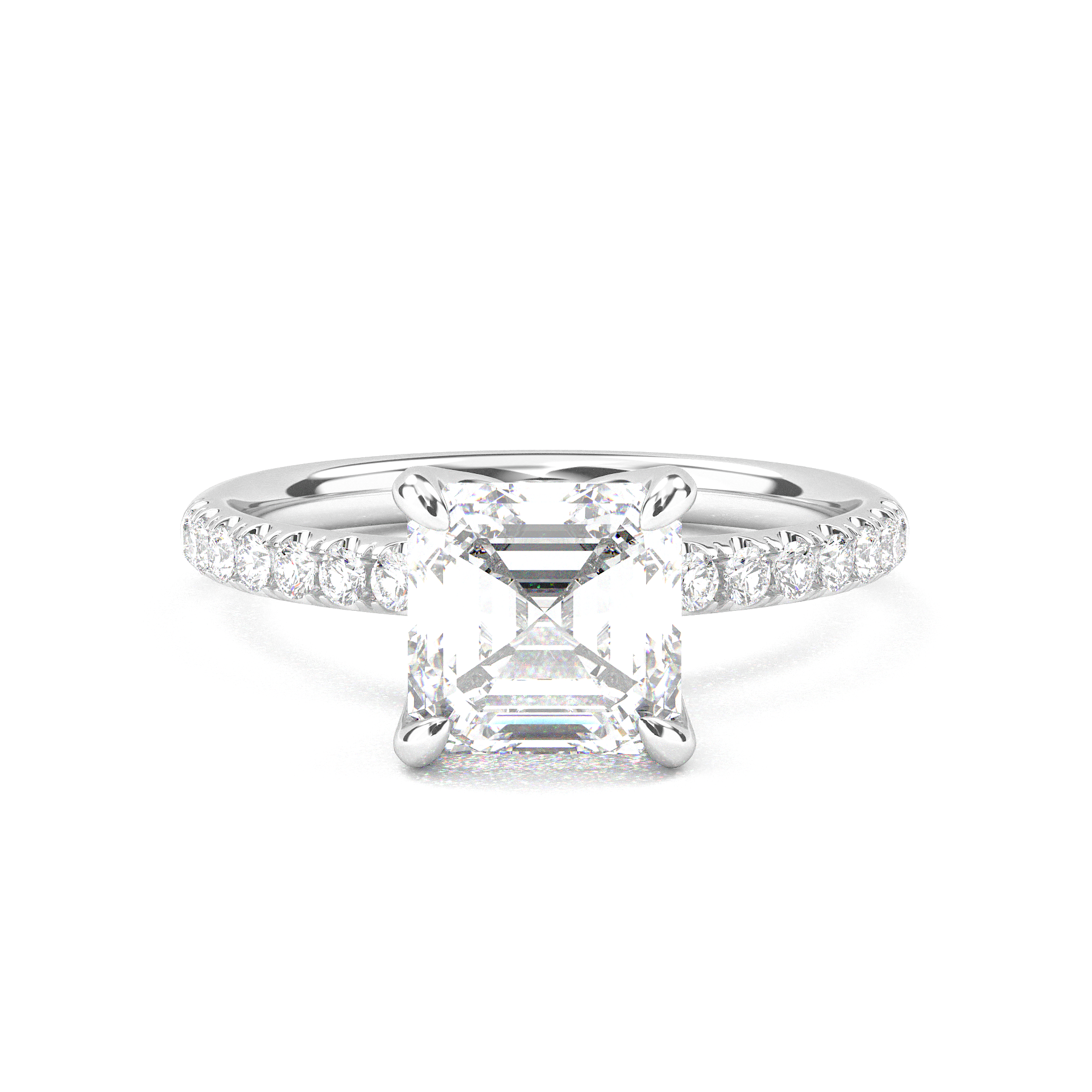 Prong Pavé Solitaire Asscher Cut Diamond Ring