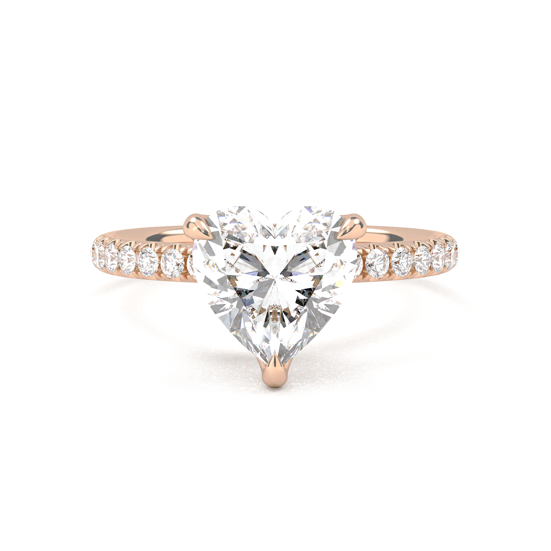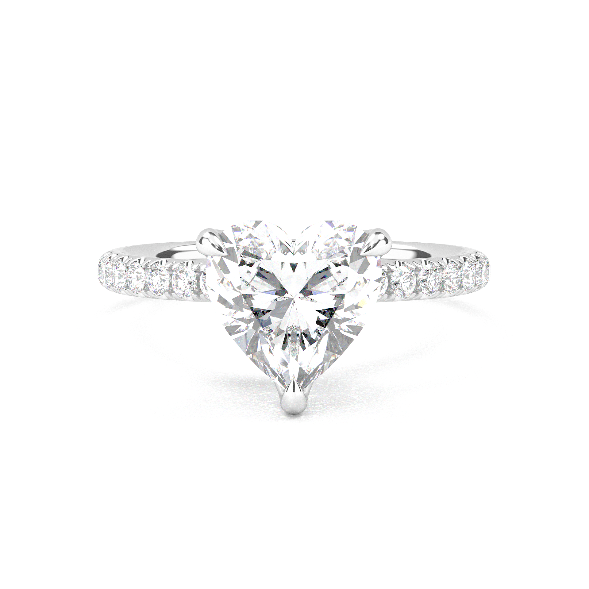 Prong Pavé Solitaire Heart Cut Diamond Ring
