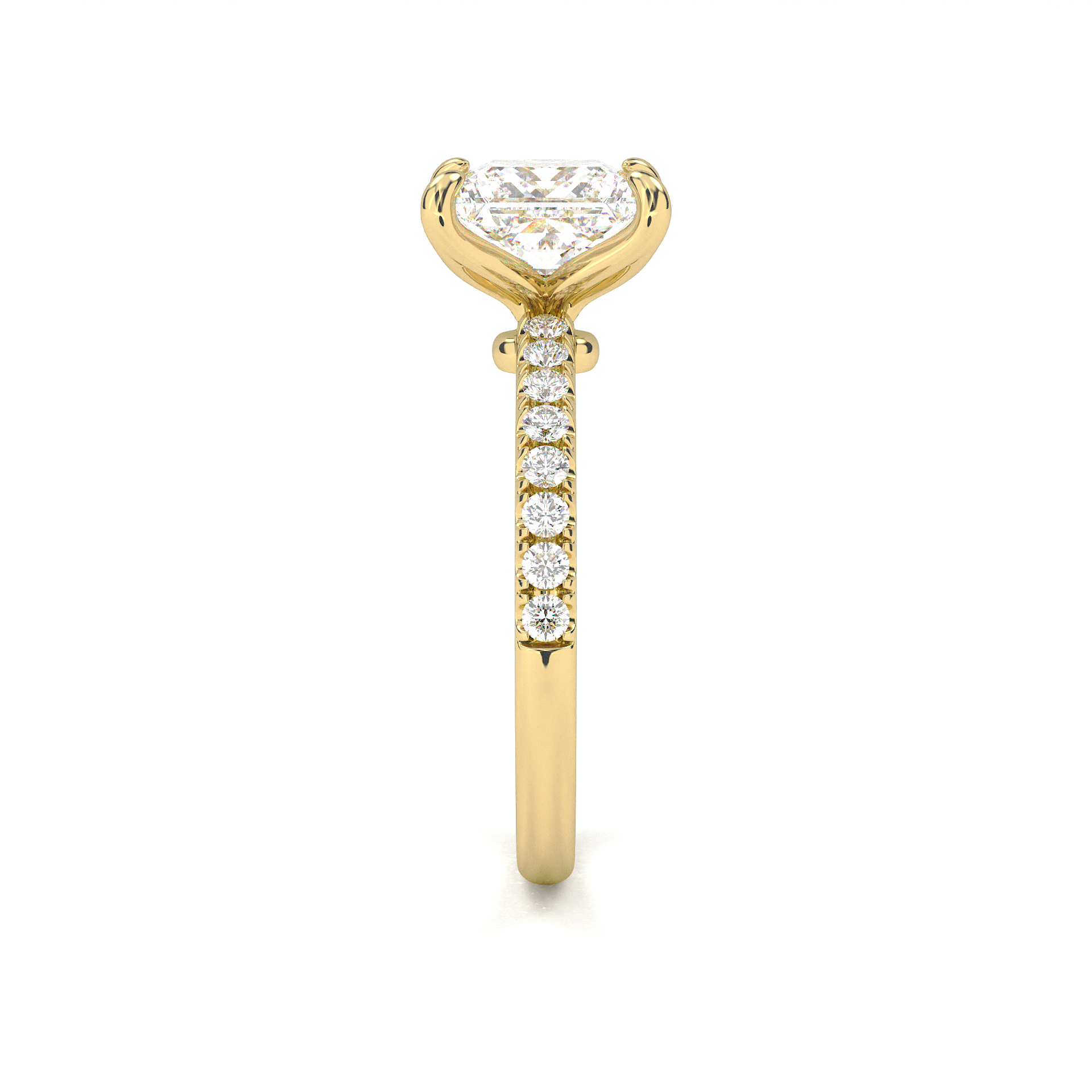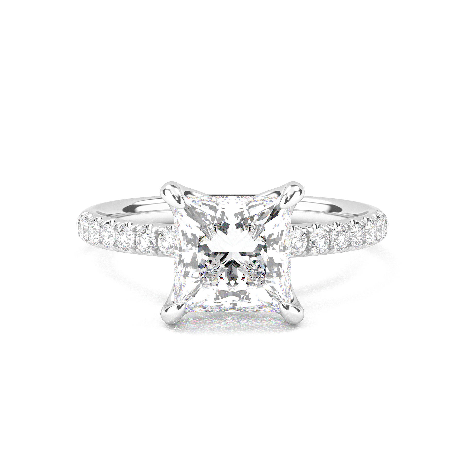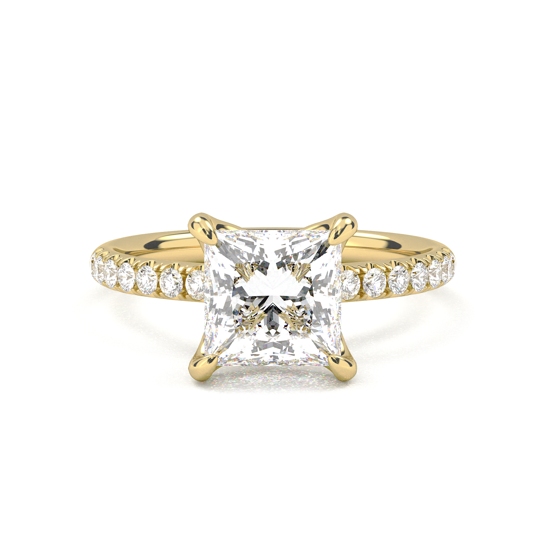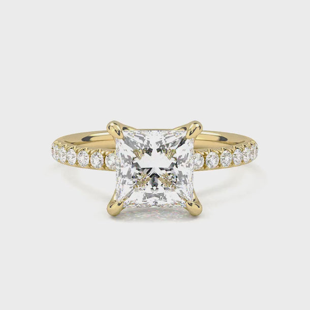 Prong Pavé Solitaire Princess Cut Diamond Ring