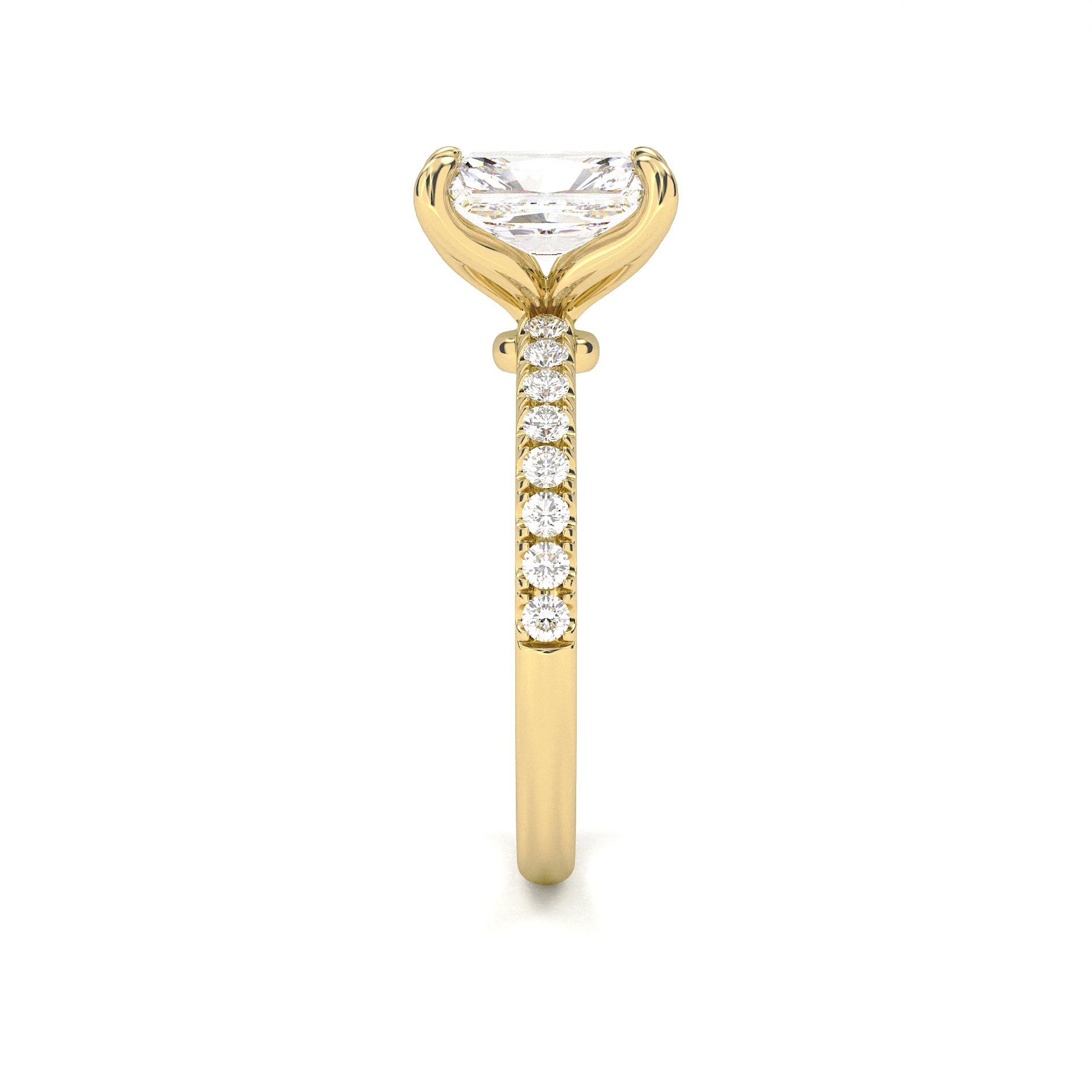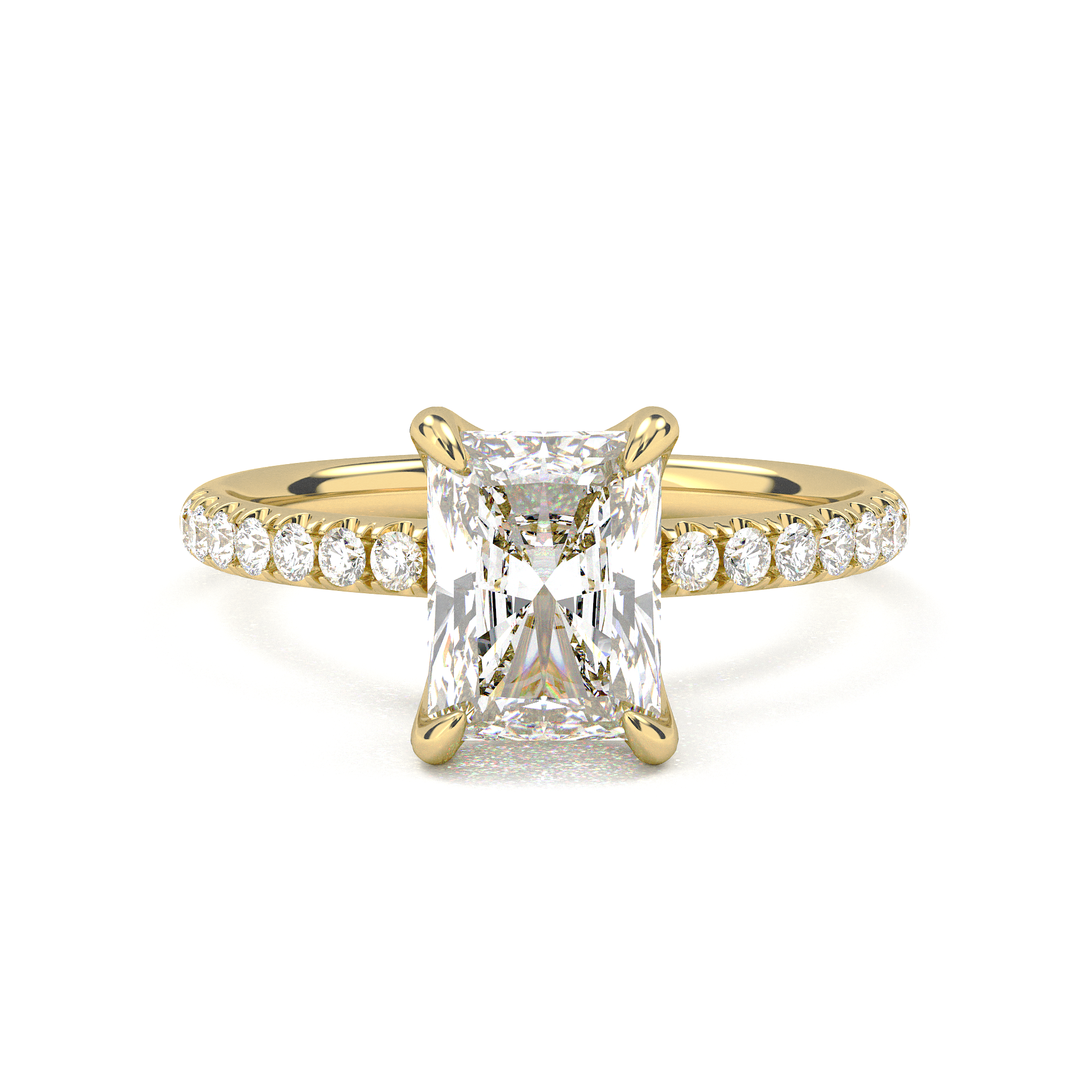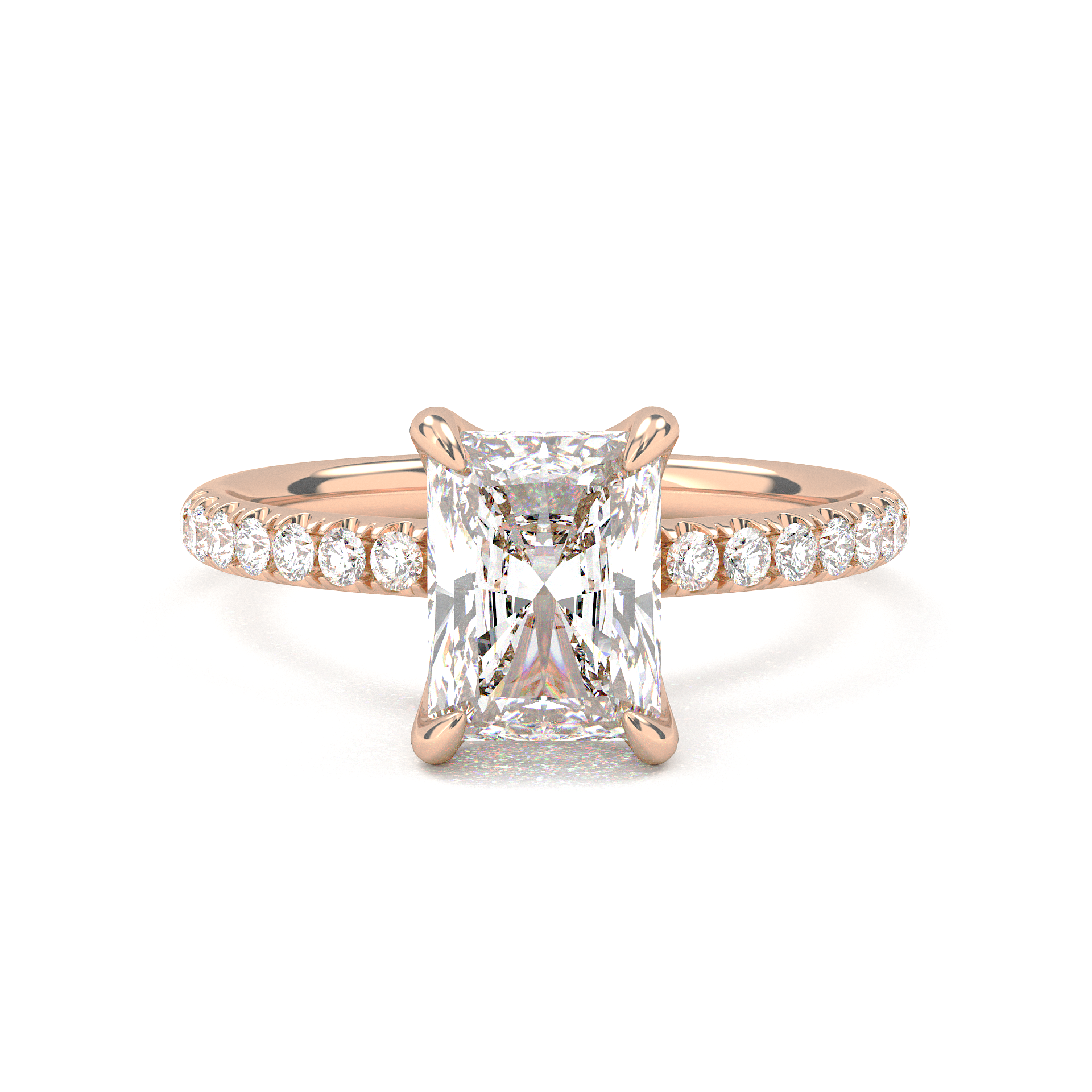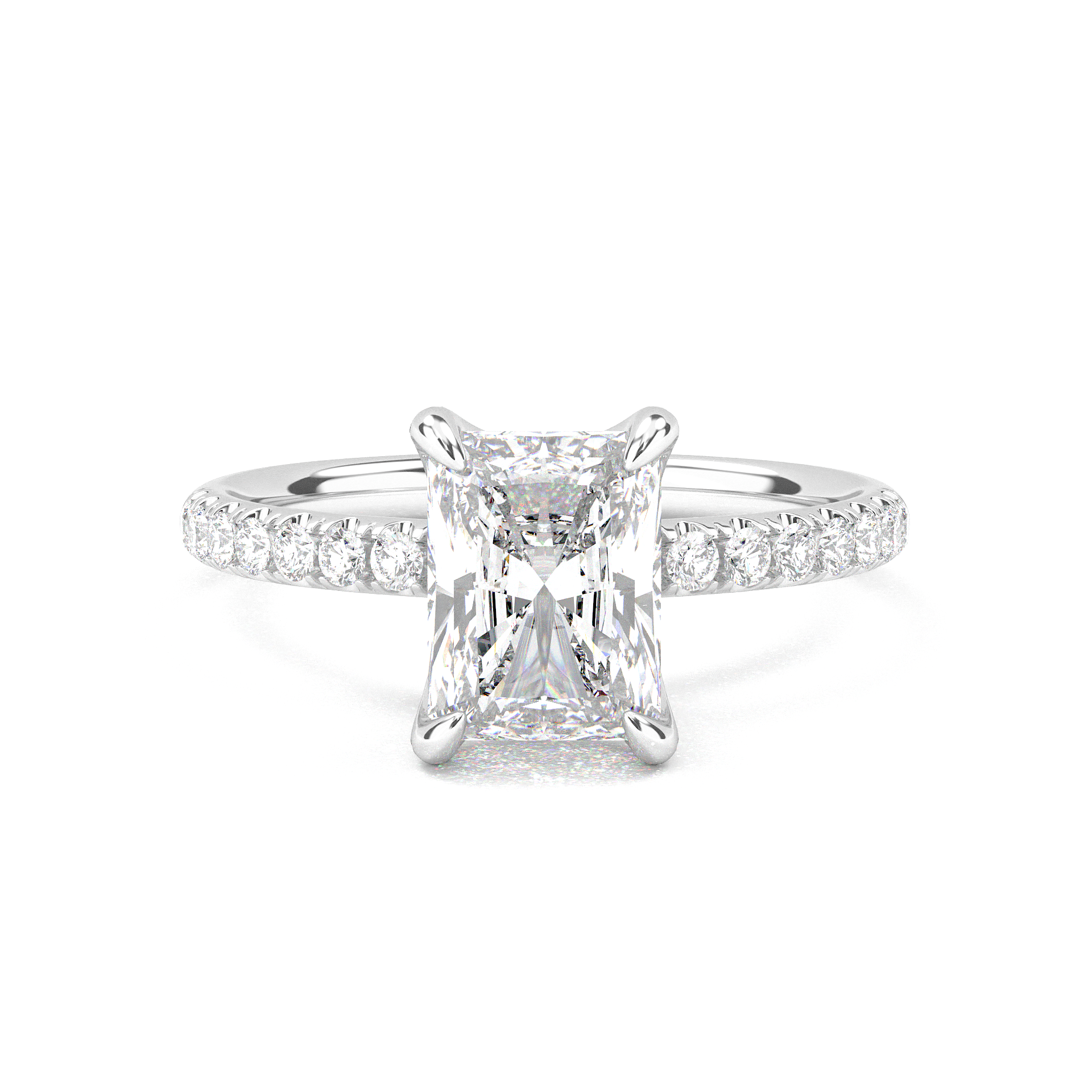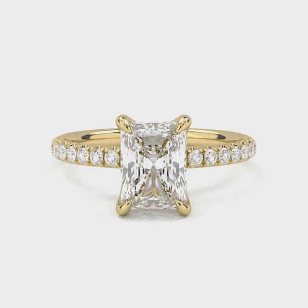 Prong Pavé Solitaire Radiant Cut Diamond Ring