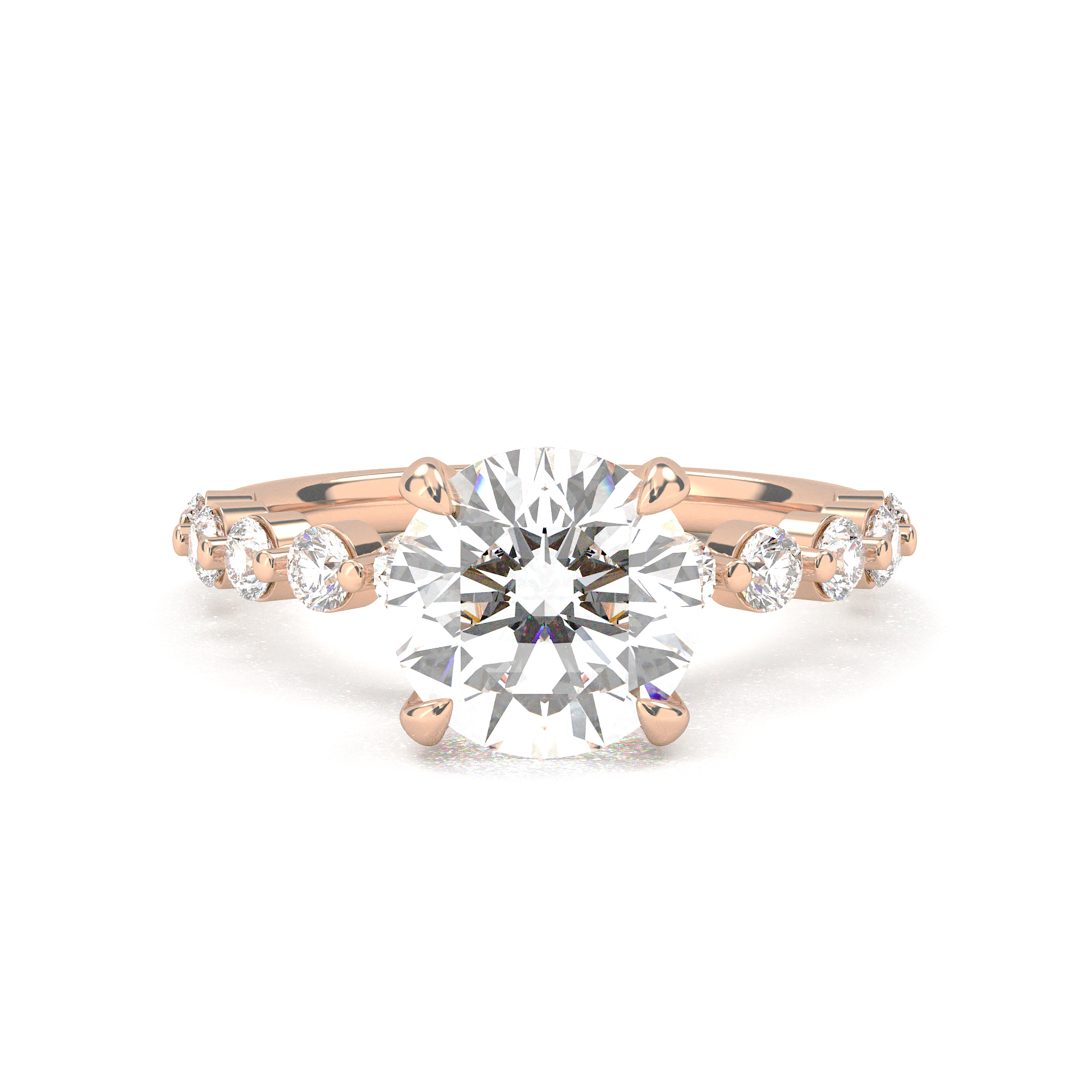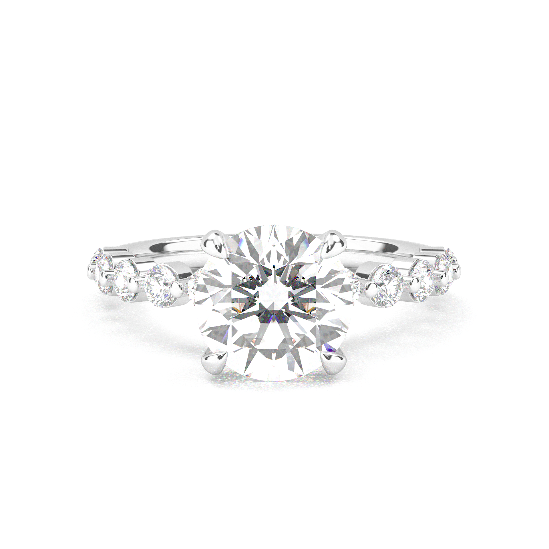 Round Cut With Round Side Stone Engagement Ring