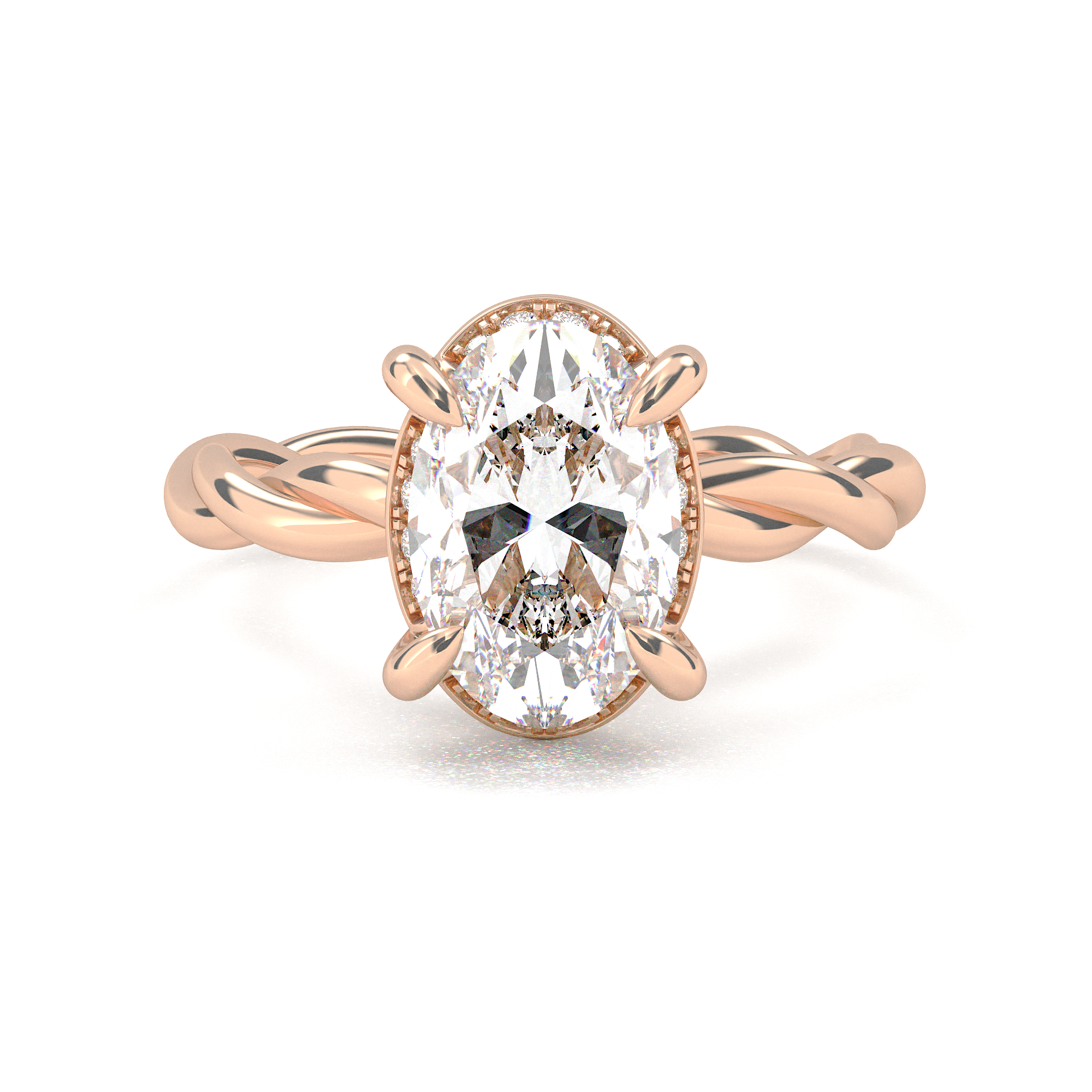Solitaire Floral Twisted Engagement Ring - Oval Cut