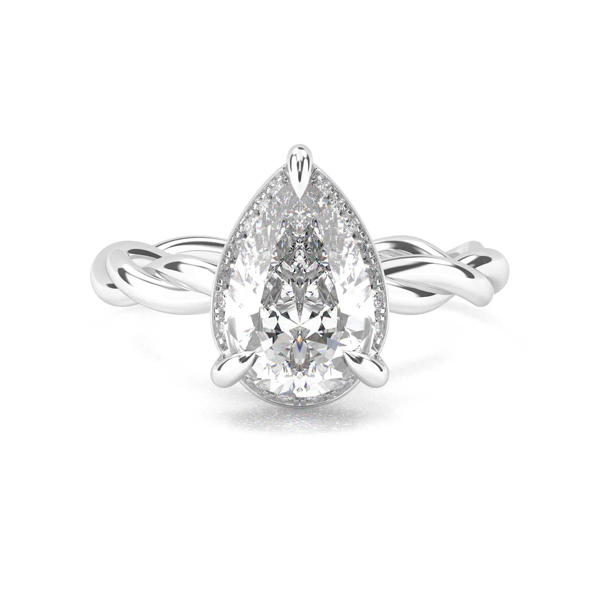 Solitaire Floral Twisted Engagement Ring - Pear Cut