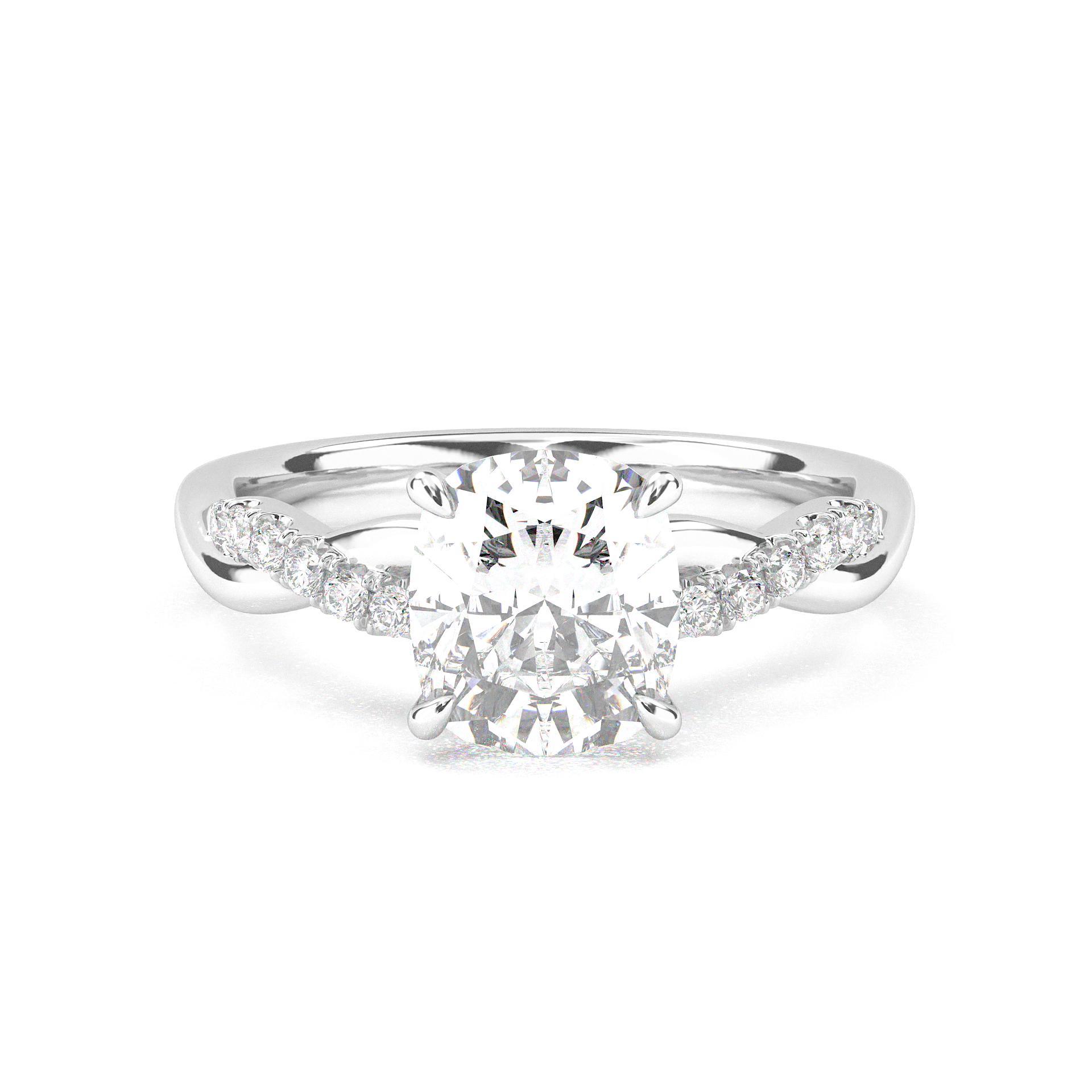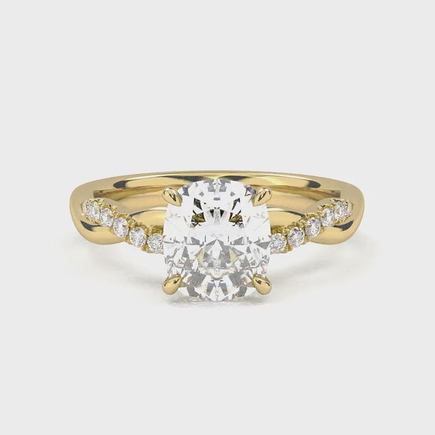 Twisted Side Stone Solitaire Cushion Cut Diamond Ring