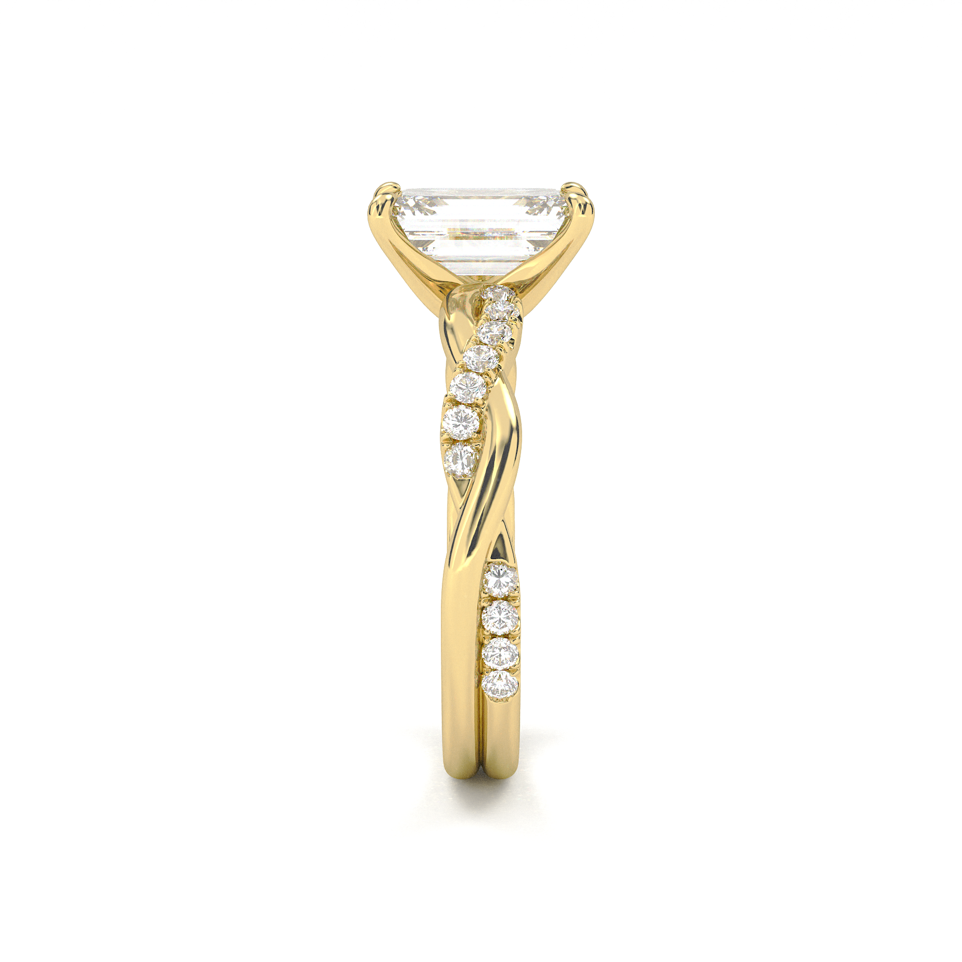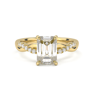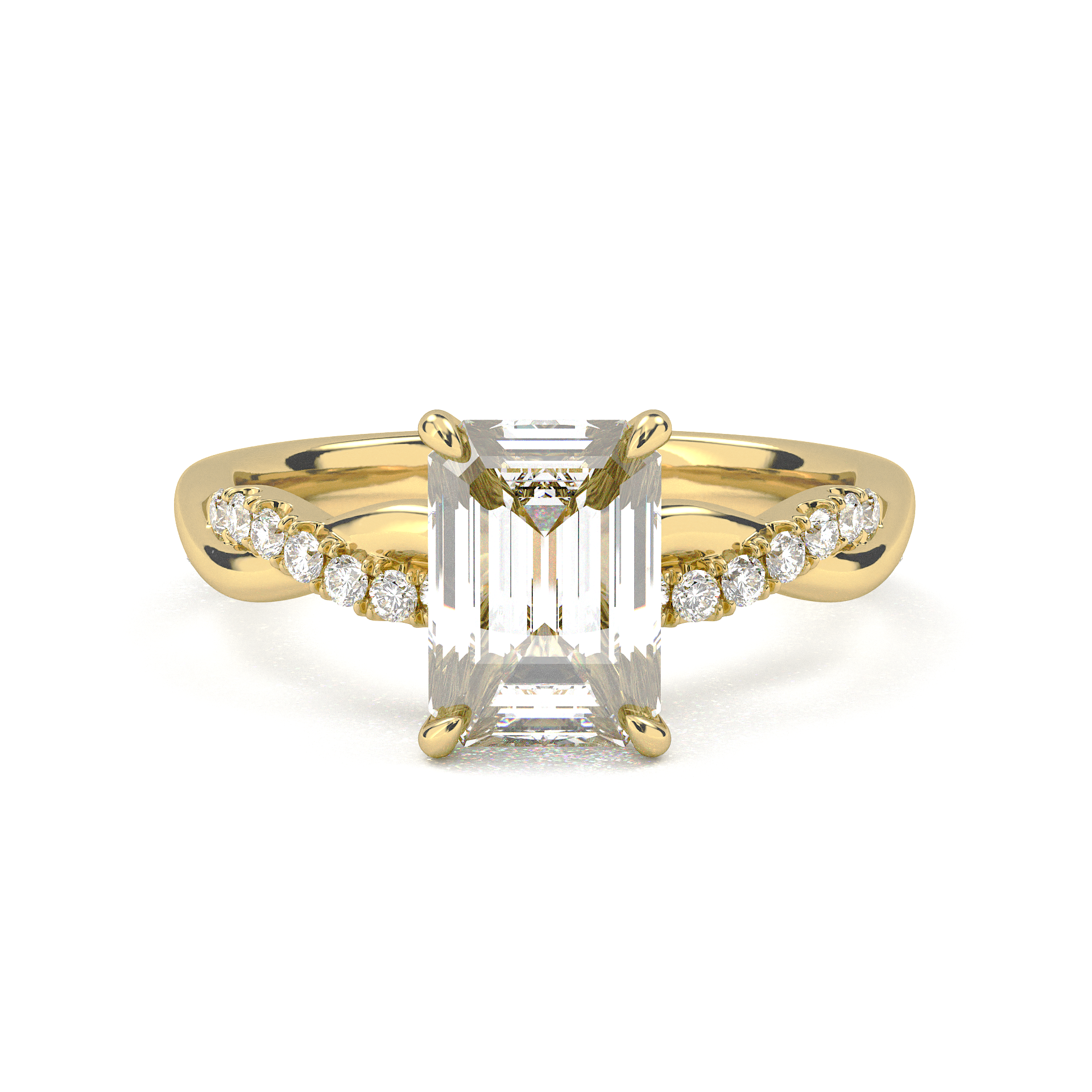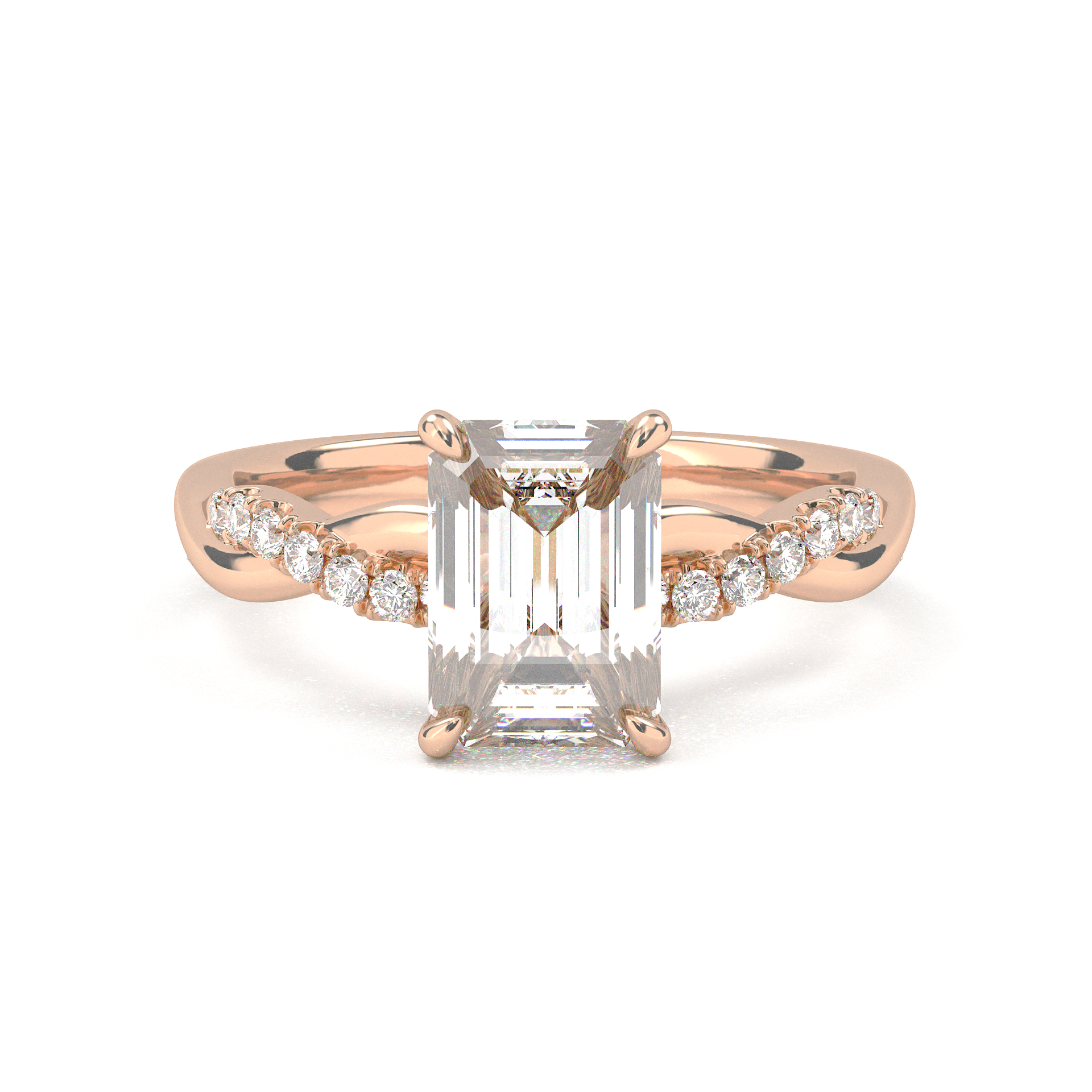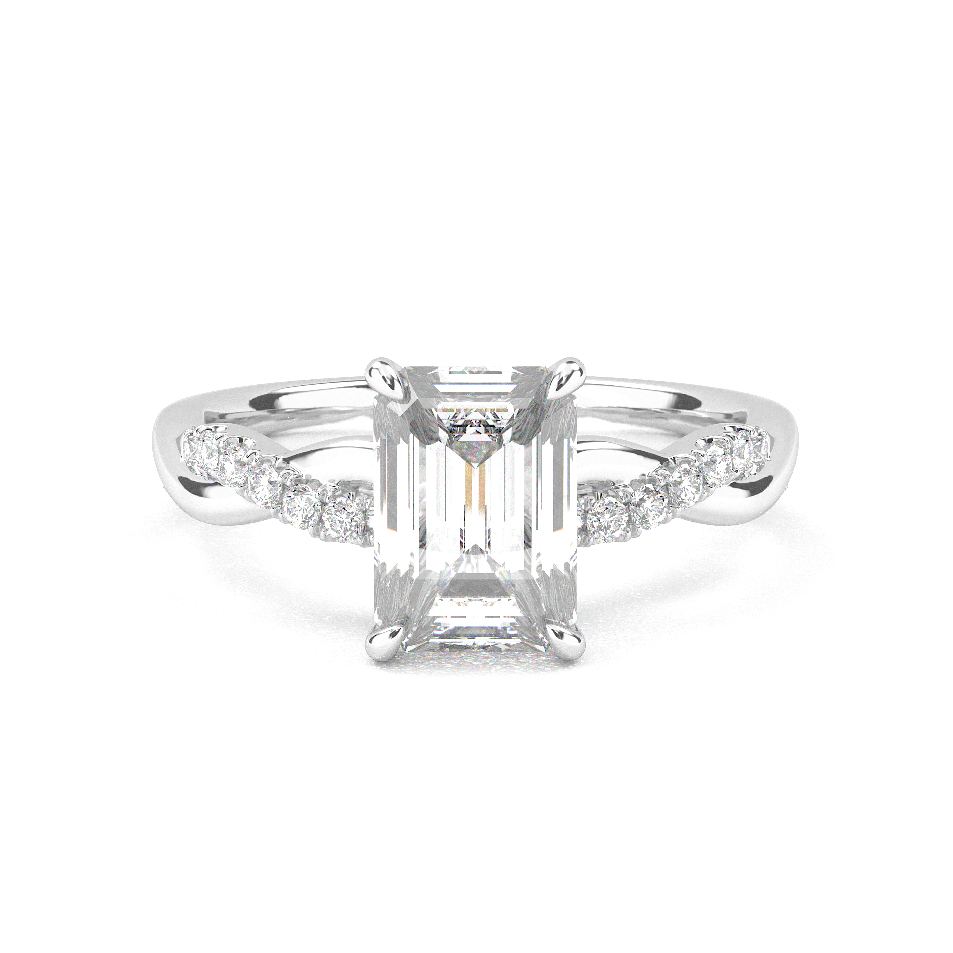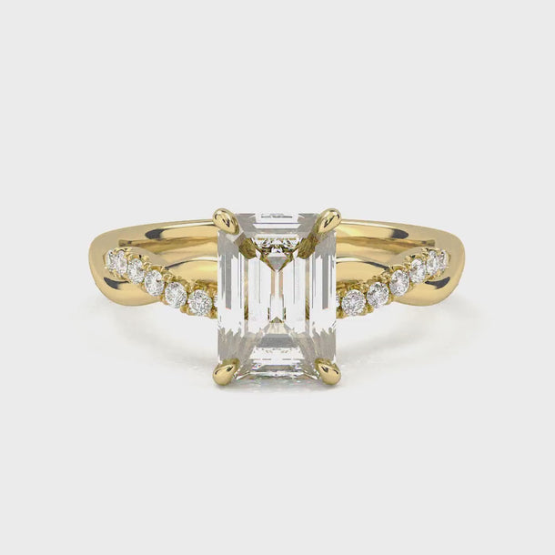 Twisted Side Stone Solitaire Emerald Cut Diamond Ring