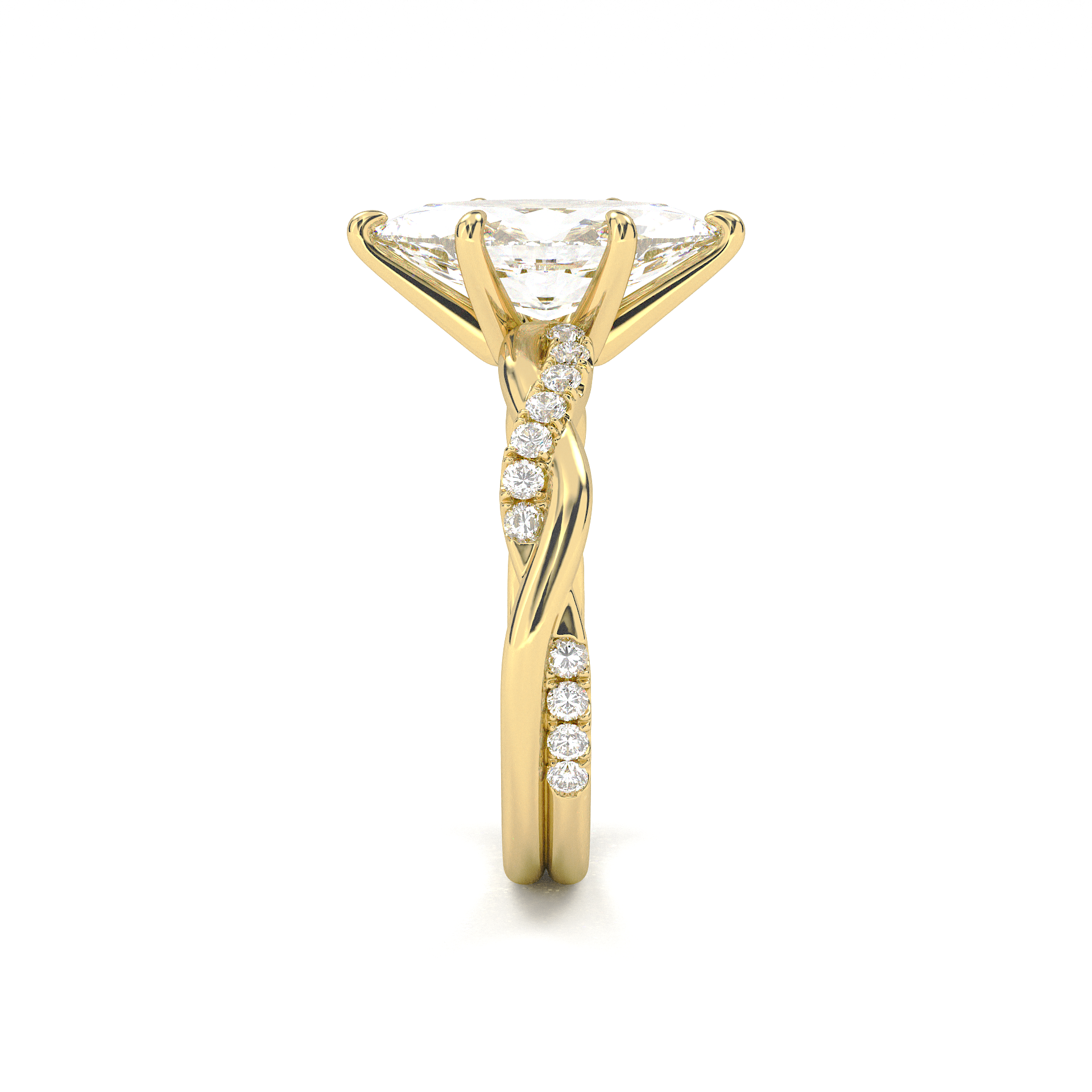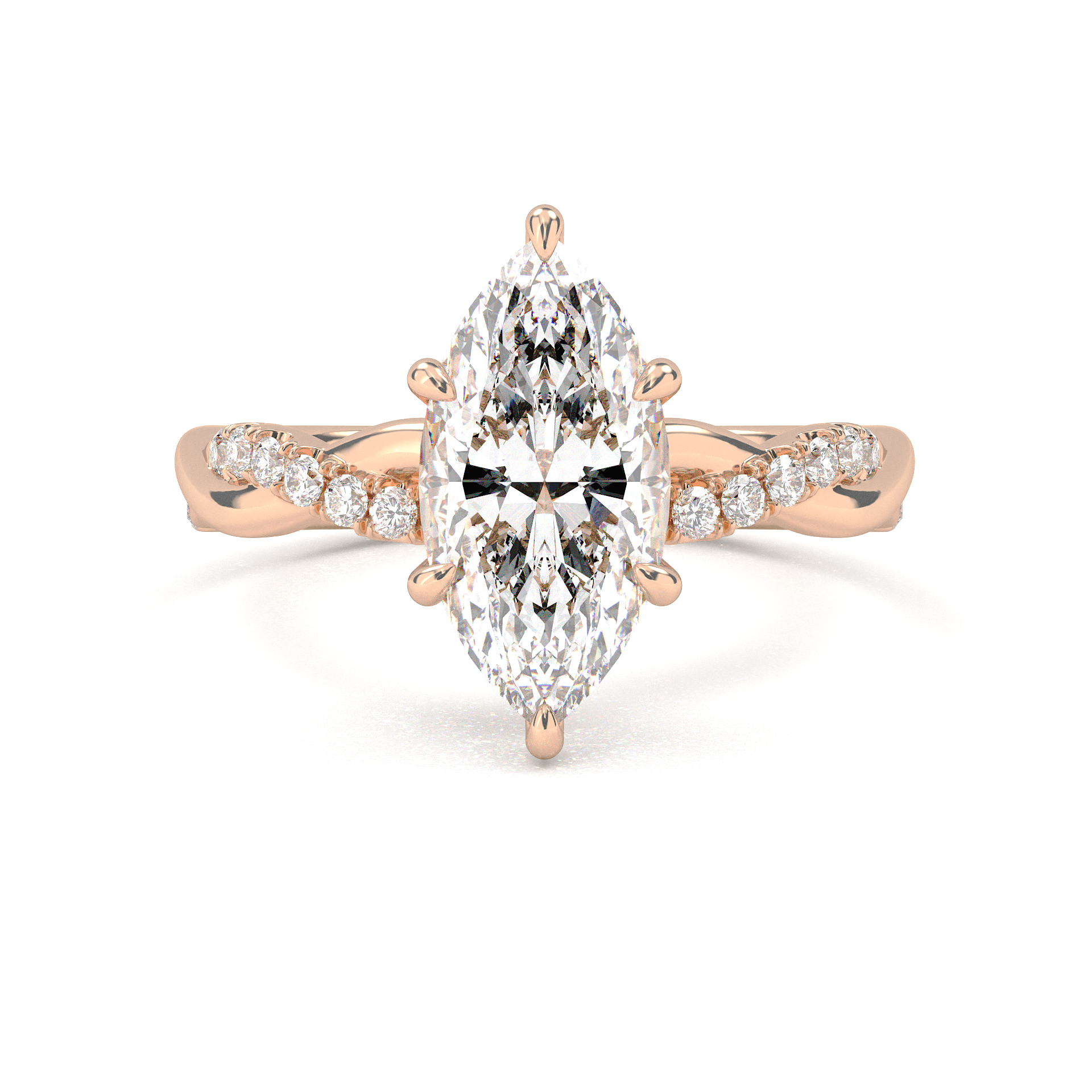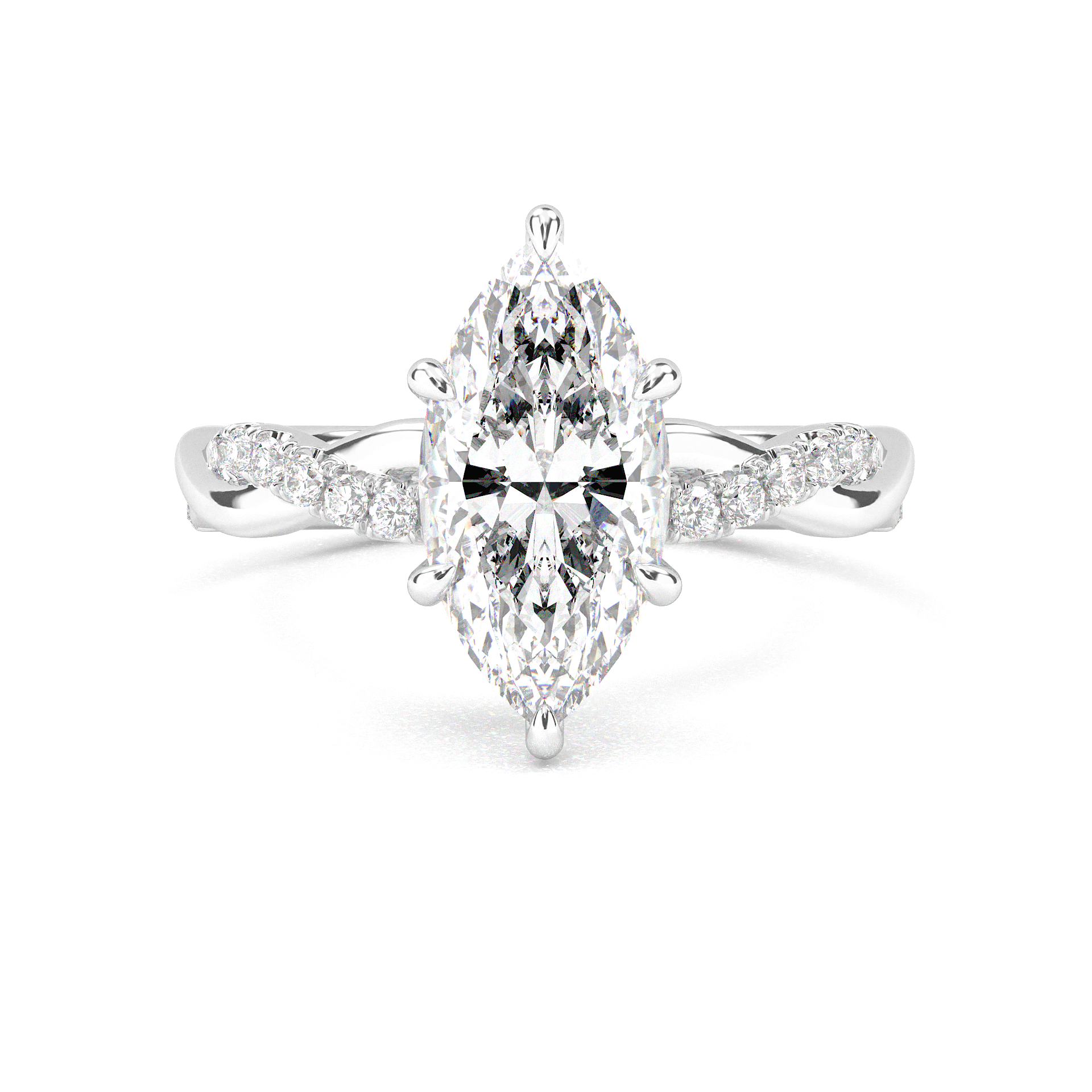Twisted Side Stone Solitaire Marquise Cut Diamond Ring