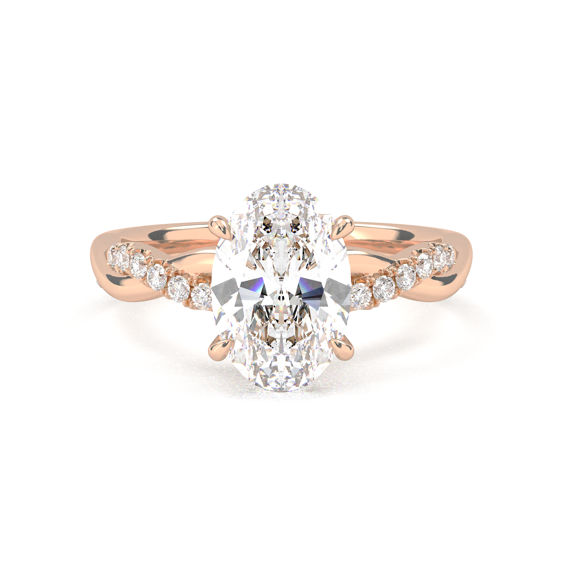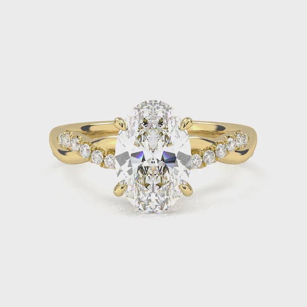 Twisted Side Stone Solitaire Oval Cut Diamond Ring