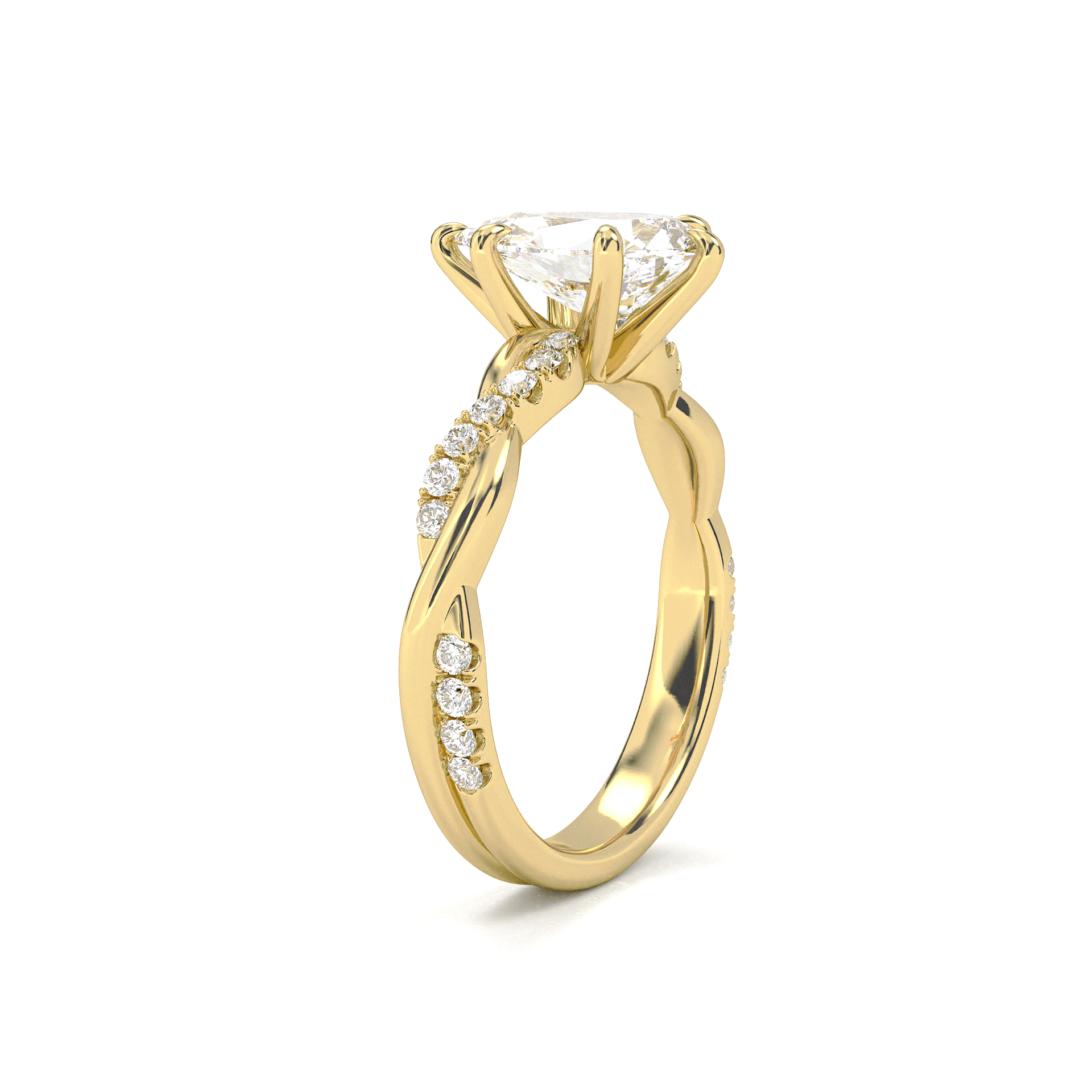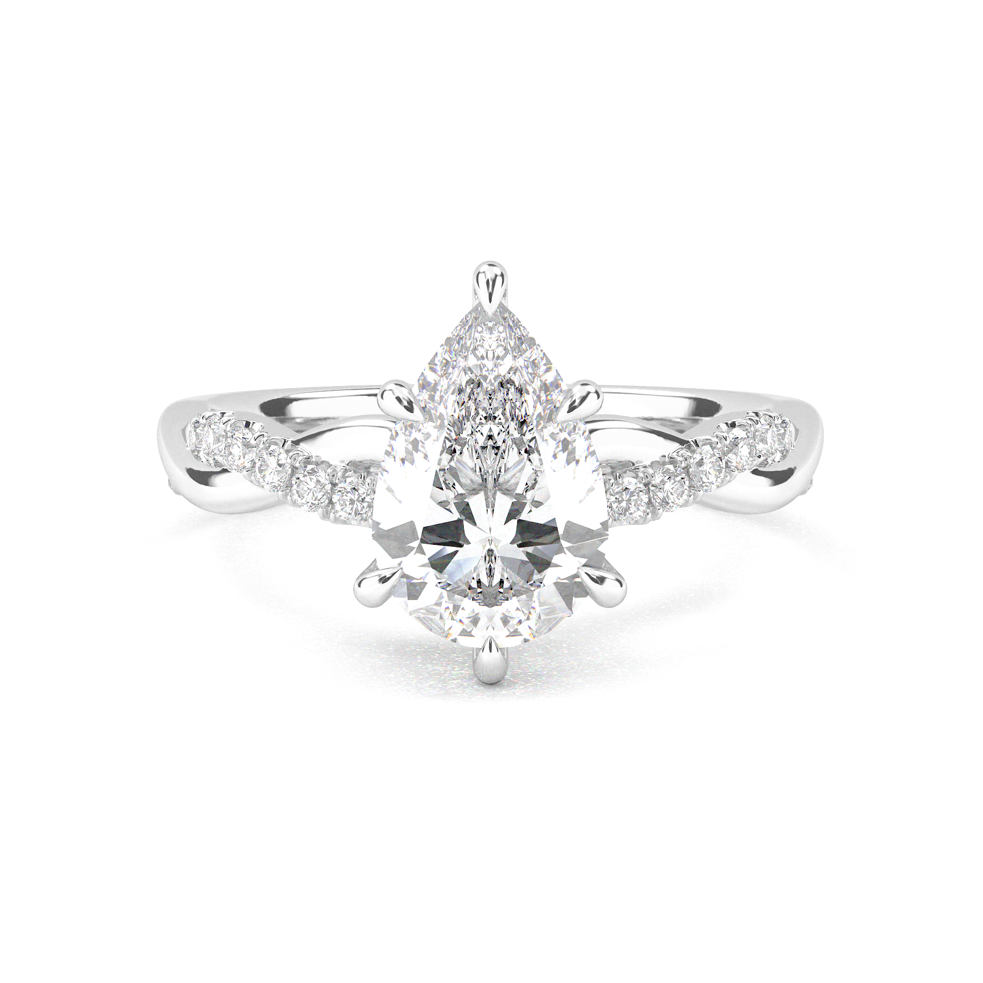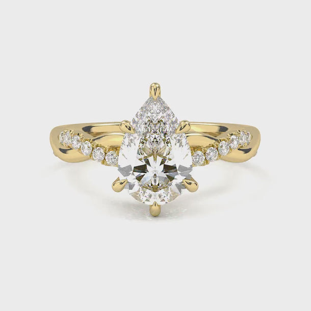 Twisted Side Stone Solitaire Pear Cut Diamond Ring