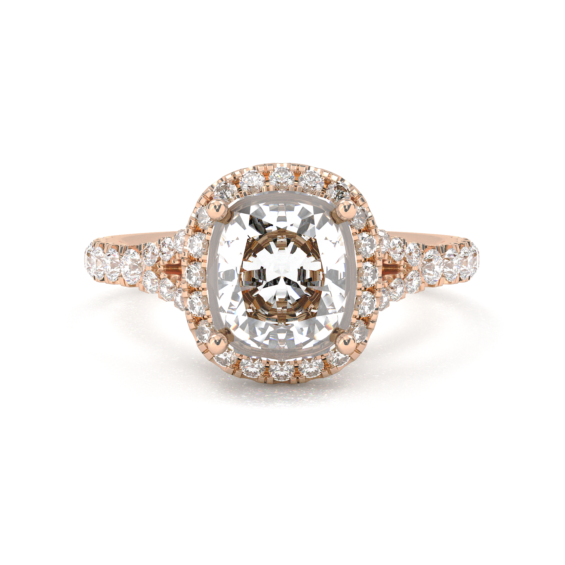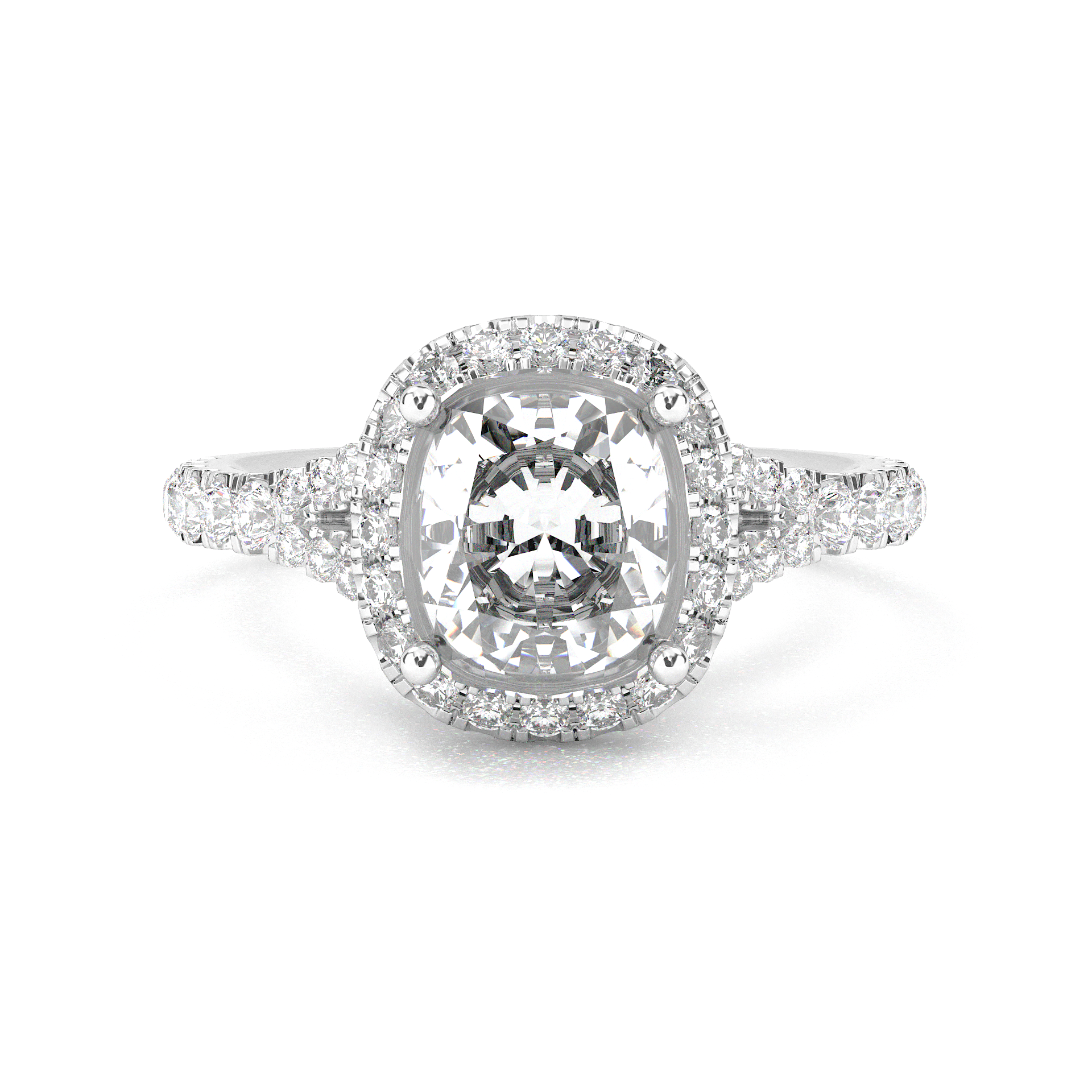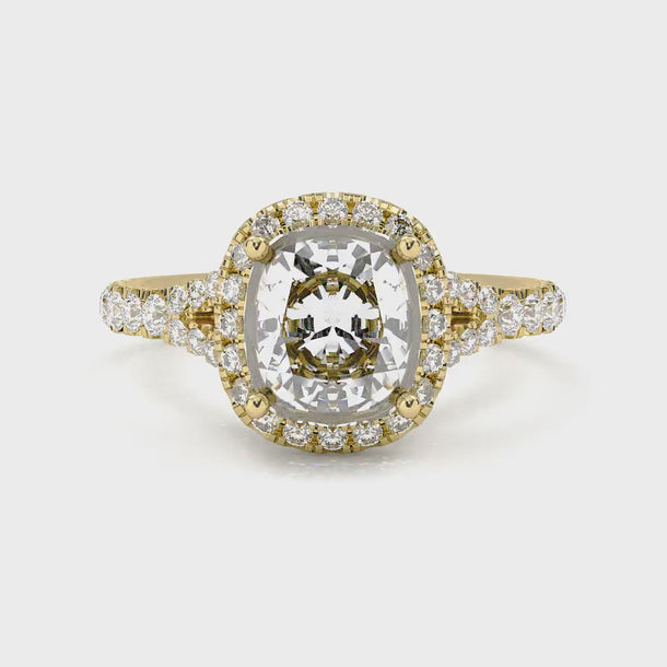 Vintage Halo Pavé Cushion Cut Diamond Ring