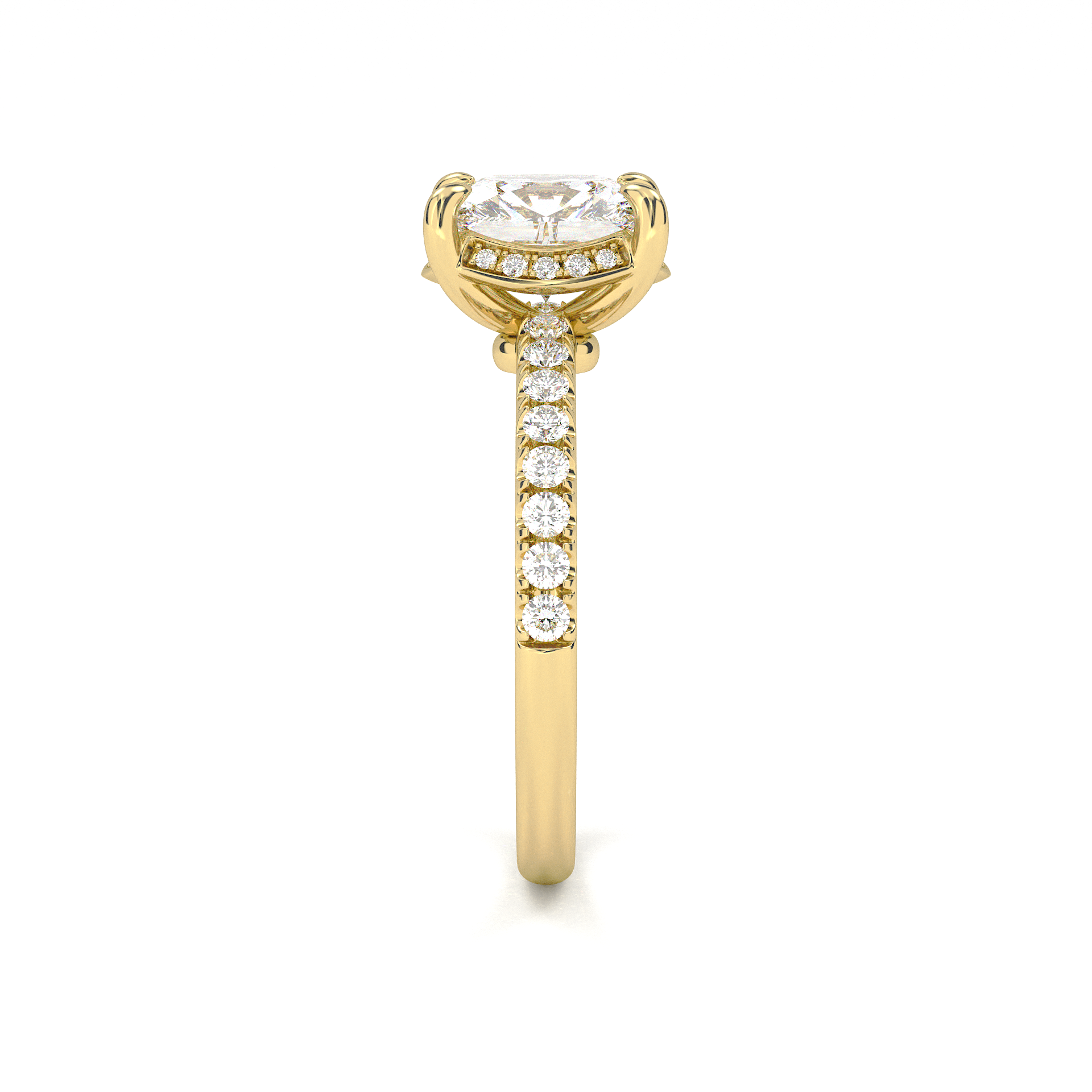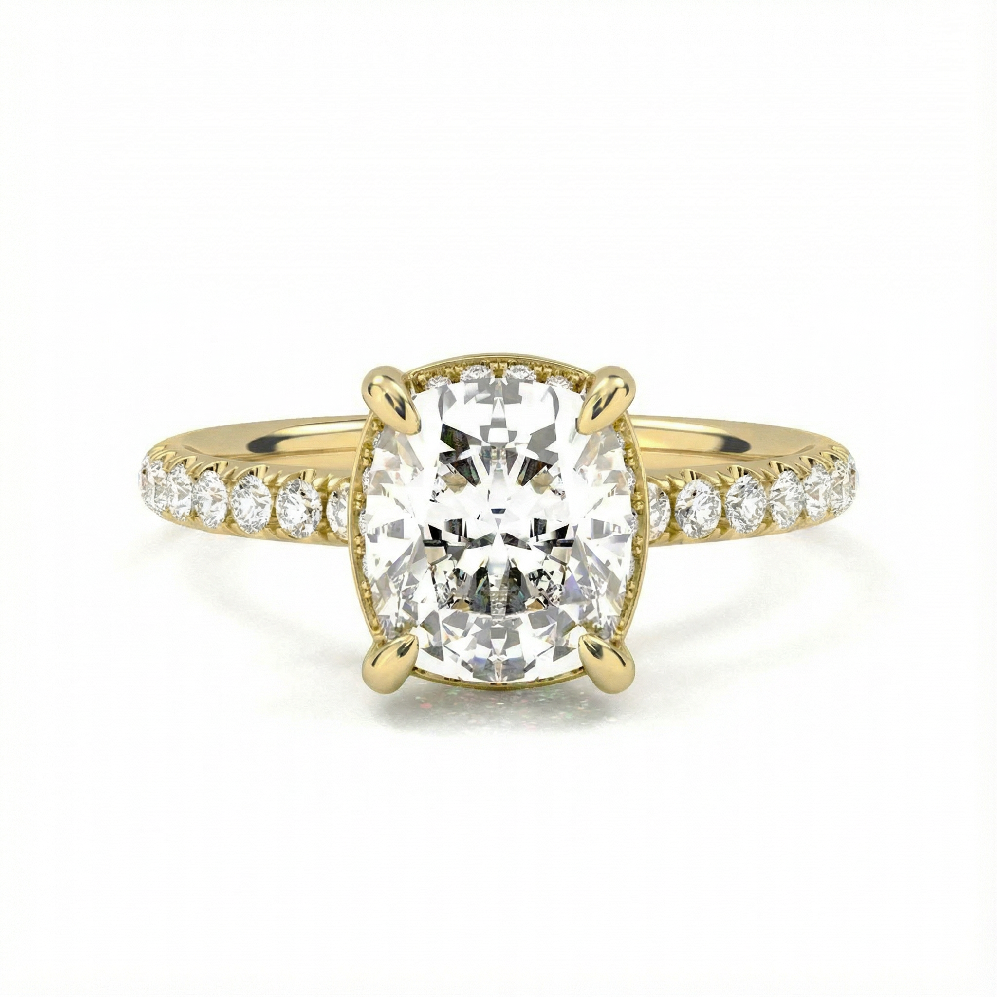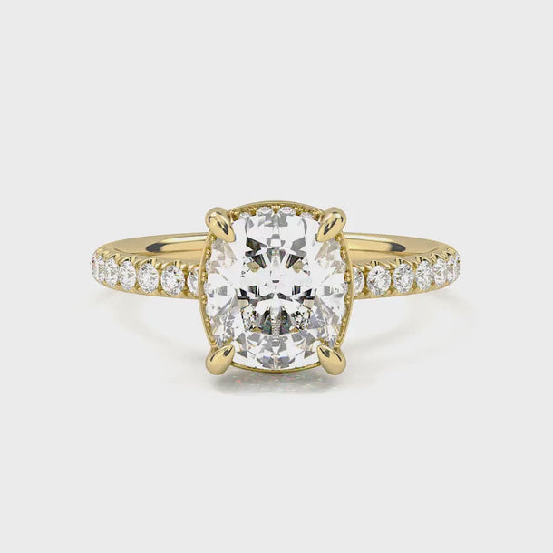 Vintage Pavé Hidden Halo Cushion Cut Diamond Ring