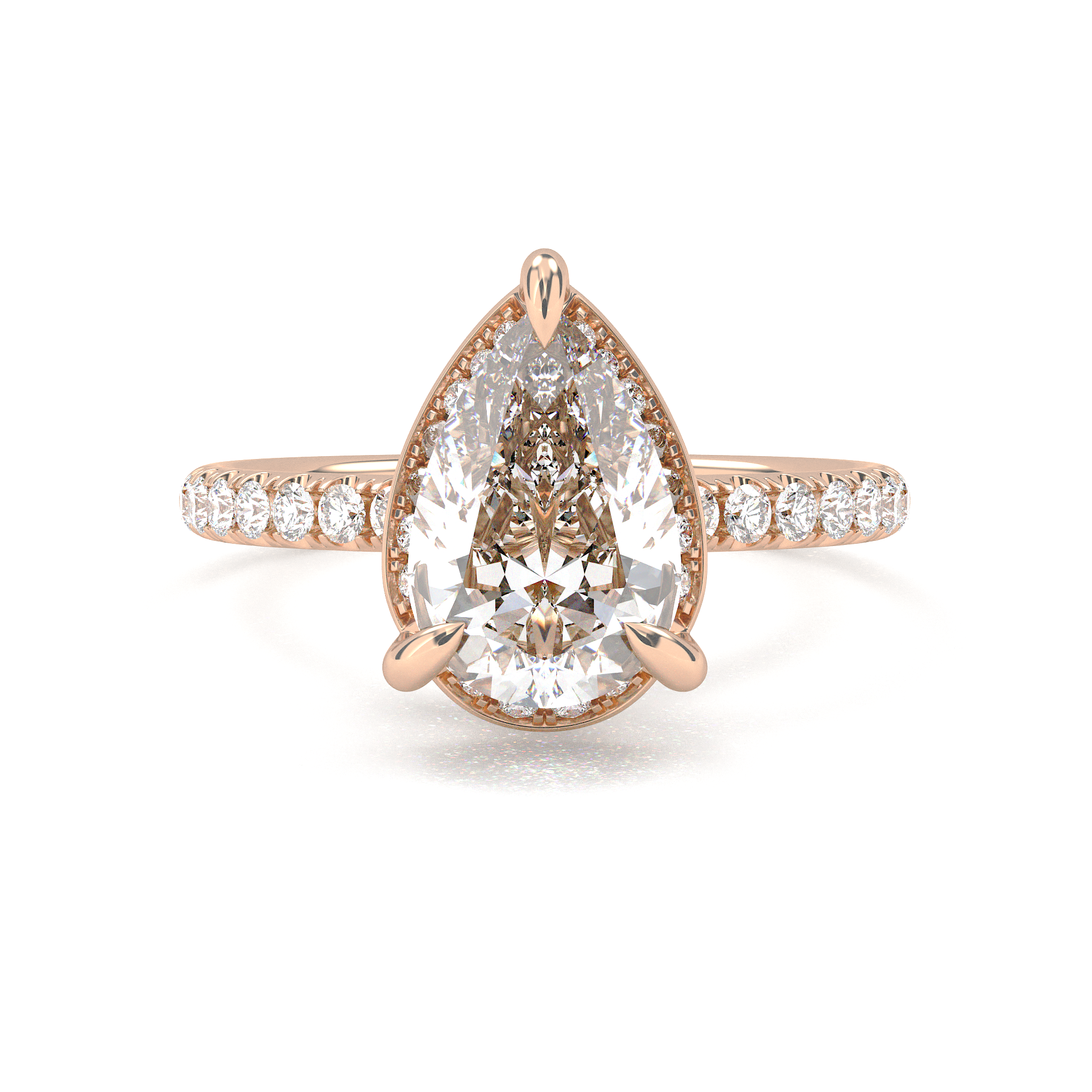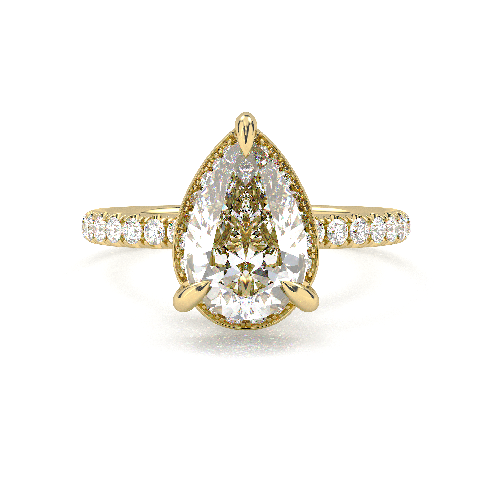 Vintage Pavé Hidden Halo Pear Cut Diamond Ring