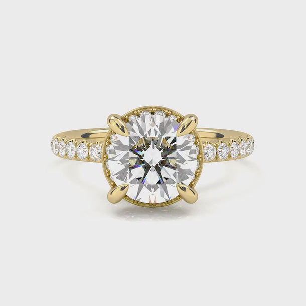 Vintage Pavé Hidden Halo Round Cut Diamond Ring