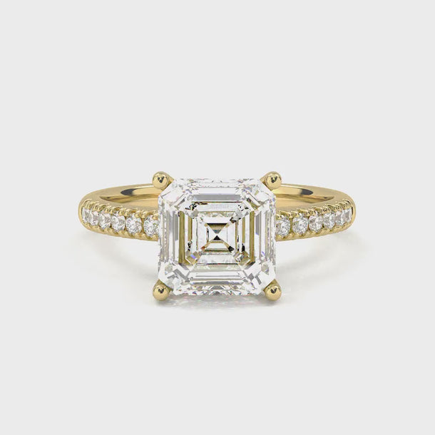Vintage Pavé Hidden Halo Asscher Cut Diamond Ring