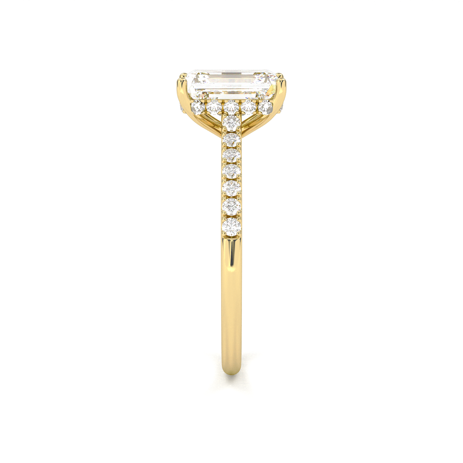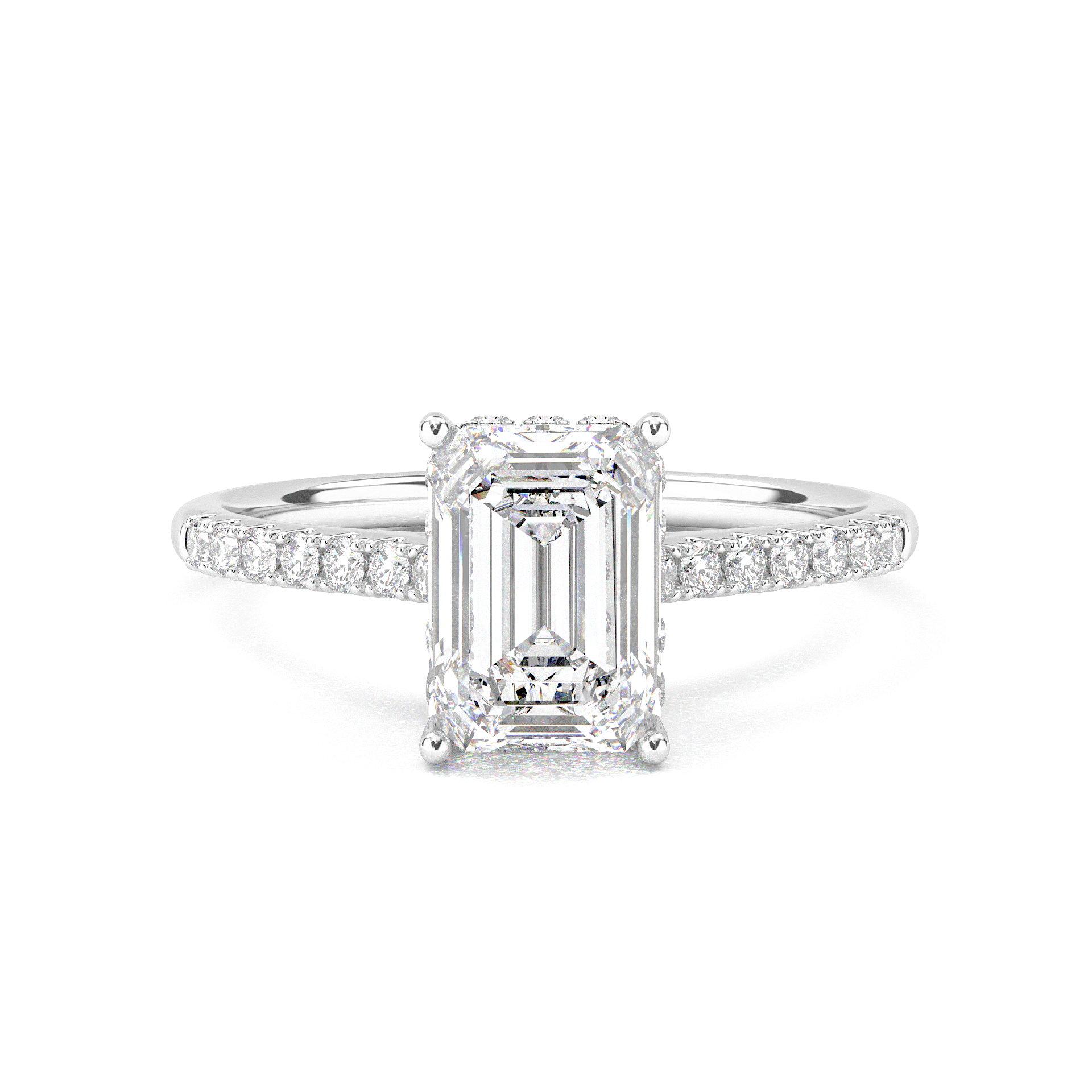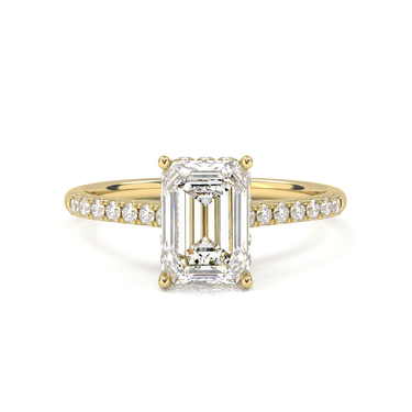 Vintage Pavé Hidden Halo Emerald Cut Diamond Ring