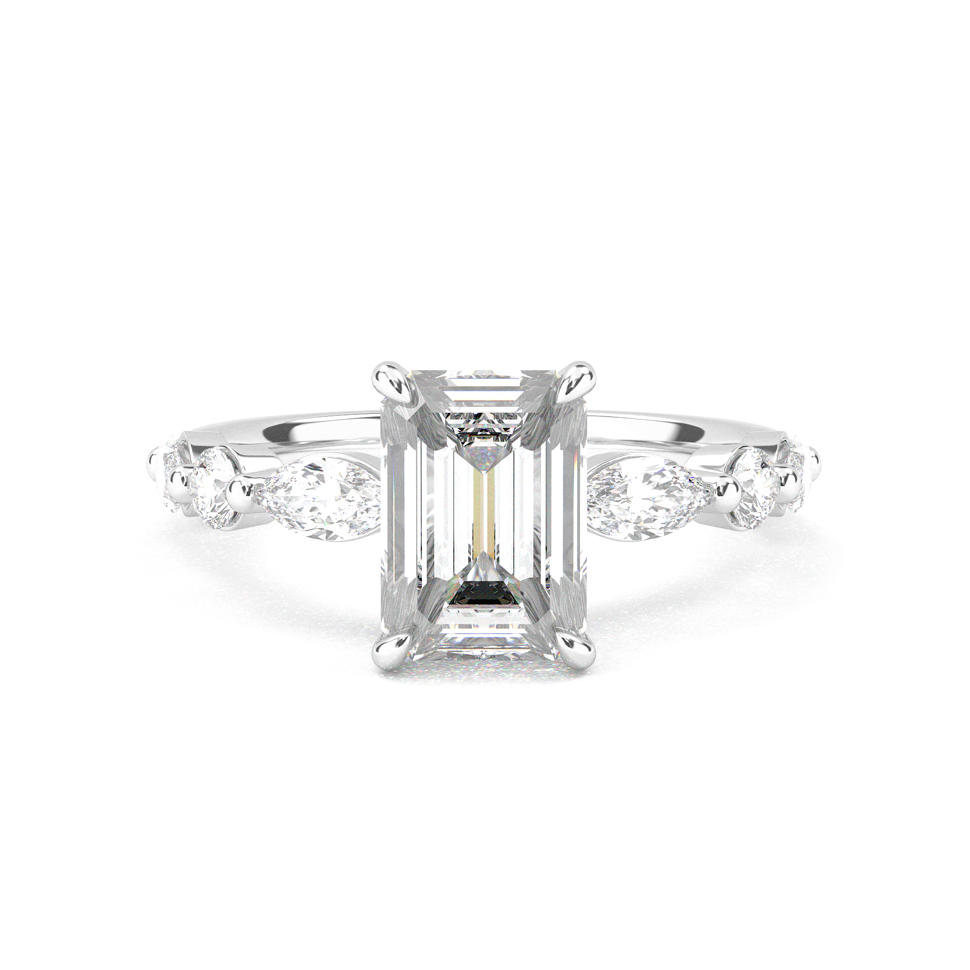 Emerald Cut with Marquise Side Stone Diamond Ring