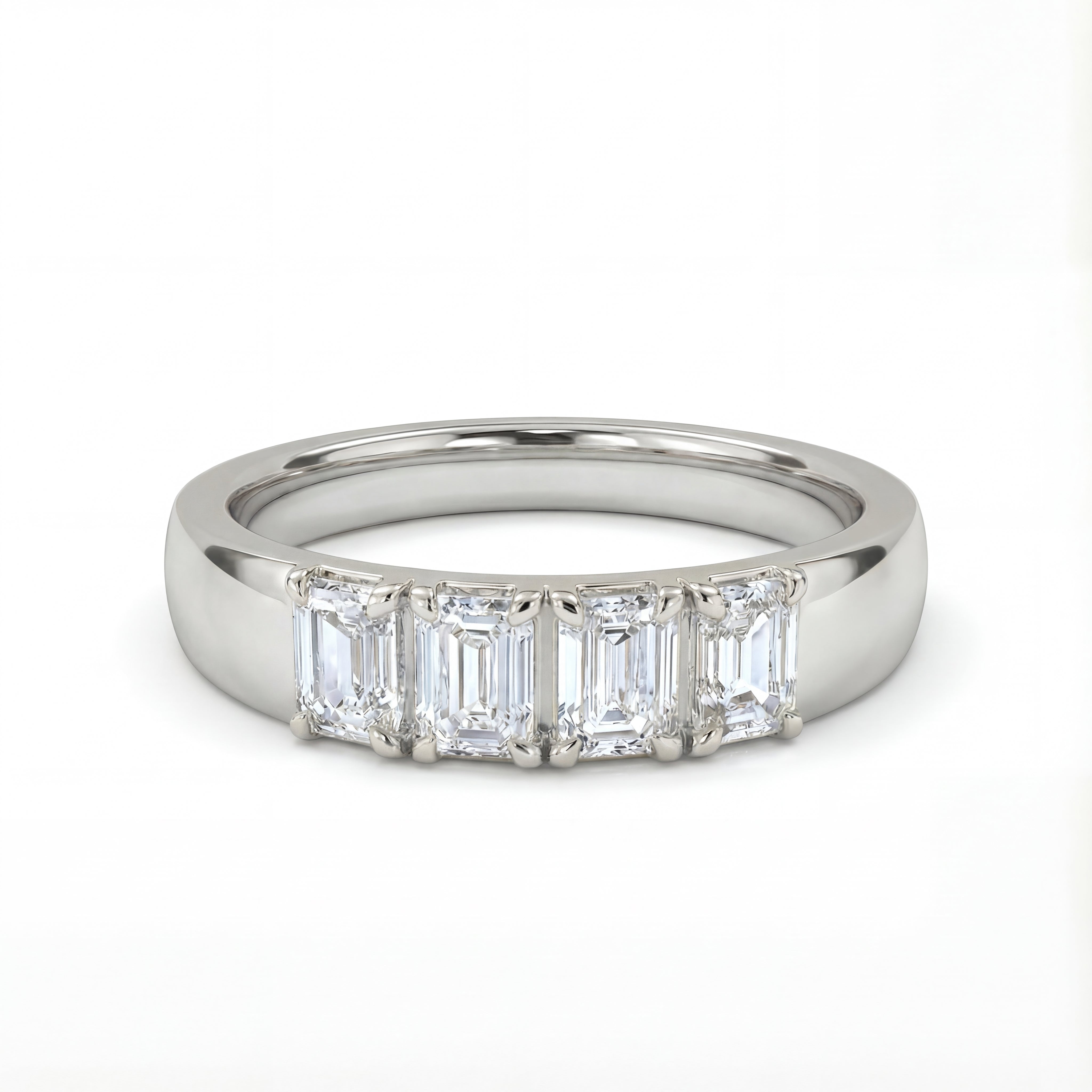 4 Stone Emerald Lab Diamond Wedding Band 1.0 CTW