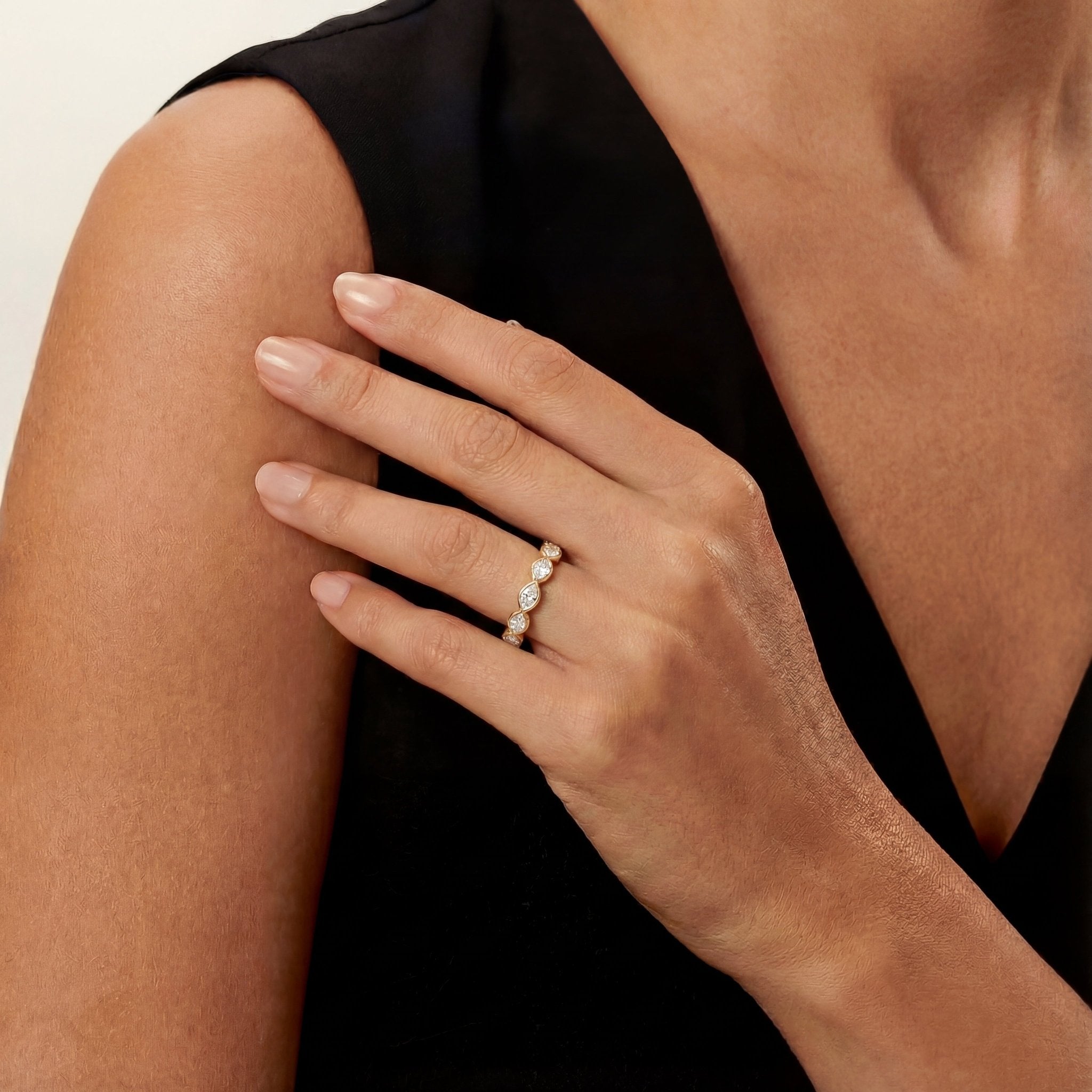Sideways Pear Bezel Eternity Band 1.12 CTW