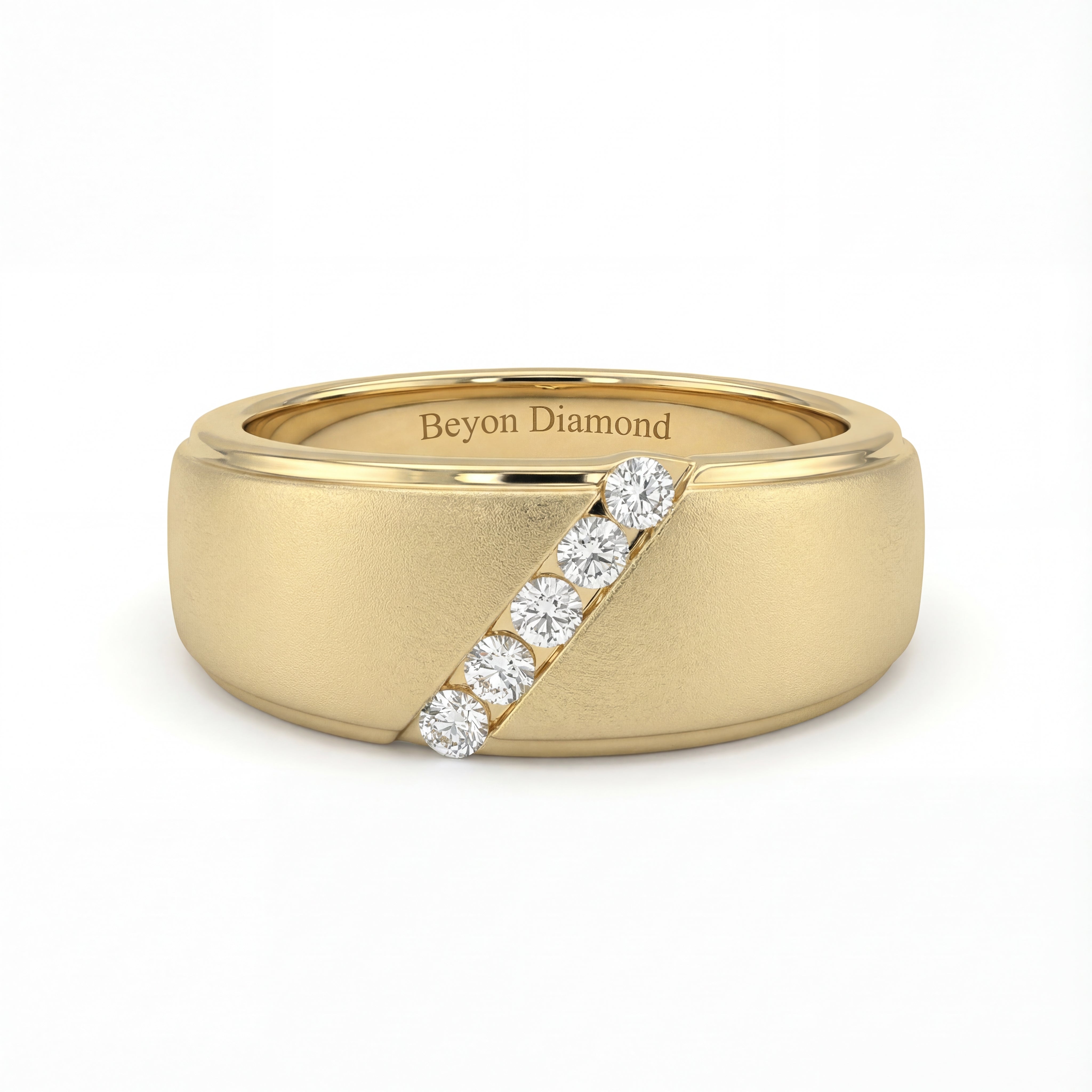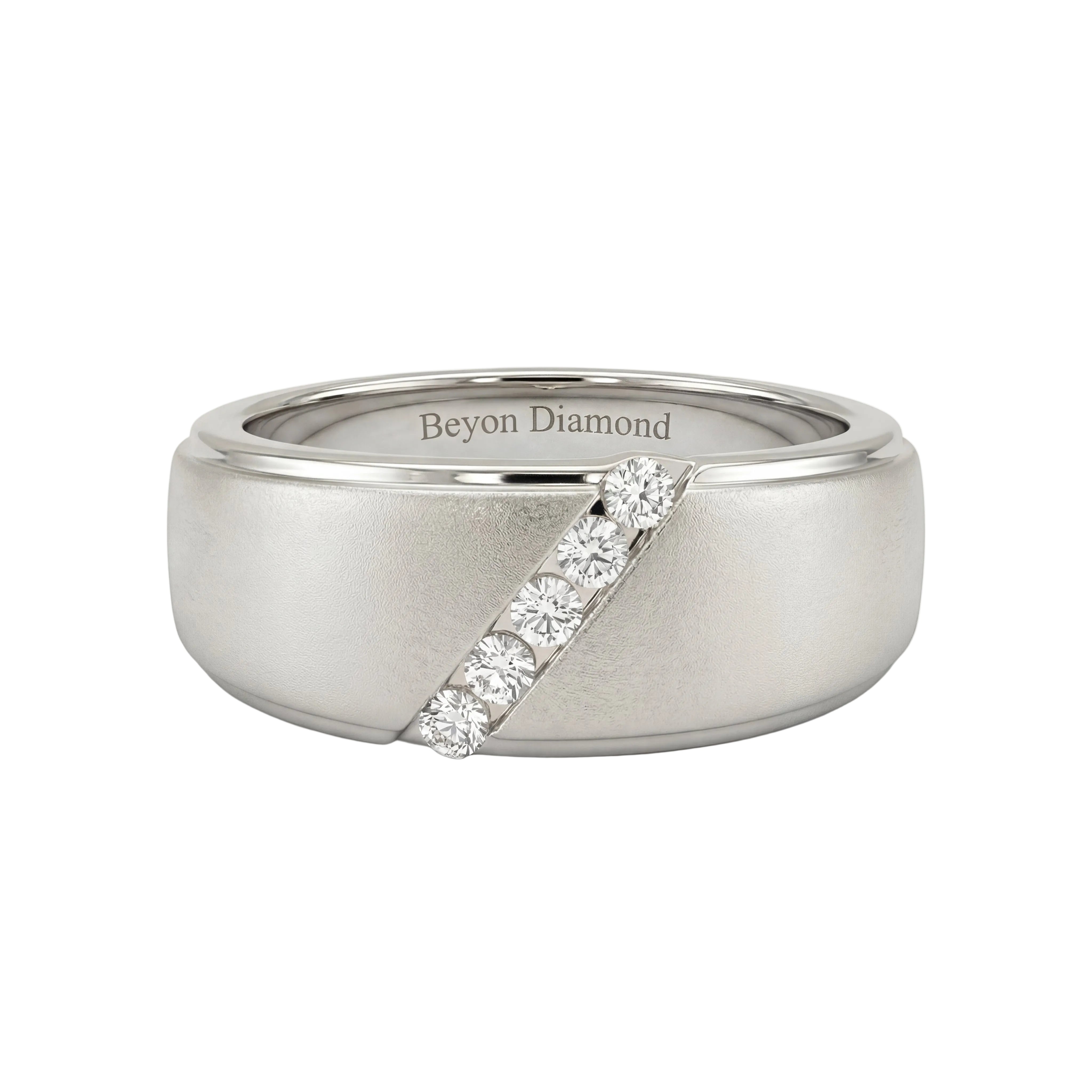 Slant Stone Studded Line Diamond Men's Ring