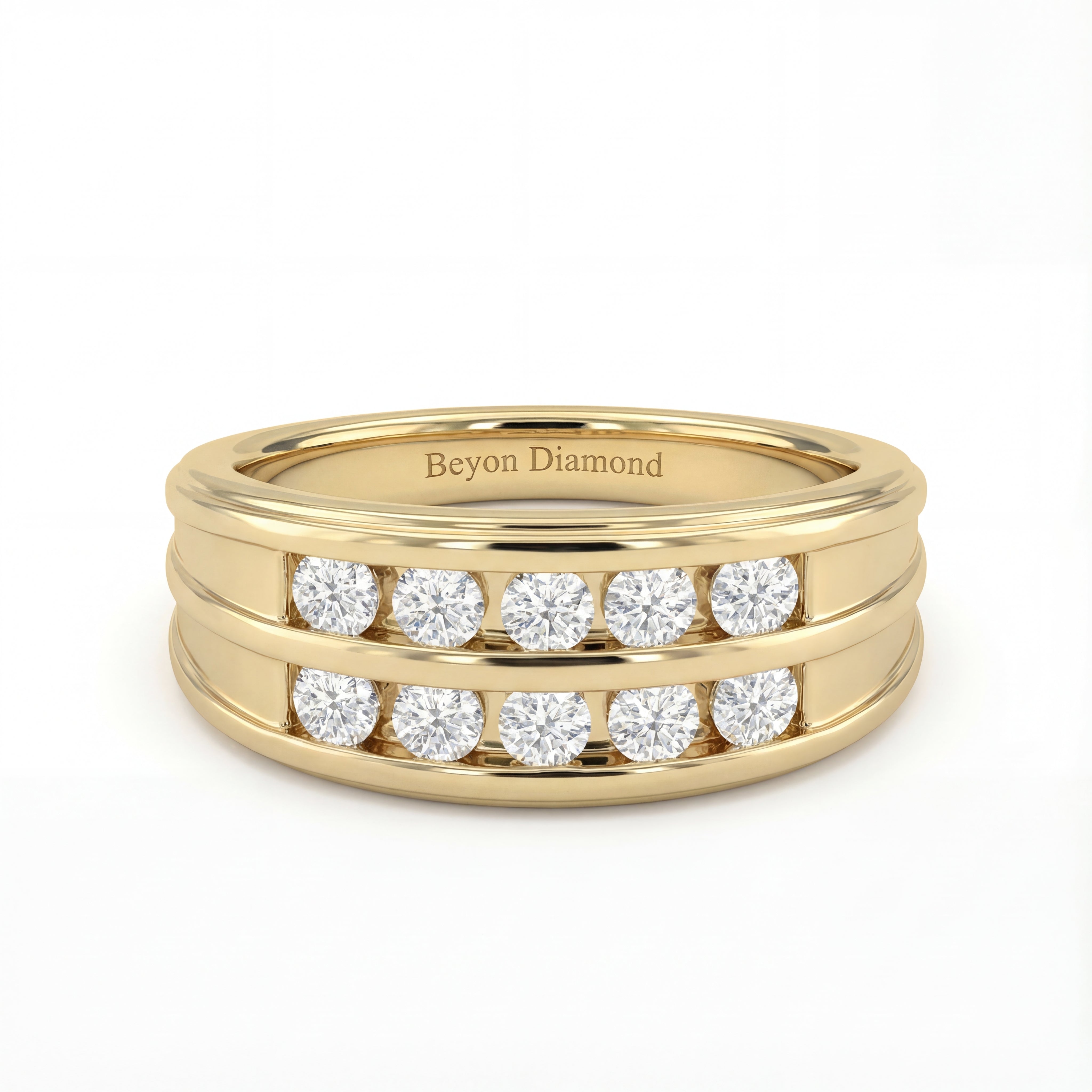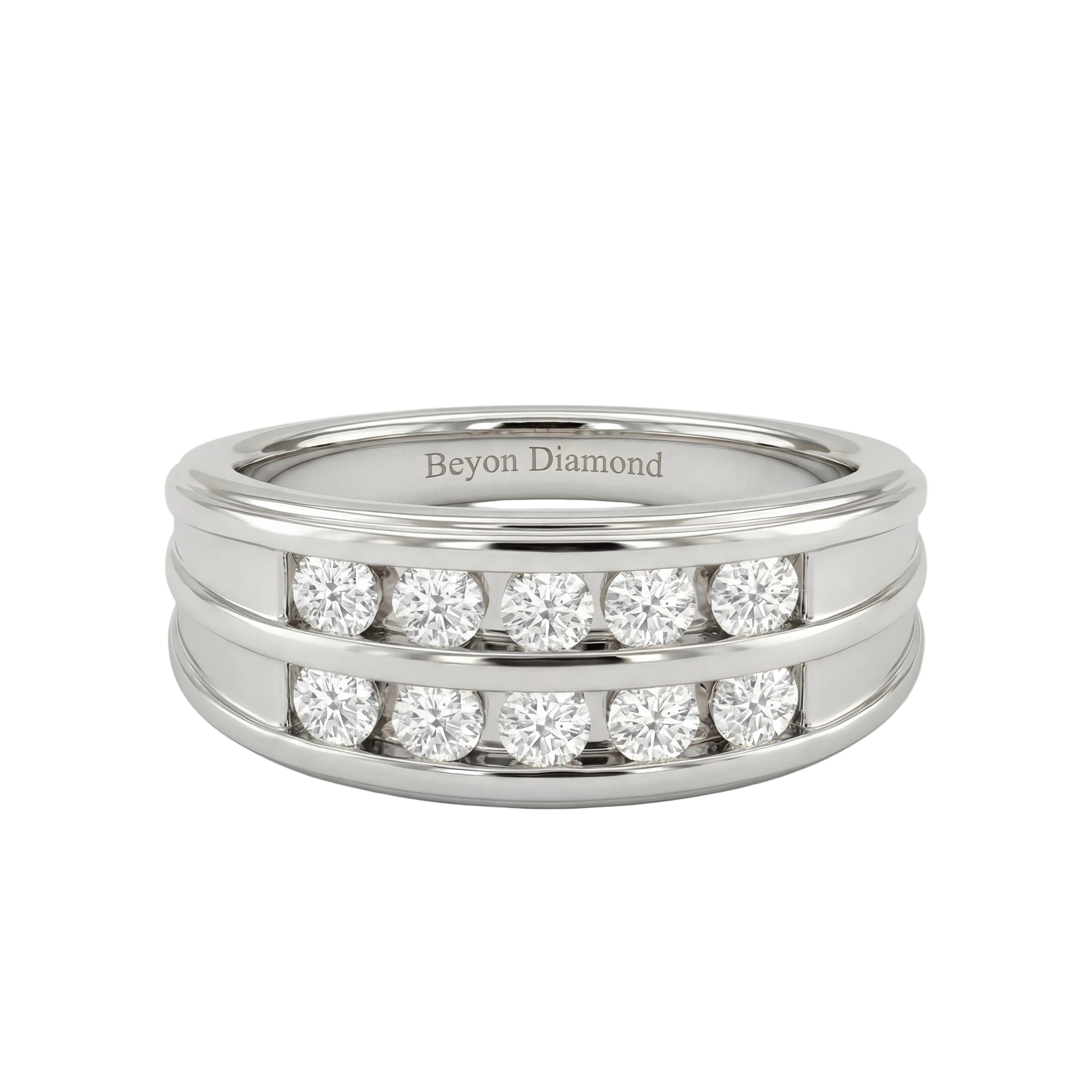 Two -Tone Channel Set 2 Row Diamond Men's Ring