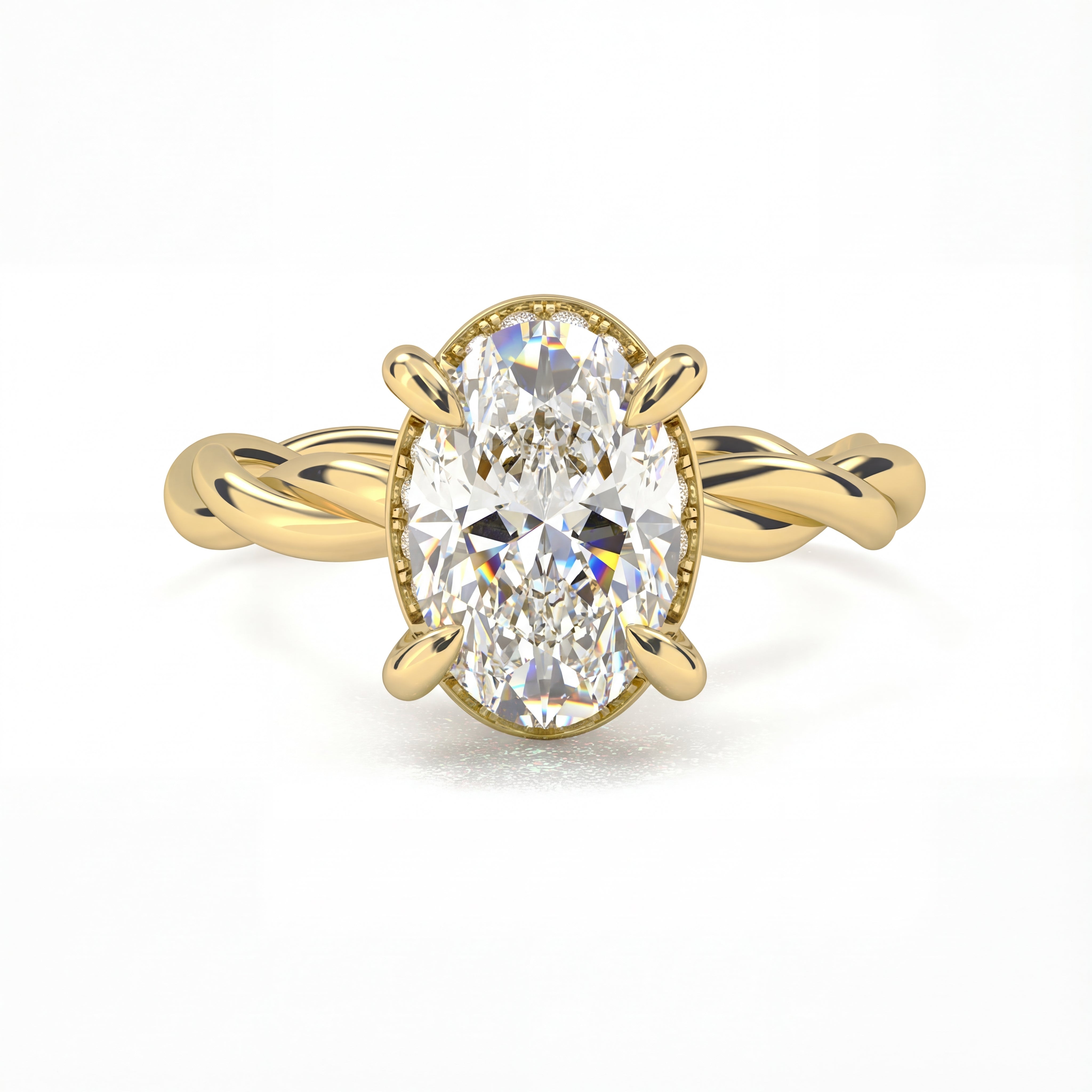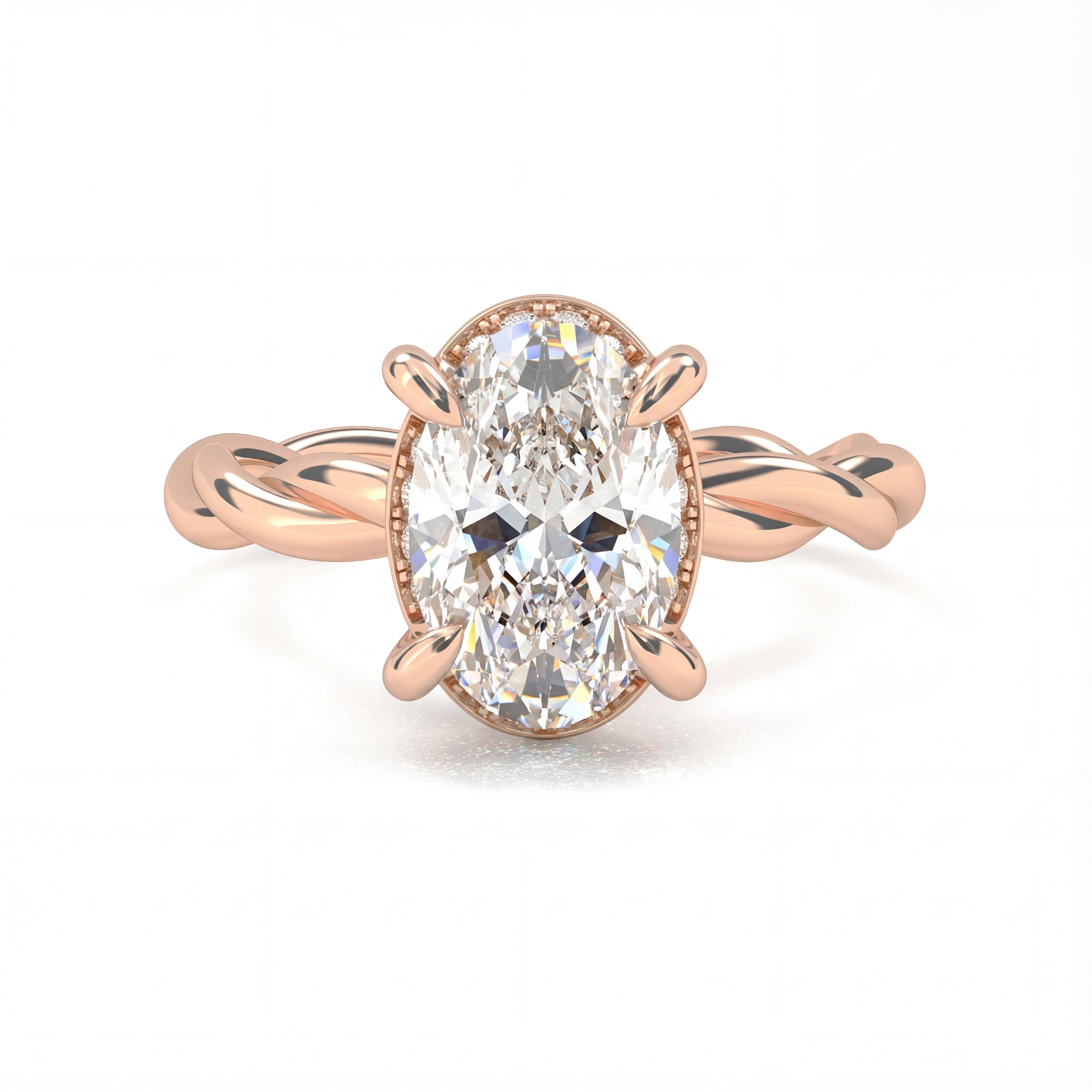 Solitaire Floral Twisted Engagement Ring - Oval Cut