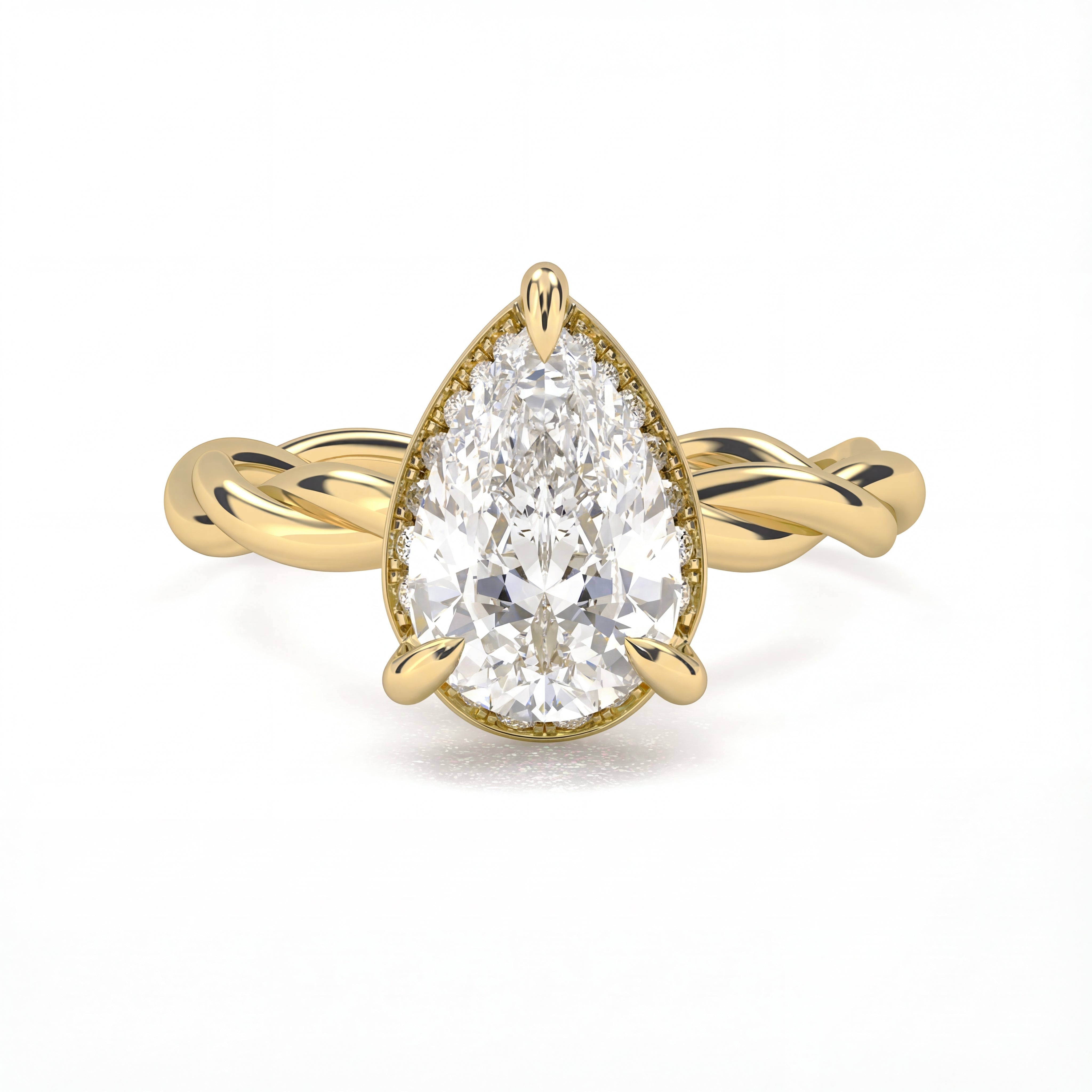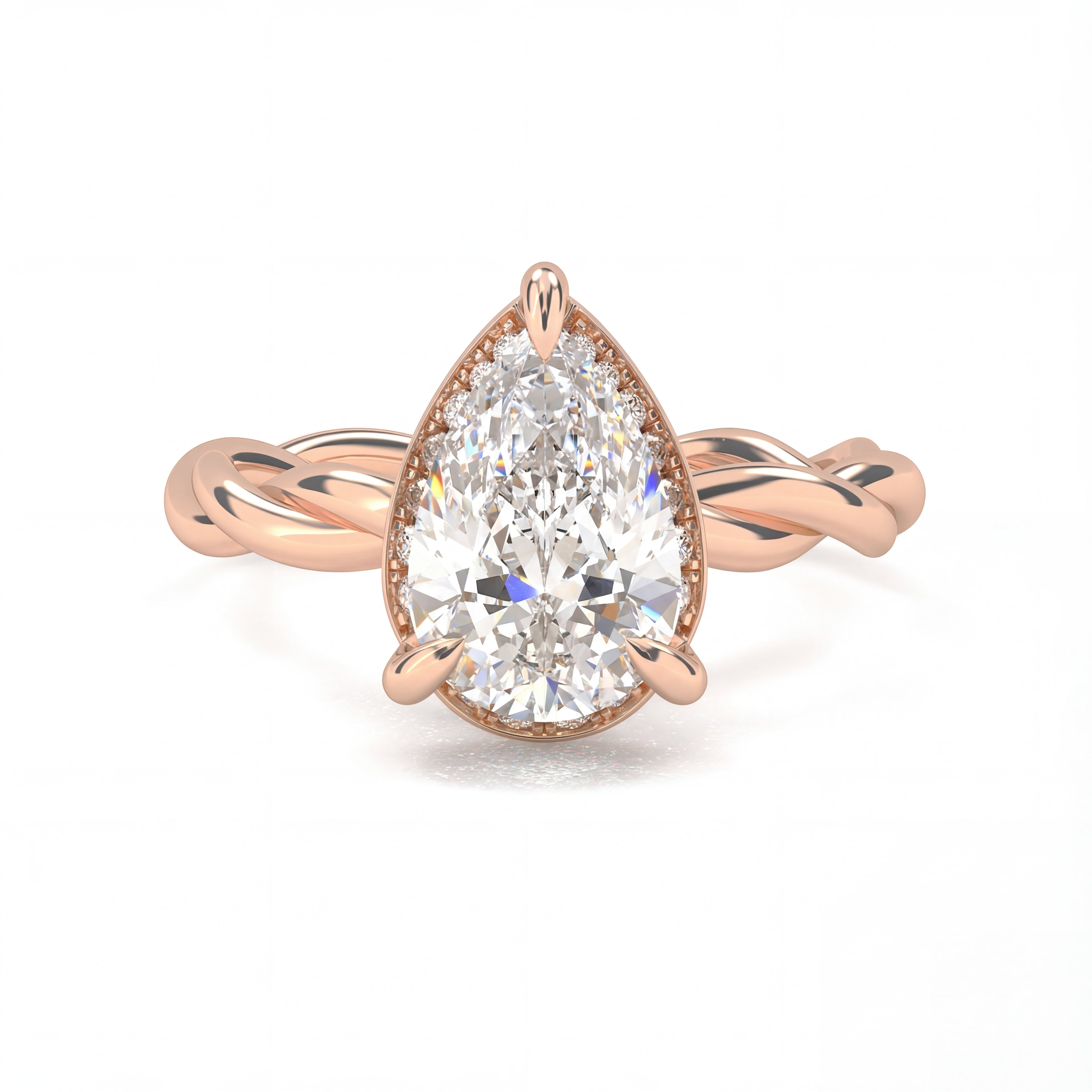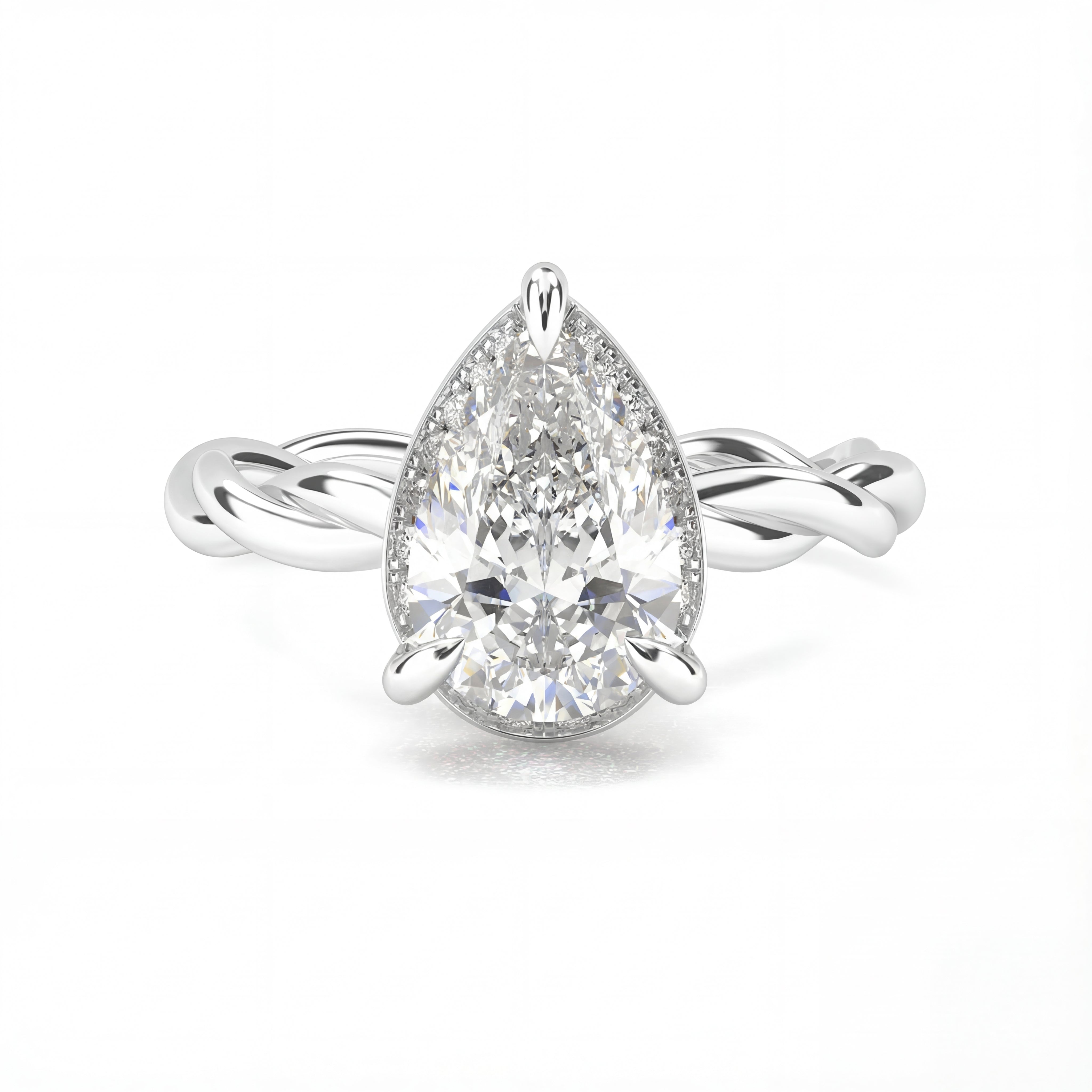 Solitaire Floral Twisted Engagement Ring - Pear Cut